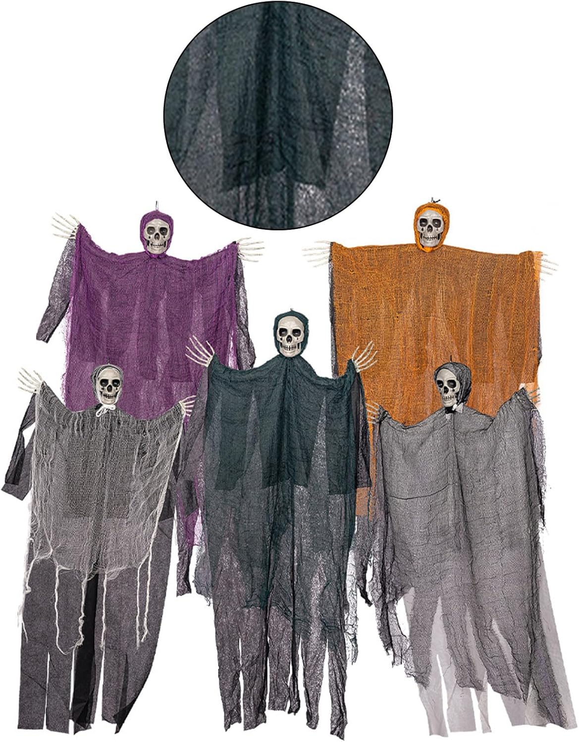 Con vari design disponibili, scegli la combinazione in base alle tue preferenze e crea un'atmosfera per coloro che amano festeggiare Halloween, sia in casa, a scuola, anche in luoghi commerciali Ideale per feste di Halloween, esposizione e attività di festa, le decorazioni a teschio da appendere offrono possibilità creative Elevate la vostra festa di Halloween con questo set di 5 decorazioni a forma di teschio, per aggiungere un tocco di terrore Uso e tessuto, queste decorazioni da appendere a forma di teschio sono costruite per resistere sia all'uso interno che esterno