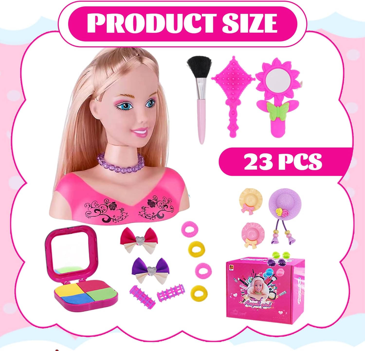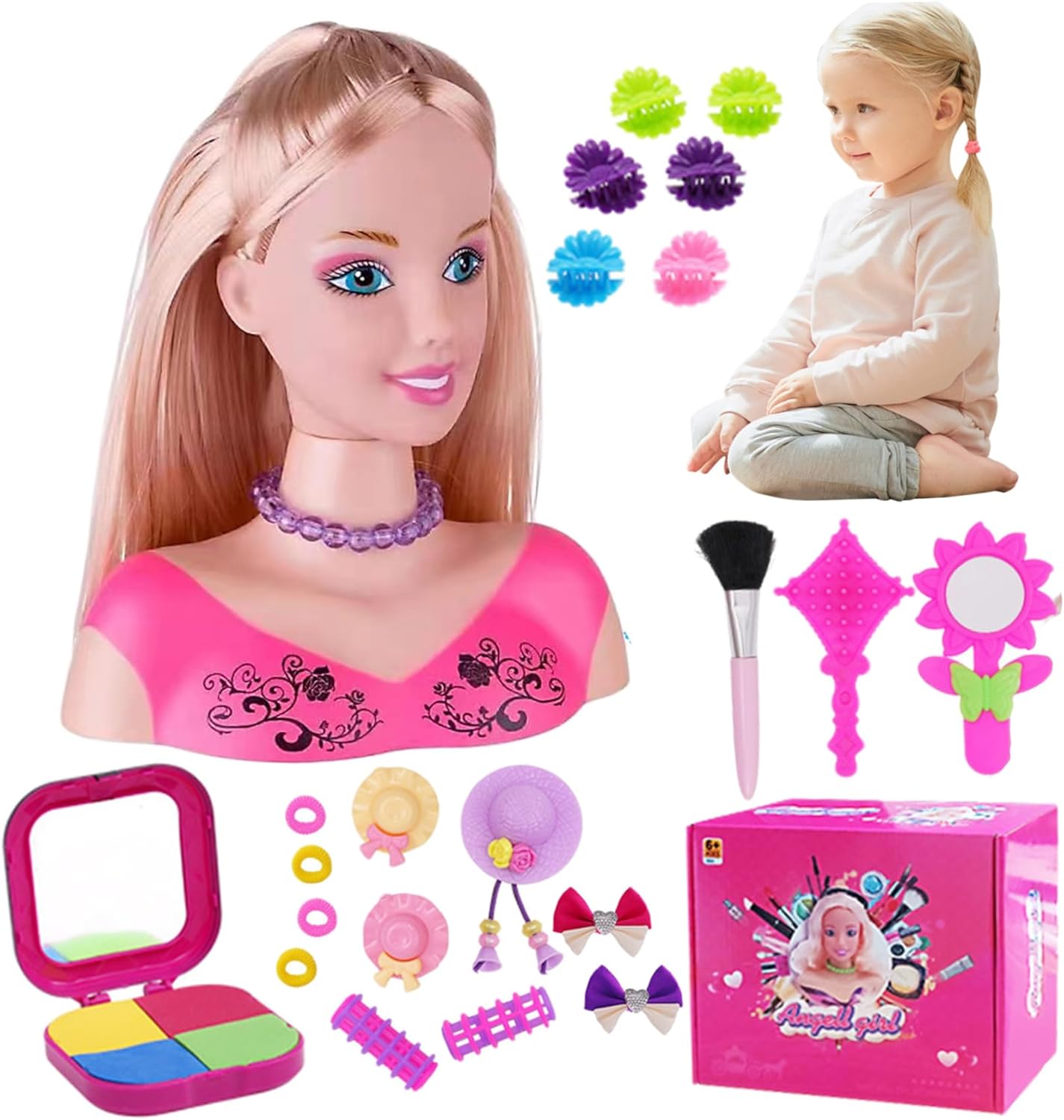Ottimo regalo per le ragazze: perfetto per compleanni, vacanze o occasioni speciali, questa bambola di testa per bambini è un regalo ideale per le ragazze che amano la moda e la bellezza..Fornisce ore di divertimento incoraggiando al contempo l'apprendimento pratico e lo sviluppo delle competenze. Set di styling completo: la testa della bambola per lo styling per capelli viene fornita con 35 pezzi, tra cui vari accessori per capelli, pettini e strumenti..Questo set completo consente ai bambini di sperimentare diverse acconciature, promuovendo la creatività e il gioco fantasioso. Strumento di apprendimento perfetto: questa testa di bambola per lo stile dei capelli è uno strumento eccellente per l'apprendimento di tecniche di trucco e toelettatura di base..Il set include strumenti di trucco finti che aiutano i bambini a praticare il trucco in modo sicuro, insegnando loro anche sulla cura di sé e sull'igiene. Capelli realistici per lo styling: con capelli lunghi e setosi che imita veri capelli umani, questa testa della bambola per lo stile dei capelli offre un'esperienza realistica..I bambini possono spazzolare, trecciare, ricci e modellare i capelli per creare un aspetto infinito, proprio come uno stilista professionista. Incoraggia il gioco creativo: progettato per ispirare la creatività, questa testa di bambola per l'acconciatura promuove il gioco di ruolo immaginativo..I bambini possono esplorare i diversi acconciature, provare il trucco e progettare stili unici, che migliorano le loro capacità di risoluzione dei problemi e aumenta la fiducia.