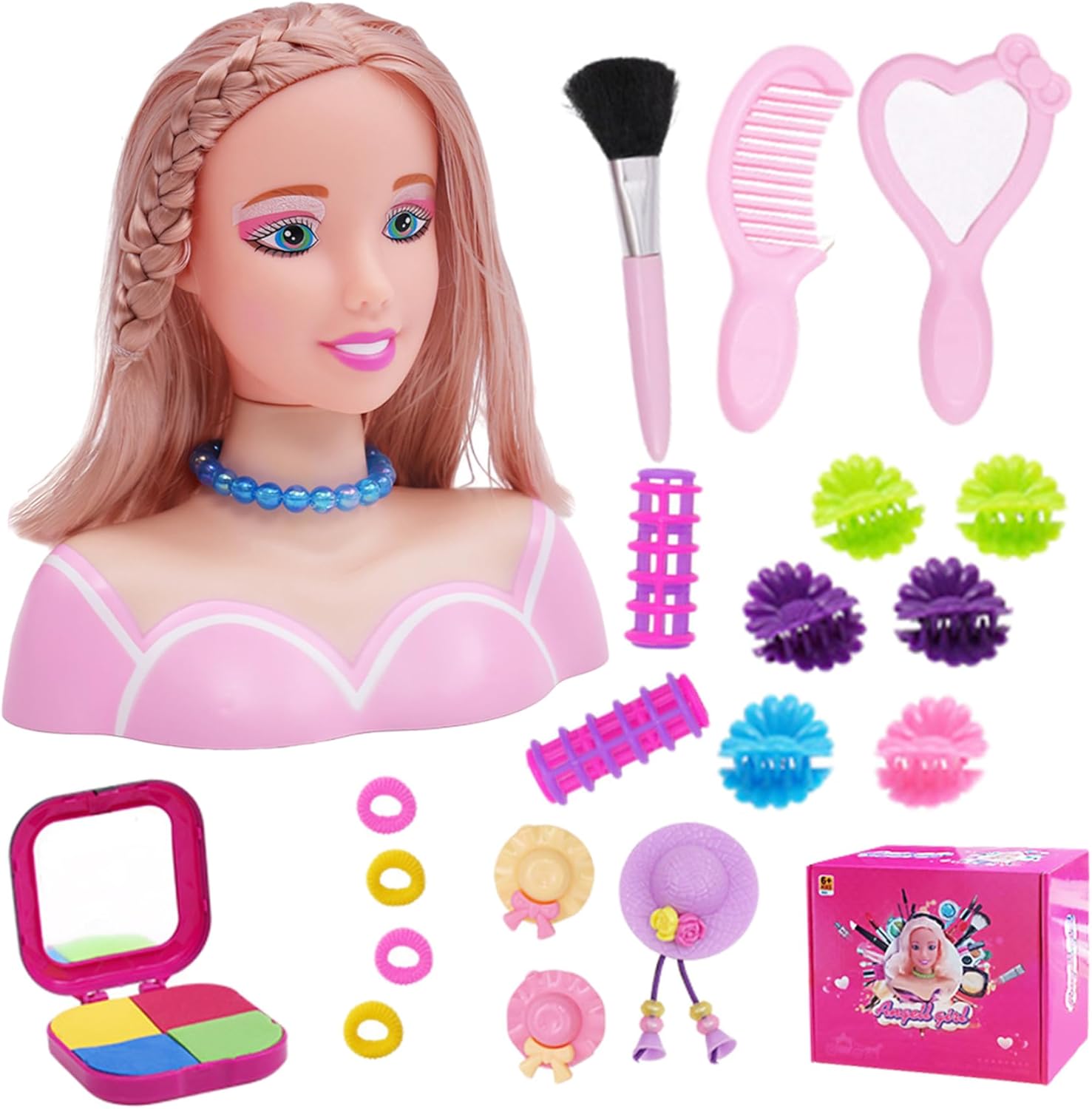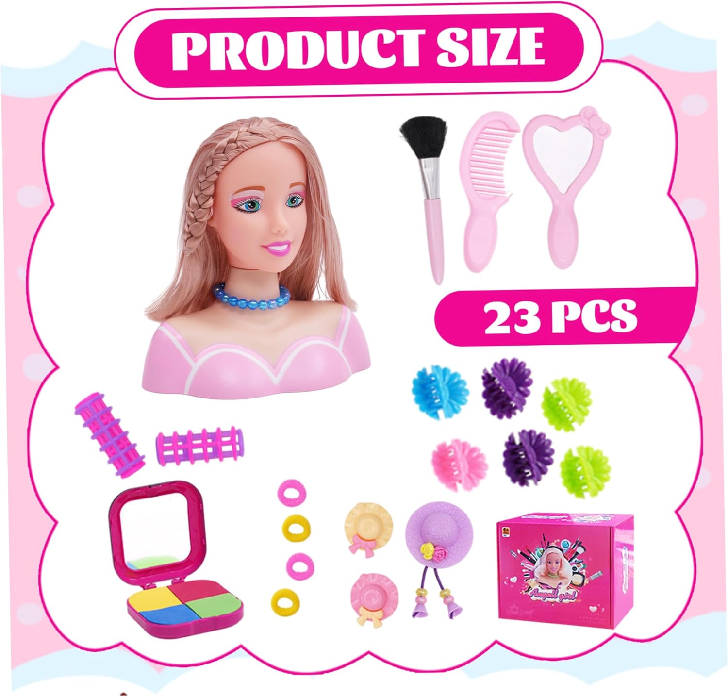 Set di styling completo: la testa della bambola per lo styling per capelli viene fornita con 35 pezzi, tra cui vari accessori per capelli, pettini e strumenti..Questo set completo consente ai bambini di sperimentare diverse acconciature, promuovendo la creatività e il gioco fantasioso. Incoraggia il gioco creativo: progettato per ispirare la creatività, questa testa di bambola per l'acconciatura promuove il gioco di ruolo immaginativo..I bambini possono esplorare i diversi acconciature, provare il trucco e progettare stili unici, che migliorano le loro capacità di risoluzione dei problemi e aumenta la fiducia. Capelli realistici per lo styling: con capelli lunghi e setosi che imita veri capelli umani, questa testa della bambola per lo stile dei capelli offre un'esperienza realistica..I bambini possono spazzolare, trecciare, ricci e modellare i capelli per creare un aspetto infinito, proprio come uno stilista professionista. Ottimo regalo per le ragazze: perfetto per compleanni, vacanze o occasioni speciali, questa bambola di testa per bambini è un regalo ideale per le ragazze che amano la moda e la bellezza..Fornisce ore di divertimento incoraggiando al contempo l'apprendimento pratico e lo sviluppo delle competenze. Strumento di apprendimento perfetto: questa testa di bambola per lo stile dei capelli è uno strumento eccellente per l'apprendimento di tecniche di trucco e toelettatura di base..Il set include strumenti di trucco finti che aiutano i bambini a praticare il trucco in modo sicuro, insegnando loro anche sulla cura di sé e sull'igiene.