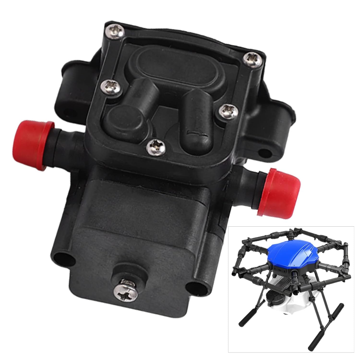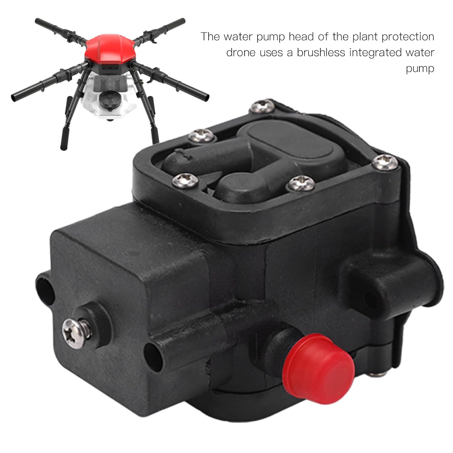 Struttura integrata senza spazzole: la testa della pompa dell'acqua del drone fitosanitario utilizza una pompa dell'acqua integrata senza spazzole. Materiale premium: il materiale in nylon + lega di alluminio di alta qualità è più robusto, leggero e non influisce sul volo. Trasportare liquidi in sicurezza: la testa della pompa dell'acqua può trasportare liquidi in modo più rapido e sicuro, il che può offrirti maggiore comodità. Buona fattura: lavorazione squisita, design dall'aspetto gradevole, dimensioni portatili ridotte, per un'esperienza utente eccezionale. Leggero: la testa della pompa dell'acqua senza spazzole da 5 litri è leggera, facile da trasportare, non aumenterà il carico.