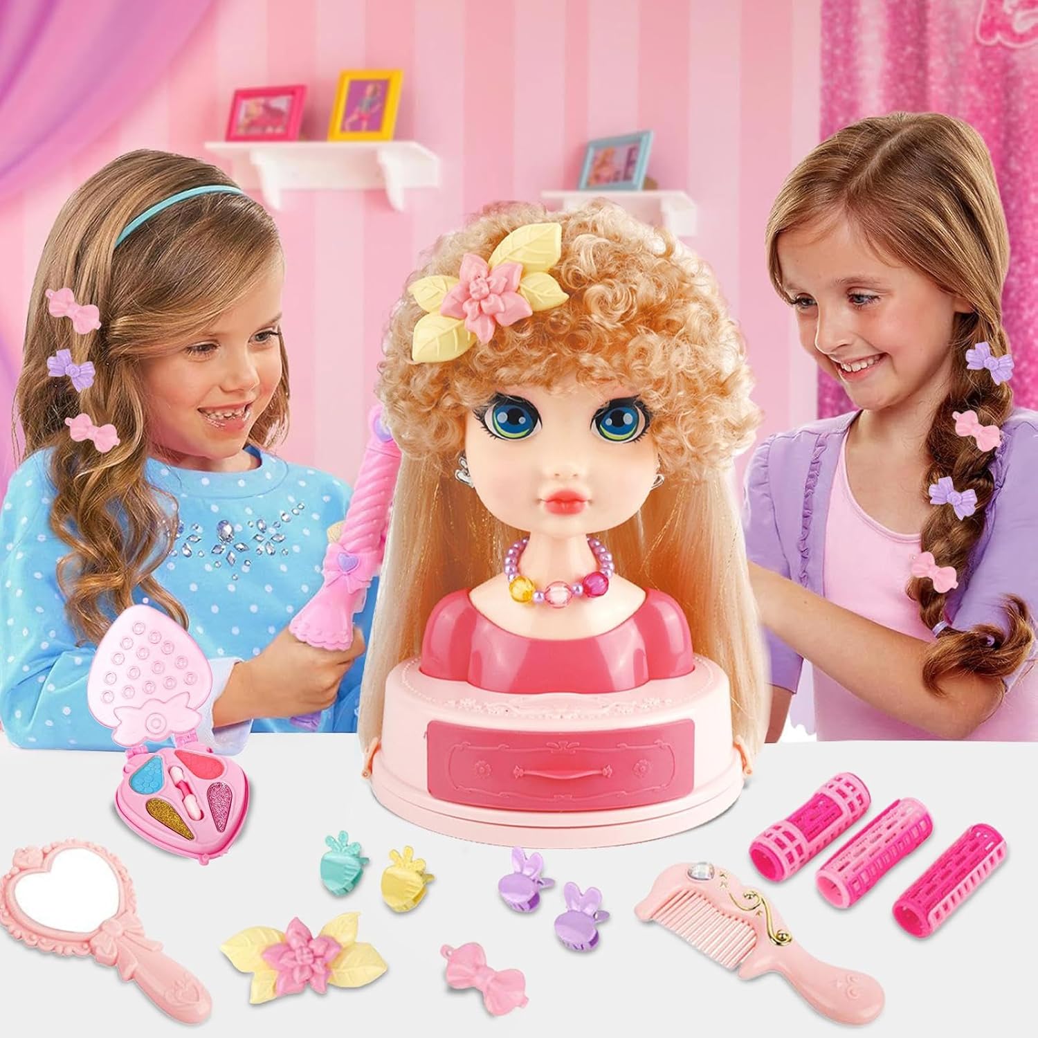 Strumenti Diversificati: Set da 26 pezzi offre infinite possibilità di design capelli per bambini, alimentando la creatività e sviluppando abilità manuali durante il gioco di acconciatura con la testa per styling Qualità Superiore: La composizione con materiali di alta qualità rende la testa inodore e piacevole al , massimizzando la sicurezza e il divertimento nell'apprendimento delle tecniche di hairstyling. Regalo Ideale: Scelta eccellente per festività o compleanni, questa testa per acconciature offre ore di intrattenimento aiutando a sviluppare capacità motorie fini durante il gioco di cura dei capelli Immaginazione Libera: Incoraggia il pensiero creativo e la pratica manuale infantile con questo strumento coinvolgente, realizzato per potenziare l'esplorazione artistica e il gioco innovativo con libertà di espressione senza restrizioni Ispira divertimento:Pratica tecniche di acconciatura come trecce e decorazioni su una testa per styling, realizzata per rendere il gioco del parrucchiere coinvolgente e interattivo per bambini che amano esprimere la loro fantasia