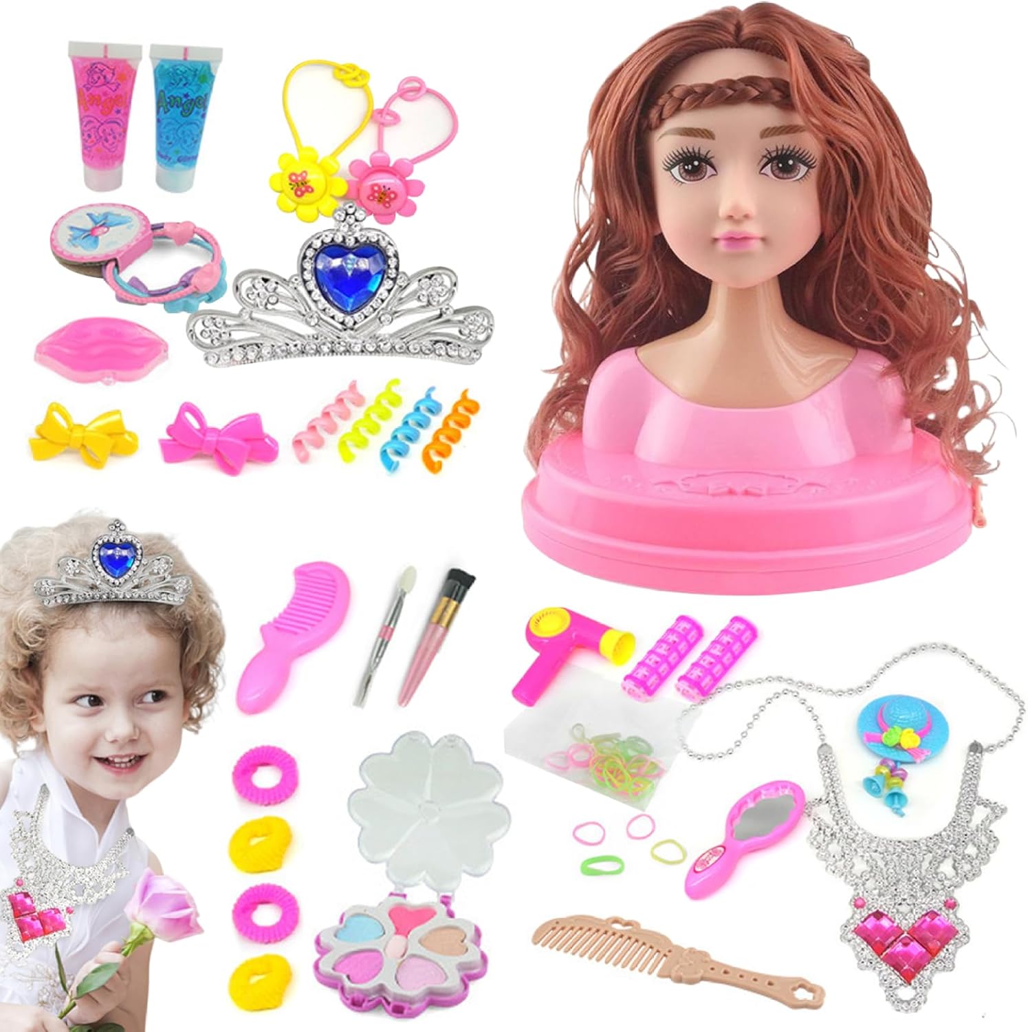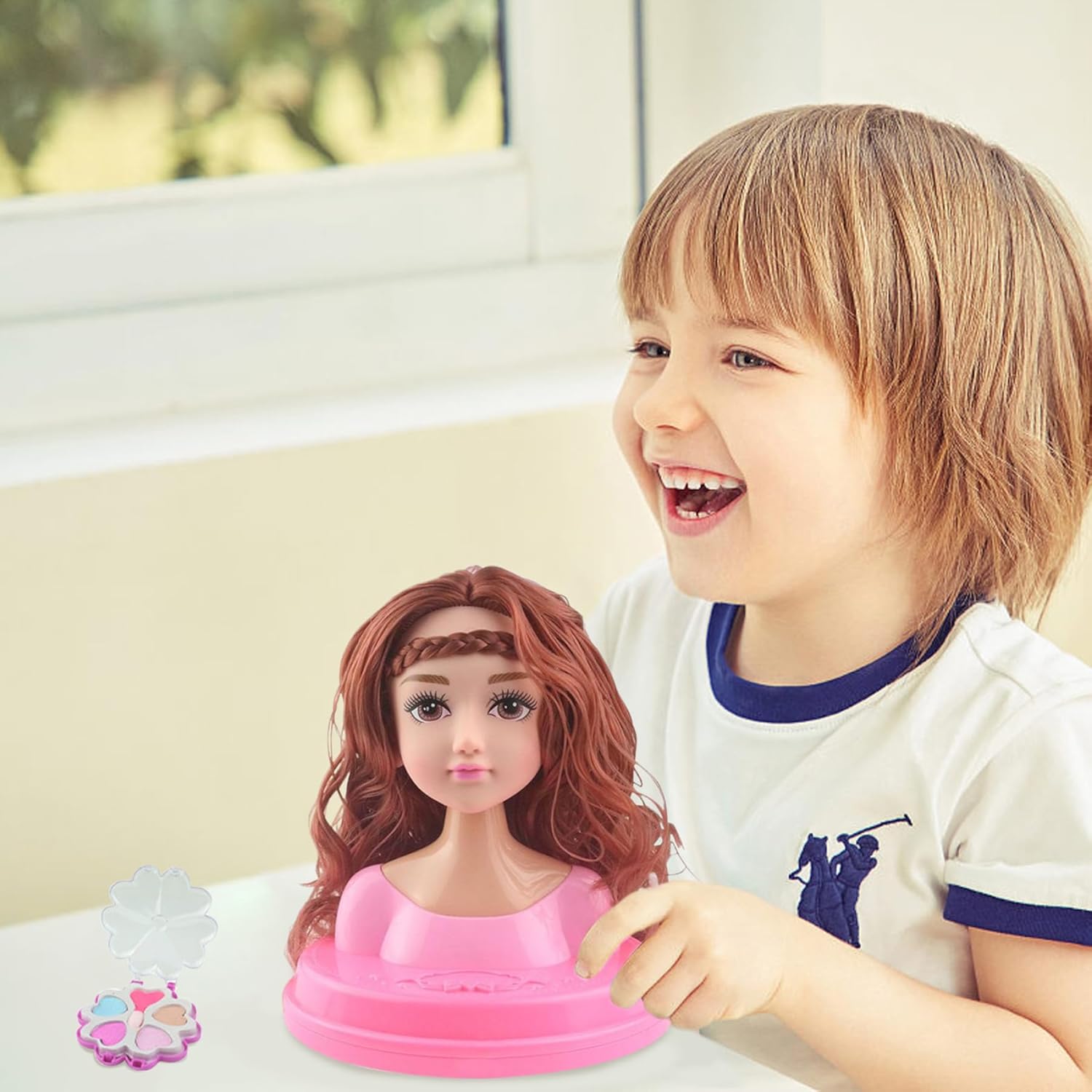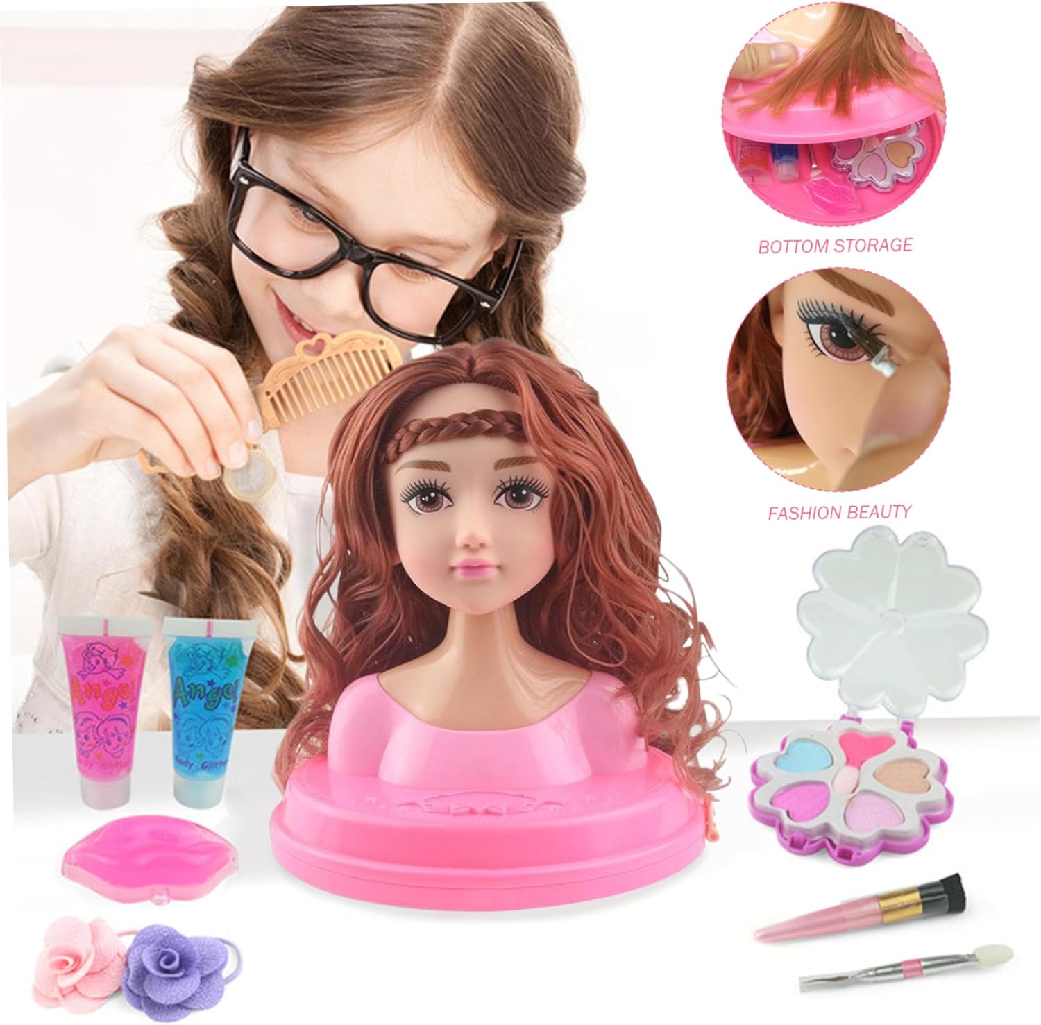 Il set include: il set della testa della bambola viene fornito con una bambola con capelli, set per il trucco e accessori come pettine, asciugacapelli, specchio, pennello per il trucco, rossetto e altro, come mostrato nelle immagini del prodotto. Giocattolo per il trucco per ragazze: questa graziosa testa di bambola è dotata di morbidi capelli e accessori per il trucco, rendendo facile per i bambini pettinarsi i capelli e sperimentare disegni di trucco. Ideale per i bambini: questo set di teste di bambola è ideale per i bambini di circa 3 anni, rendendolo perfetto per compleanni, Natale, Ringraziamento e altre occasioni speciali. Dimensioni della bambola: la piccola testa della bambola è perfetta per i bambini piccoli, misura 7,1 pollici di altezza e 7 pollici di larghezza..Questo è conveniente perché il bambino non sarà in grado di raggiungere il disegno dei capelli, per ottenere il ruolo dell'immaginazione nel disegnare i capelli della bambola! Giocattolo educativo: il set di giocattoli con testa di bambola viene fornito con una varietà di accessori colorati, come mostrato nelle immagini del prodotto, che ispirano l'immaginazione e la creatività dei bambini e migliorano la coordinazione occhio-mano.