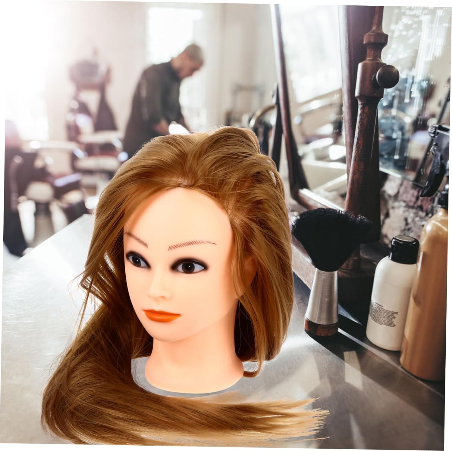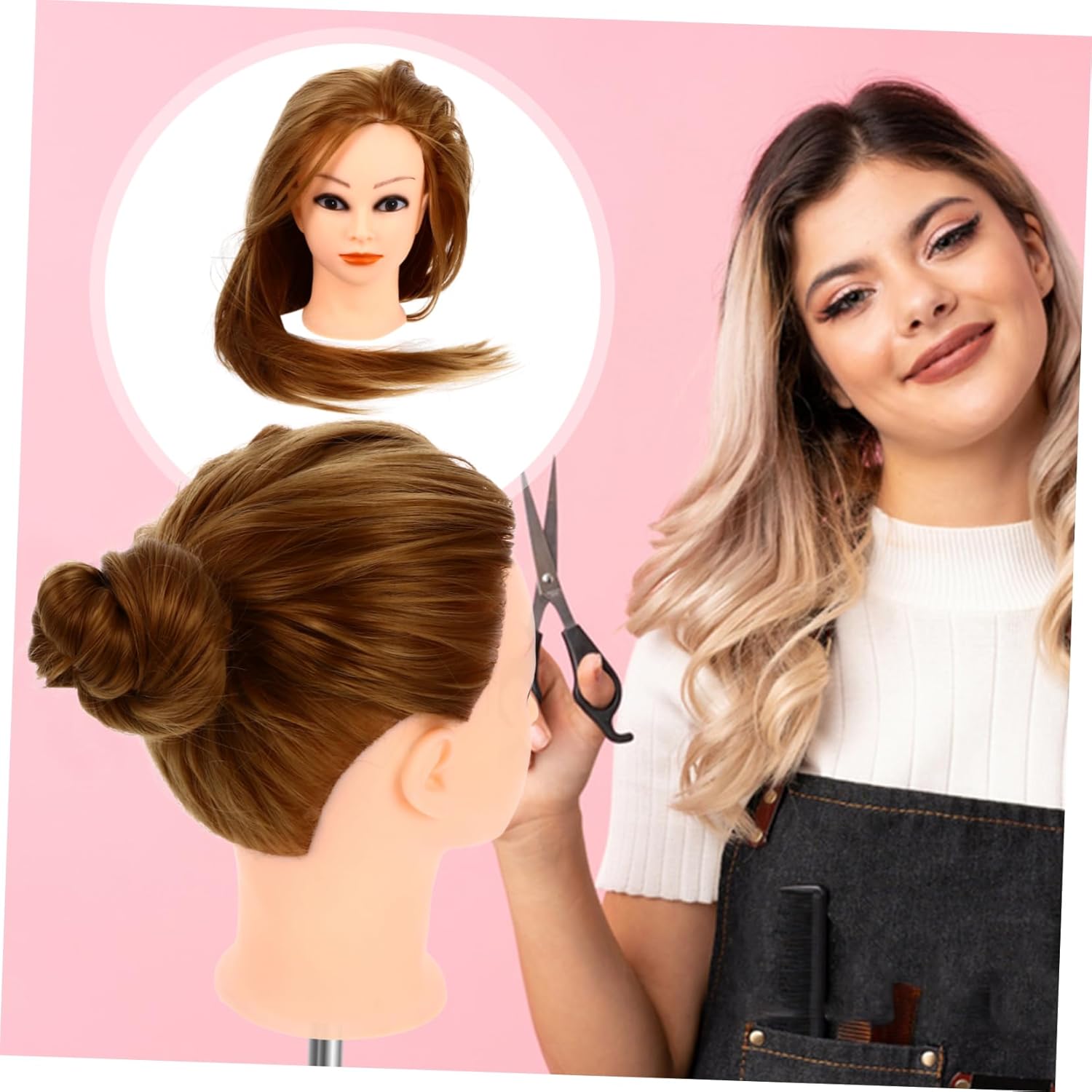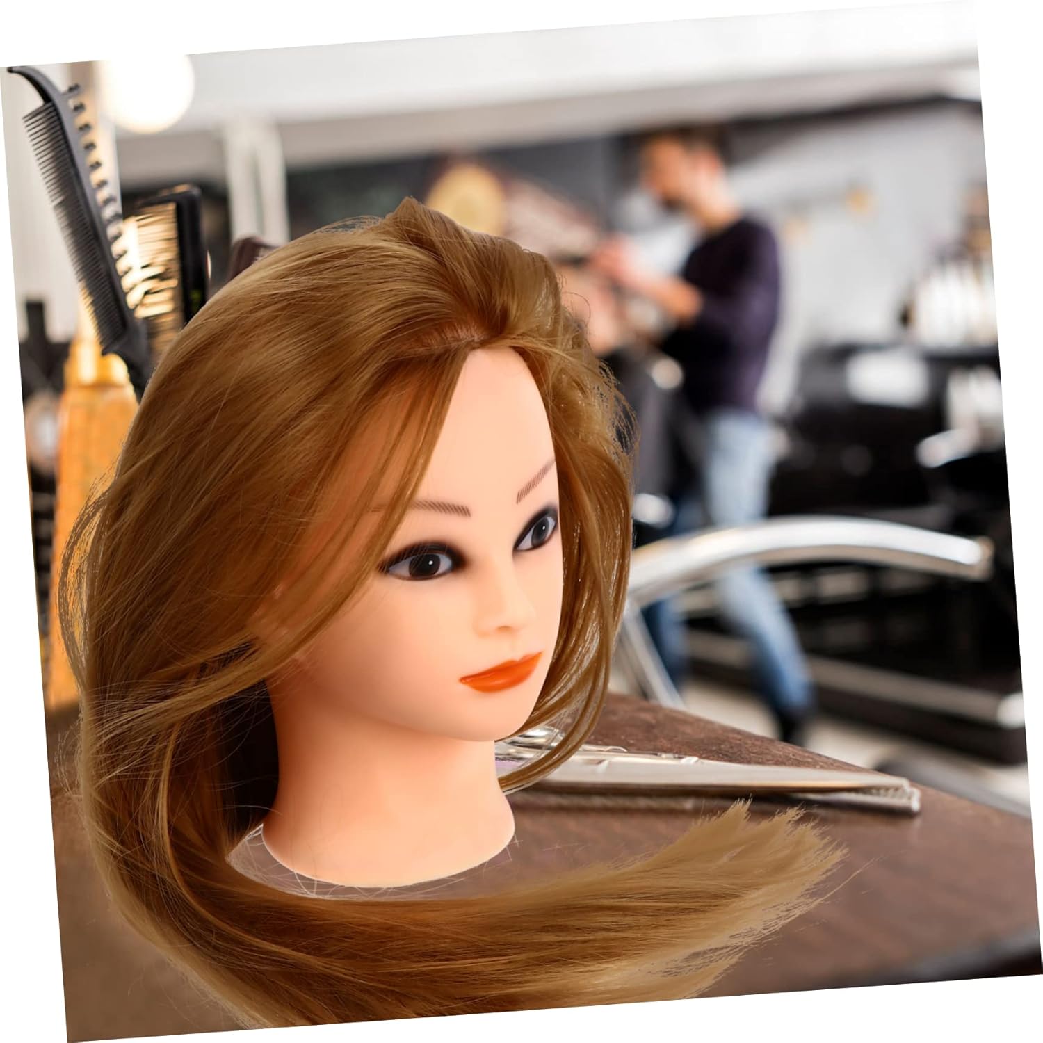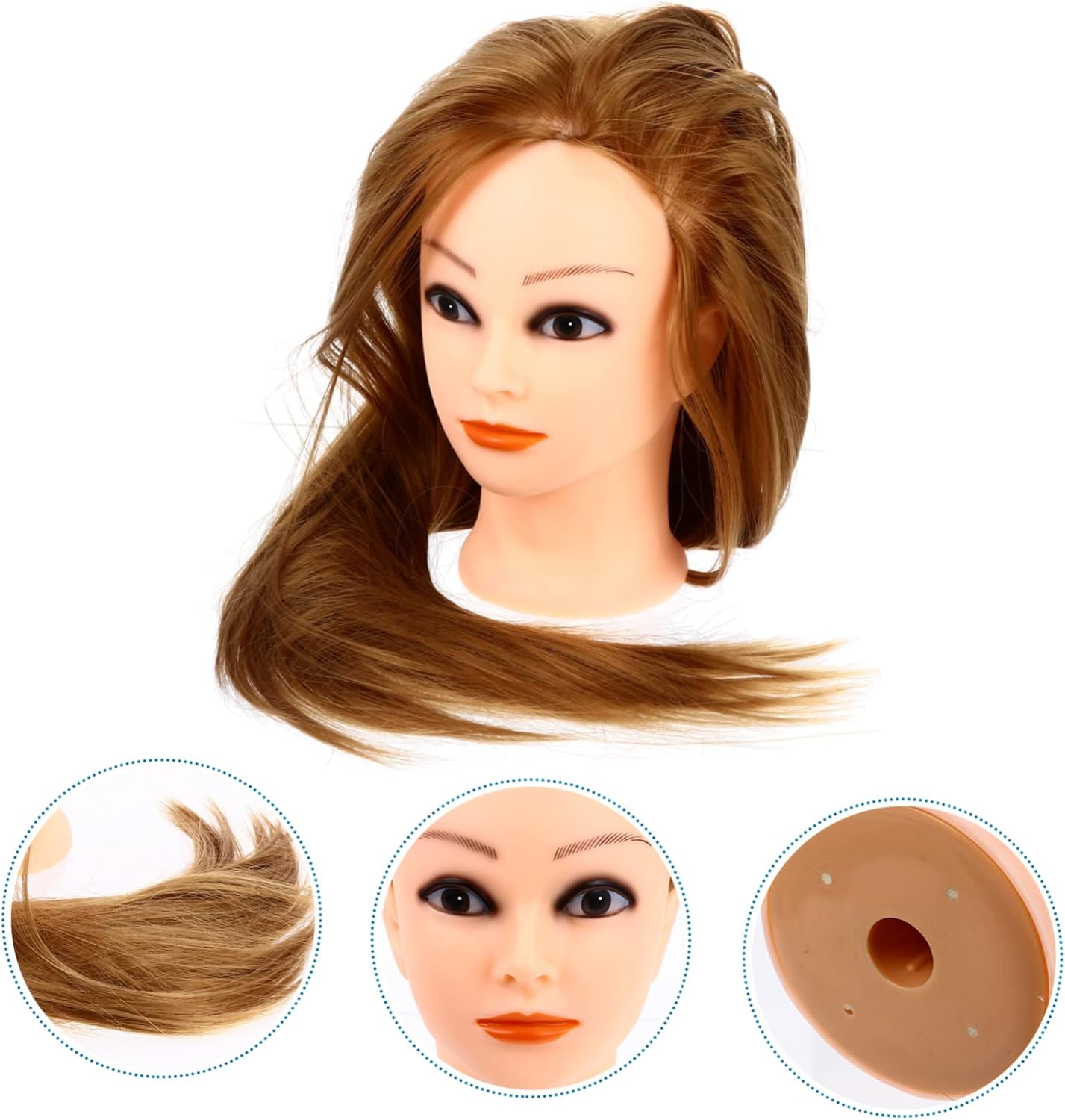 Corpo del manichino: può essere utilizzato da parrucchiere, parrucchiere, barbiere e studenti della scuola di cosmetologia, manichino. Intrecciare i per allenarsi: la testa del manichino è progettata per intrecciare, fissare, tagliare, attorcigliare, acconciare, esporre e praticare la testa cosmetologica. Parrucca di veri: sintetici realistici, molto lisci e lucenti, ti danno il miglior effetto pratico, pratica la testa del manichino. Tingere la testa di sintetici: è la pratica più semplice delle tue abilità, migliora notevolmente la tua efficienza, allenando la testa. sintetici con testa di manichino: questa testa di bambola cosmetologica professionale è progettata per praticare l'acconciatura o l'esposizione, testa di manichino per esercitarsi.