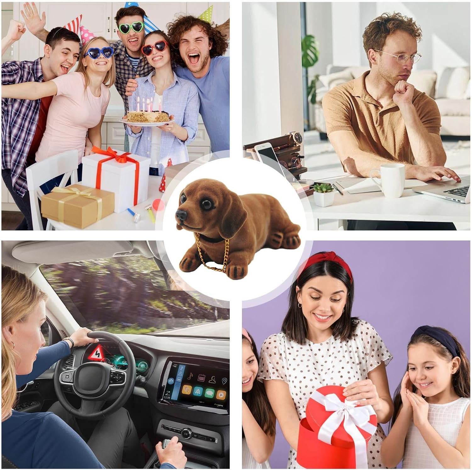 Divertente compagno di viaggio: abbellisci la tua auto con le nostre teste oscillanti, che dispongono di una simpatica funzione di scuotere la testa. Il design divertente del cucciolo aggiunge vivacità, allevia efficacemente l'affaticamento del conducente durante i lunghi viaggi e crea un'atmosfera rilassata. Buona durata: queste teste oscillanti in resina per cruscotto dell'auto sono una scelta pratica e bella. Il colore naturale migliora la sensazione di comfort e lo rende un complemento perfetto per la tua auto. Grazie al suo design durevole, la pulizia e la manutenzione sono facilmente possibili. Nota creativa: il fascino adorabile delle nostre teste oscillanti carine e creative, realizzate con squisita fattura, darà alla tua auto un bel tocco artistico e diventerà una decorazione incantevole. Ampia gamma di applicazioni: dal cruscotto dell'auto al davanzale della finestra alla scrivania, le nostre adorabili teste oscillanti aggiungono un tocco di vita e calore a qualsiasi stanza. Migliora l'ambiente circostante e goditi più fascino e personalità per tutto il giorno. Meraviglioso da regalare: onora i ricordi preziosi con le nostre teste oscillanti per il cruscotto dell'auto, un regalo perfetto per esprimere amore e benedizioni in eventi importanti della famiglia come compleanni, feste e altro ancora. Mostra il tuo sincero apprezzamento con questo significativo ricordo.