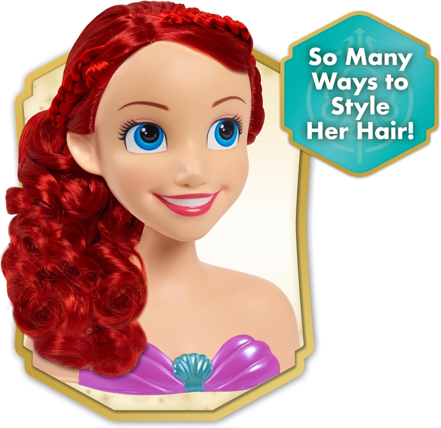 Con la testina per acconciature Disney Princess Ariel puoi dare libero sfogo alla tua creatività. Perfetta per ore di gioco, questa testina da 8 pollici è dotata di una favolosa tiara e 16 accessori aggiuntivi per aggiungere lucentezza ai lunghi capelli rossi di Ariel. Pettina i capelli per creare meravigliosi raccolti e usa l'abbagliante fermaglio a fiore per fare una dichiarazione audace. Usa gli elastici per capelli per creare eleganti look da giorno. Sia che i bambini stiano immaginando di andare a un ballo con la principessa Ariel o semplicemente di inventare trecce alla moda, i capelli di Ariel possono essere attorcigliati in una acconciatura regale, legati in una coda alta o portati in riccioli.