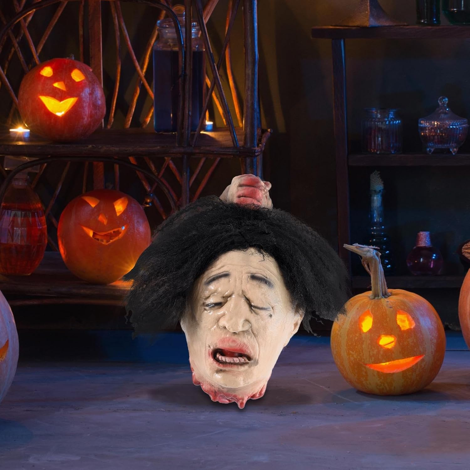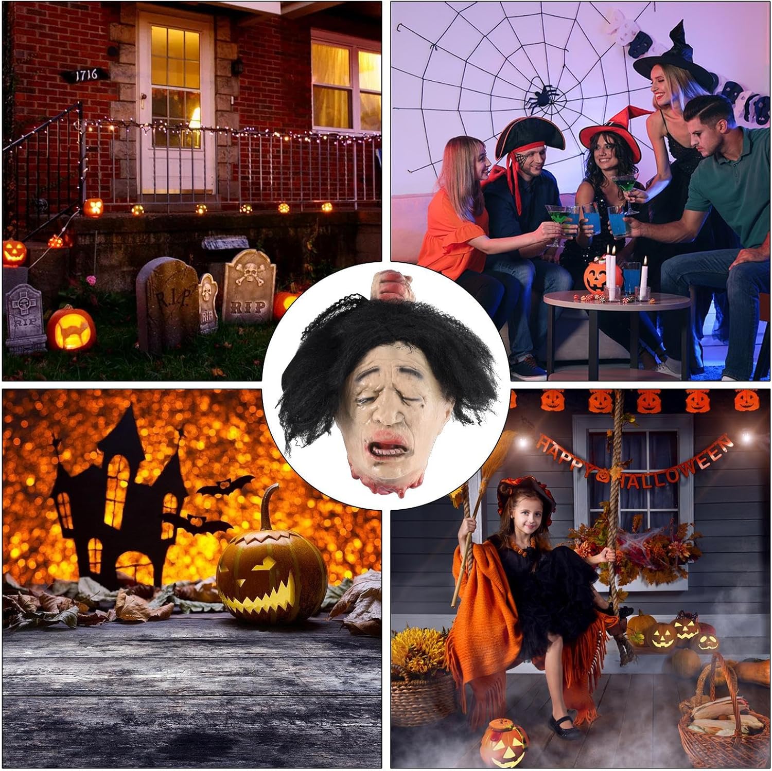 Leggerezza inodore: il lattice di alta qualità garantisce un effetto autentico della testa finta. Completamente impermeabile, assolutamente inodore e leggerissimo per una facile pulizia – ideale per molteplici eventi Elemento decorativo flessibile: ideale per giardini anteriori e casette spaventose, questa decorazione per la testa di Halloween è un accessorio elegante e pratico per le foto in camere da letto, terrazze e soggiorni per molteplici luoghi di utilizzo Casa fantasma: goditi la stagione di Halloween con decorazioni spaventose che scuotono i vicini e trasforma la tua casa in una gelida casa fantasma delle festività con un clima inquietante Regalo spaventoso perfetto: condividi il divertimento e l'atmosfera speciale di Halloween con questo copricapo. Ideale da regalare ad amici che amano le sorprese spaventose e vogliono celebrare insieme il tempo degli spiriti. Decorazione realistica per Halloween: testa dal design realistico con elementi sanguinanti. Un'aggiunta spaventosa per qualsiasi festa di Halloween.