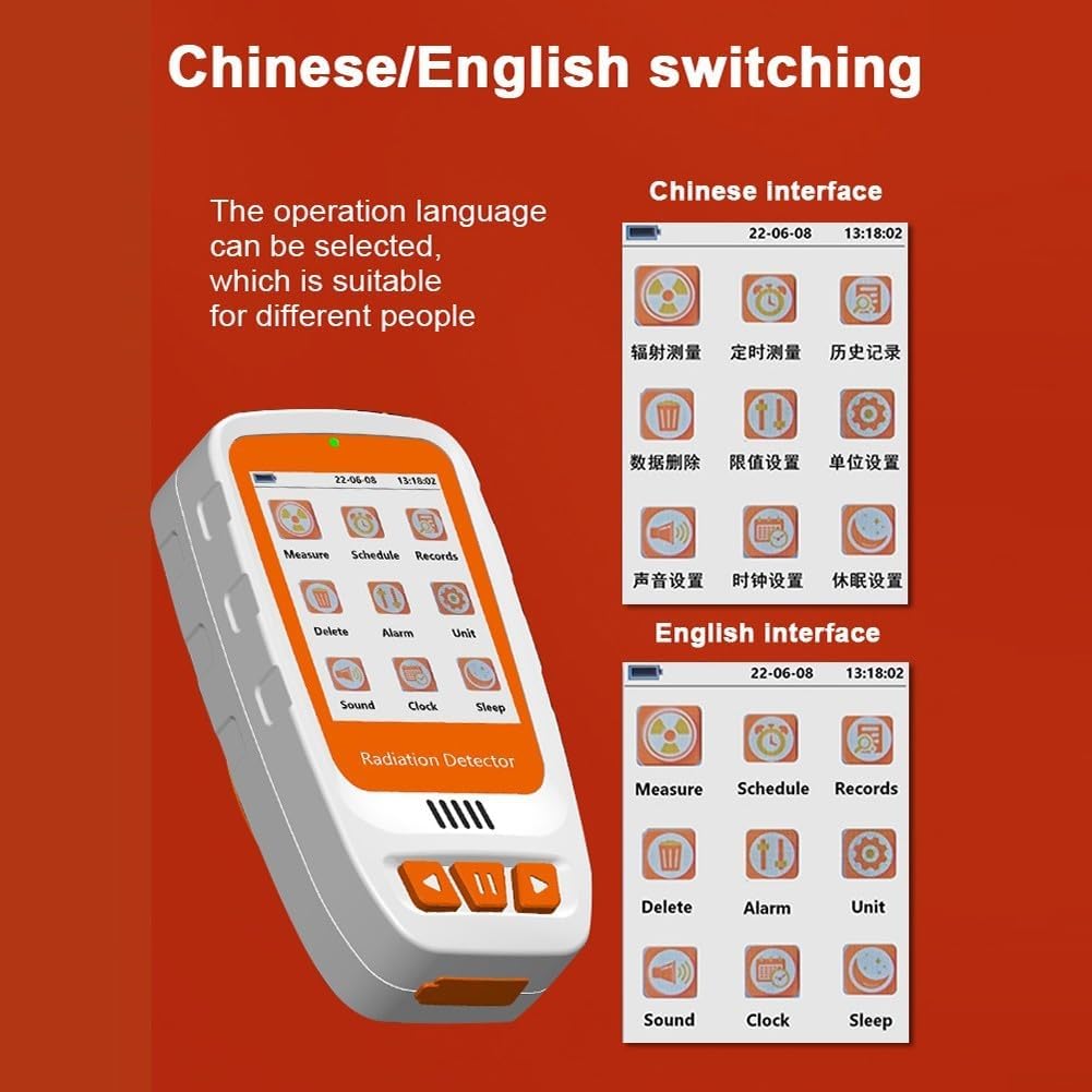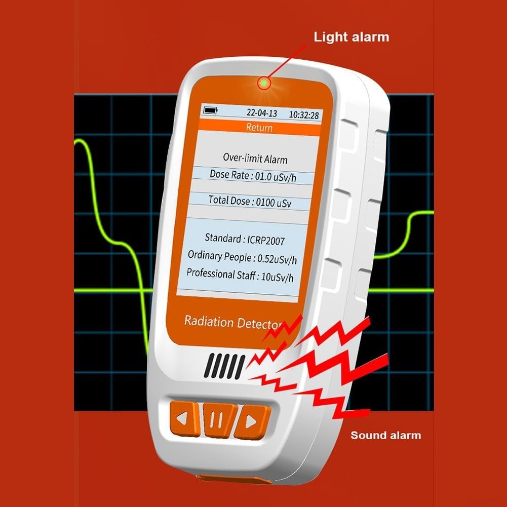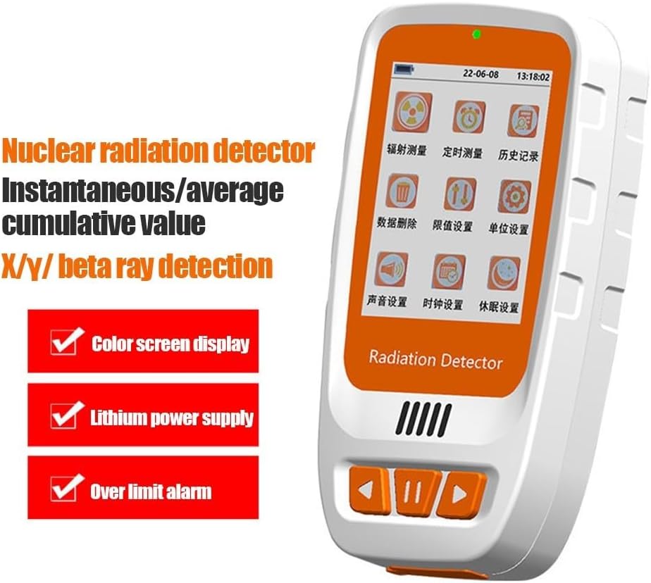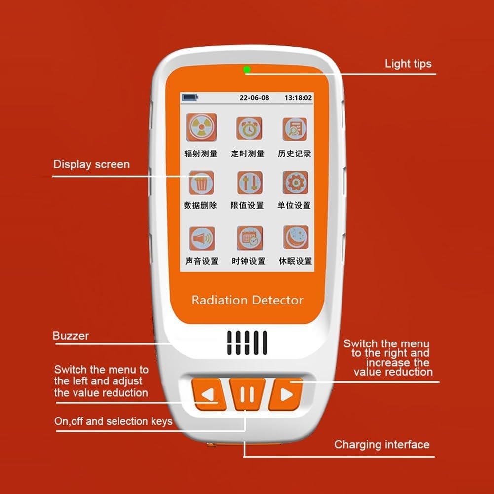 Display LCD: il tester Geiger per radiazioni nucleari dispone di un display LCD chiaro per una facile lettura dei risultati di misurazione. Ampia applicazione: questo tester portatile è ampiamente utilizzato in vari ambienti, tra cui il monitoraggio delle radiazioni domestiche, le imprese di trattamento delle radiazioni e la prevenzione della salute. È adatto per il monitoraggio e la protezione della dose di radiazioni personali. Design facile da usare: con il suo design portatile e compatto, questo tester è comodo da usare. Dispone inoltre di due metodi di allarme di misurazione e metodi di registrazione per una maggiore usabilità. Batteria a lunga durata: il tester ha una lunga durata della batteria, che dura per giorni con misurazione continua. Può essere caricato tramite un'interfaccia TYPE-C e lo stato di carica è indicato da una luce verde.
