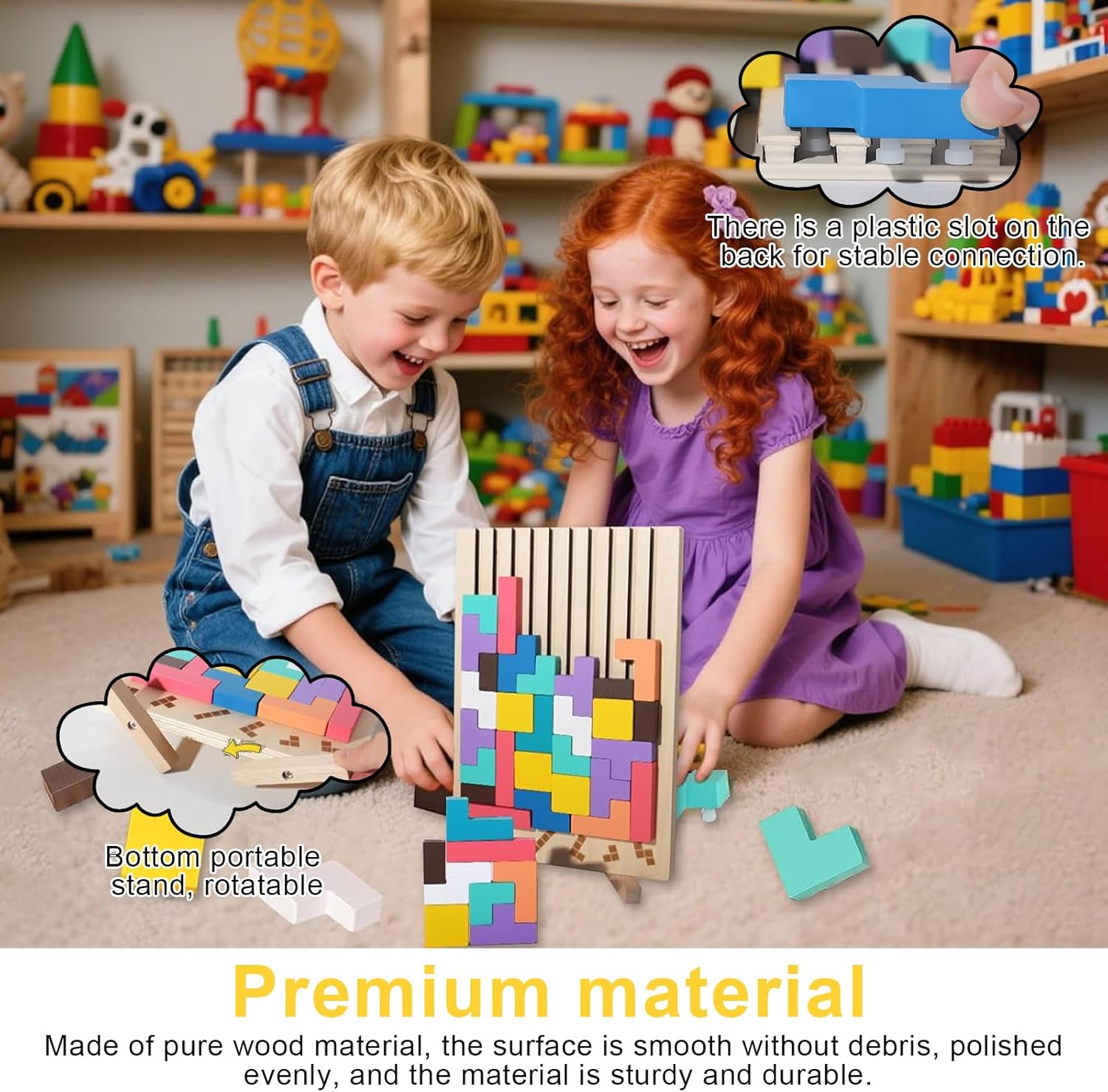 Materiali di Alta Qualità: Puzzle totem tetris è realizzato in legno massello di prima qualità, con una superficie finemente levigata, una consistenza dura che resiste a crepe e deformazioni e bordi lisci privi di sbavature. Le fessure in plastica sul retro dei blocchi garantiscono un collegamento sicuro e il design rinforzato li rende resistenti e sicuri per i bambini, offrendo loro un compagno di giochi duraturo Sviluppo Cognitivo: Tetris legno bambini è composto da blocchi colorati con diversi metodi di assemblaggio. Mentre assemblano i blocchi, i bambini imparano a identificare i colori, a percepire le relazioni spaziali e cercano ripetutamente di migliorare le loro capacità di ragionamento spaziale, migliorando così silenziosamente la loro intelligenza e destrezza manuale Comodo e Pratico: Legno tetris è caratterizzato da un design a fessura con fessure in plastica sui blocchi, che garantisce un assemblaggio stabile che non si smonta facilmente. Può essere facilmente posizionato su un tavolo o sul pavimento, consentendo di giocare immediatamente. Sia a casa che in viaggio, offre un gameplay comodo e divertente Contenuto Della Confezione: Il set puzzle 3d di legno tetris include 1 tavola di legno (31,5 × 19,8 cm), 42 blocchi da costruzione e 10 carte double-face. Mantiene il classico gameplay dei blocchi russi, consentendo al contempo il libero assemblaggio di robot, piramidi e altro ancora, permettendo ai bambini di liberare la loro immaginazione ed esplorare infinite possibilità durante la costruzione Regalo Ideale: Puzzle tetris bambini presenta colori vivaci e un design elegante, che lo rendono perfetto per compleanni, festa dei bambini, Natale e altre occasioni. Come regalo, unisce il divertimento al valore educativo, trasmettendo auguri sinceri e aprendo le porte all'esplorazione e alla gioia per i bambini