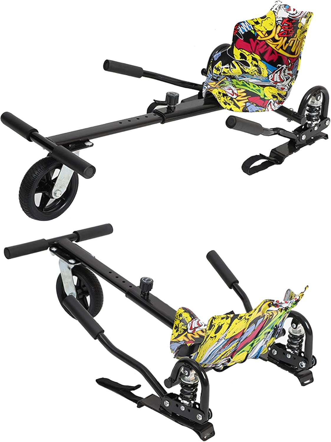 Sicuro e divertente: l'utilizzo di questo attacco per sedile hoverboard è più sicuro che stare in piedi su un hoverboard. Niente più cadute quando l'Hoverboard colpisce una crepa o un urto sul marciapiede. È possibile utilizzare un attacco per sedile hoverboard per accelerare, frenare e girare a sinistra / destra. È davvero una scelta divertente da giocare sia per i bambini che per gli adulti. Regolabile e confortevole: lunghezza del telaio regolabile, questo attacco per sedile hoverboard si adatta a motociclisti dai bambini agli adulti. Il sedile per hoverboard kart si adatta alla gamba e alla schiena per il massimo comfort, ti fa godere di più felicità con il tuo hoverboard. Facile da installare: includiamo istruzioni di montaggio chiare e semplici e tutti gli strumenti necessari con questo attacco per sedile hoverboard in modo che tu possa montare e collegare questo kit al tuo hoverboard in 5 minuti o meno! Adatto per la maggior parte dei modelli da 6,5,8,10 pollici. Servizio post-vendita: offriamo un anno di garanzia dopo l'acquisto e se non ti piace il kart hoverboard, puoi riavere i soldi. Per qualsiasi domanda, non esitare a chiamarci o inviarci un'e-mail. Non preoccuparti mai del servizio post-vendita. Nota: include solo il kart, nessun hoverboard. L'età minima dell'utente è 8. Usare protezioni di sicurezza come un casco, una ginocchiera per ogni corsa