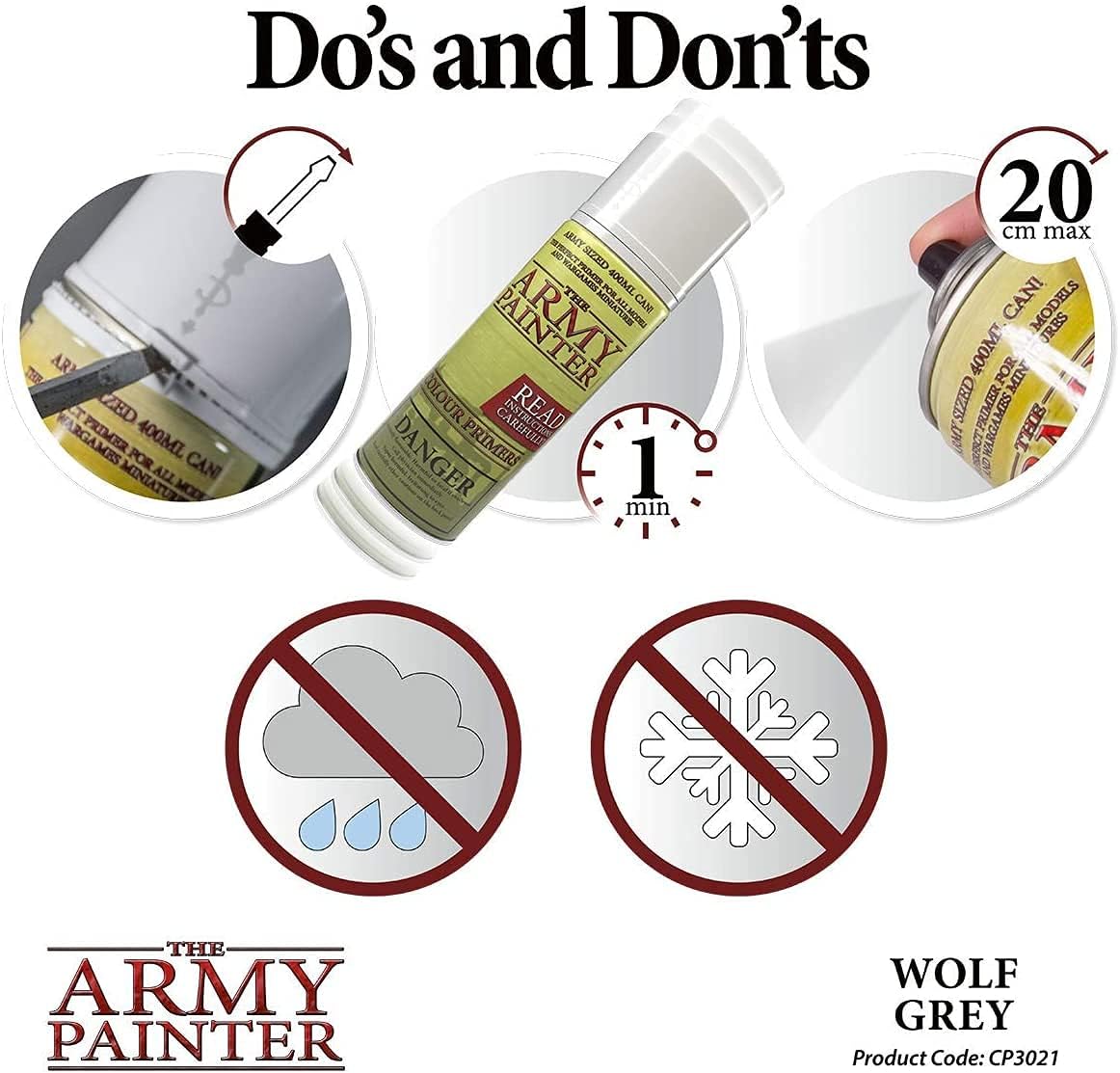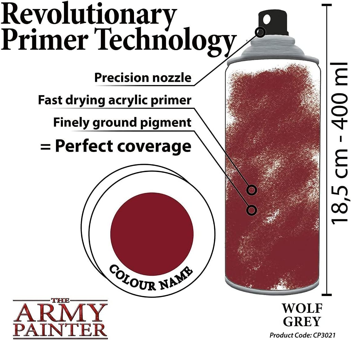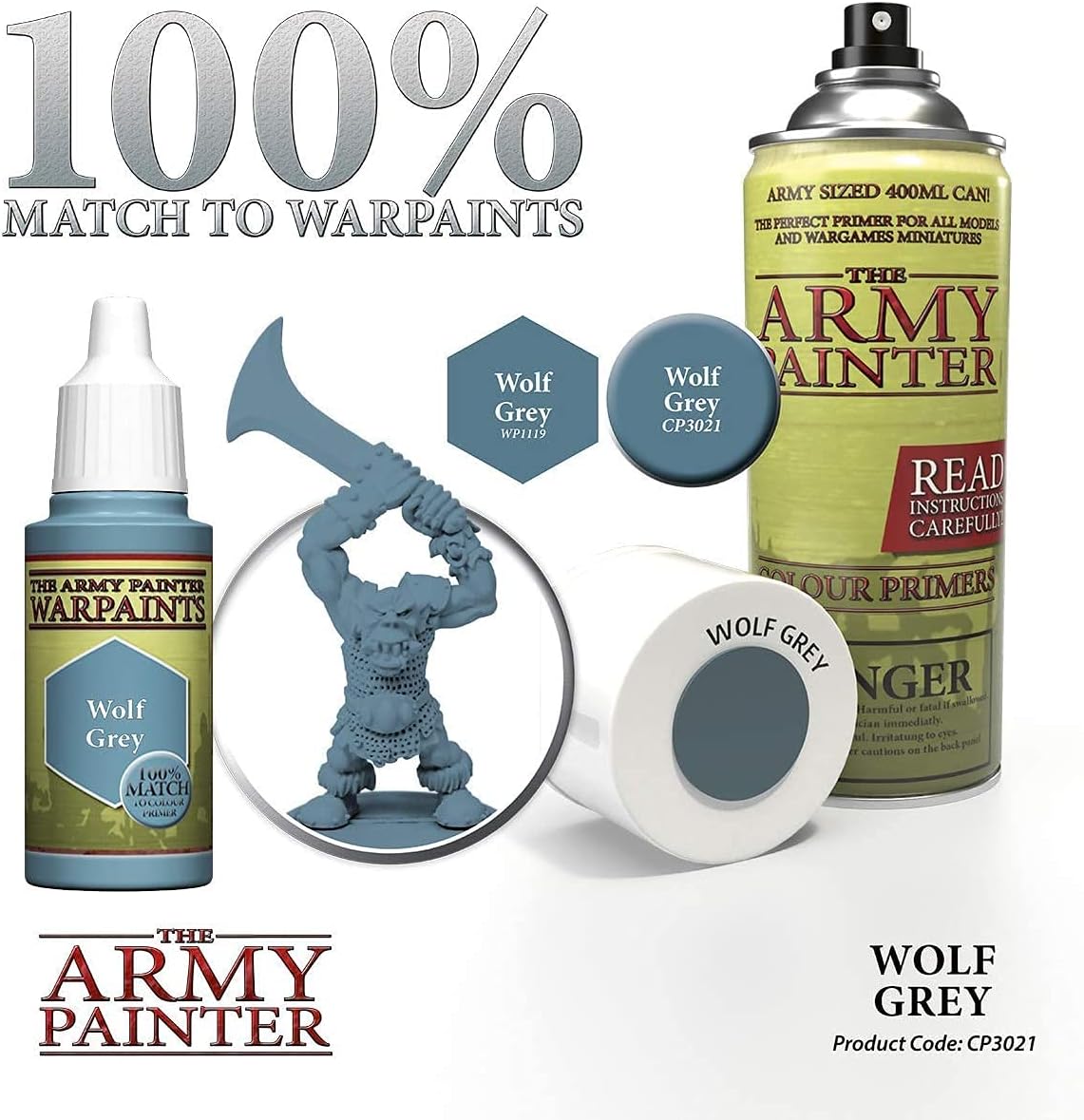 Army Painter CP3021 Colour Primer - Wolf Grey SIZE: "400ml, 13.5oz" COLOR: Wolf Grey