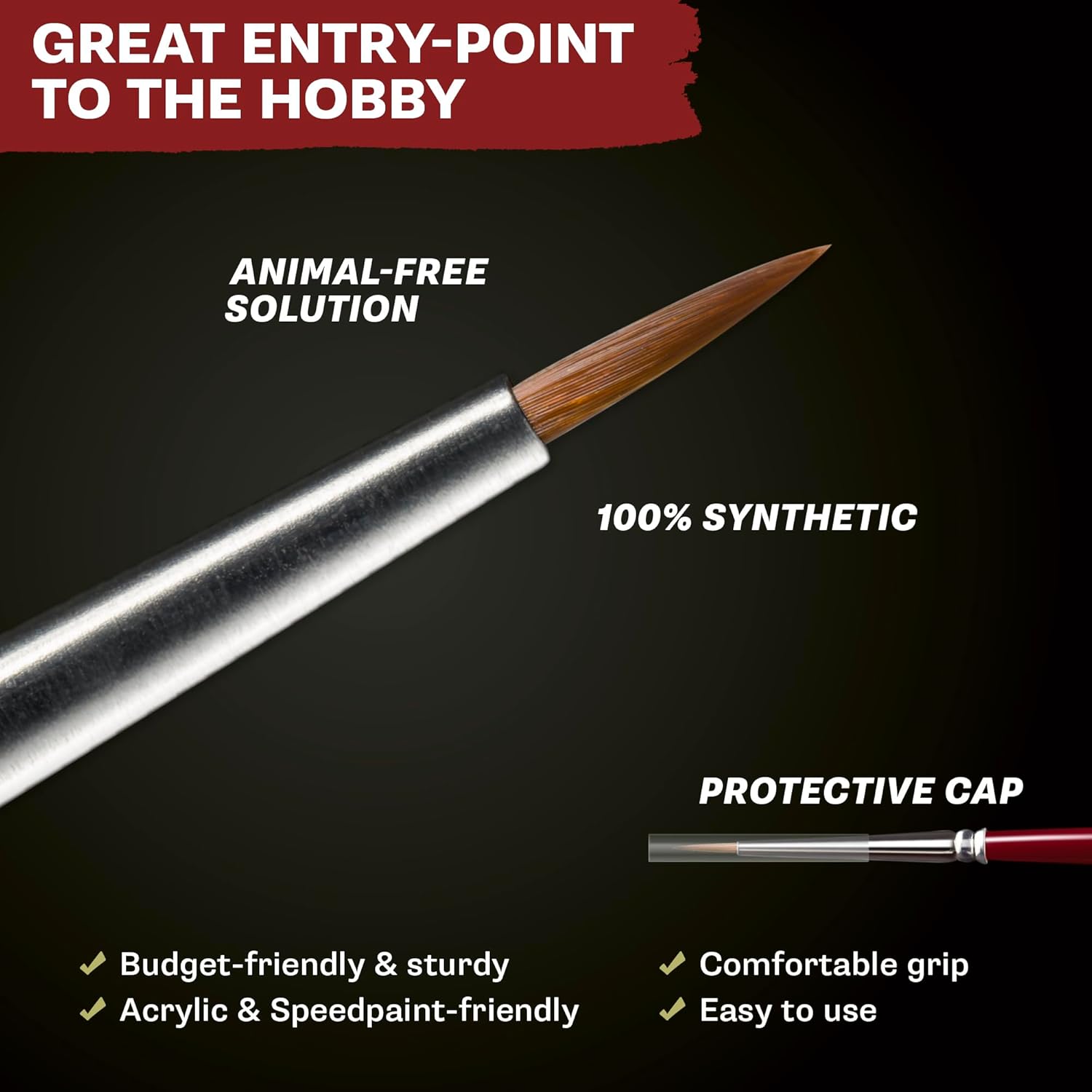 3 pennelli da modello: un set di 3 pennelli di base per dipingere miniature da tavolo. Coprono le tecniche di base, il primer, i dettagli e le spazzole a secco e funzionano perfettamente con Army Painter Speedpaint e Warpaints Fanatic. Setole che mantengono la forma e mantengono bene il colore. Realizzato con setole sintetiche di alta qualità. Questi pennelli da modellazione sono dotati di ghiere nichelate che sono doppiamente fissate al manico per evitare sfilacciature e oscillazioni e mantenere le punte dei pennelli a lungo termine. Manici ergonomici per una presa sicura: i 3 pennelli da artista dispongono di un manico triangolare che consente una presa molto più stabile durante l'adescamento o lavori particolarmente dettagliati. Versatile: questi pennelli per hobby non sono adatti solo per Speedpaints e Warpaints Fanatic nell'hobby del tablet; possono essere utilizzati anche con colori a olio, acquerelli, acrilici, guazzi e colori a contrasto. Indipendentemente dal supporto che desiderate lavorare, questi pennelli vi aiuteranno a creare fantastiche opere d'arte Ideale per principianti: questo set di pennelli in miniatura soddisfa i requisiti di base della pittura del modello ed è quindi ideale per i principianti degli hobby.