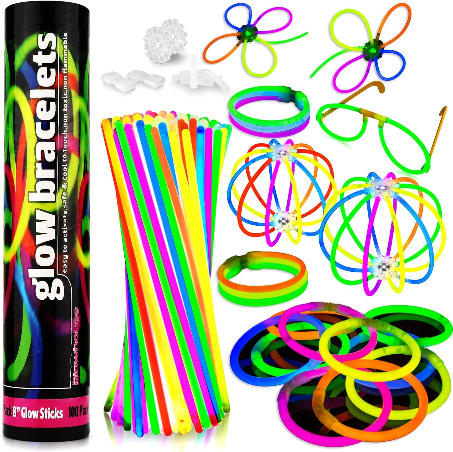 SET PREMIUM PER FESTE DA 100 BRACCIALETTI GLOW - I 100 braccialetti luminosi Premium di The Glowhouse sono della massima qualità e sono testati per la sicurezza da The Glowhouse nel Regno Unito! SET DI CONNETTORI DA 204 PEZZI - Il set per feste contiene 100 bastoncini luminosi, 100 connettori per bracciale di alta qualità, 2 connettori a sfera o fiore e 2 connettori per braccialetto triplo. MASSIMA QUALITÀ E COLORI BRILLANTI - Questi braccialetti brillano per circa 12 ore, sono sicuri e non si scaldano. Sono facili da attivare: basta piegare il braccialetto nel senso della lunghezza, agitarlo un po' e il contenuto si mescola e si è pronti per lo spettacolo! Quindi tutto ciò che devi fare è collegare uno dei nostri connettori di alta qualità a un'estremità e unirlo per creare un braccialetto adatto a tutti - e il bagliore può iniziare! SICURO DA USARE (A PROVA DI PERDITE) - Abbiamo progettato i nostri bastoncini luminosi in modo che tu possa stare tranquillo sapendo che anche i bambini possono giocarci in sicurezza. Il design robusto impedisce alle bacchette luminose di rompersi e perdere facilmente come prodotti simili sul mercato. THE GLOWHOUSE DAL REGNO UNITO - Acquista da un marchio di fiducia, illuminiamo la strada dal 2004!