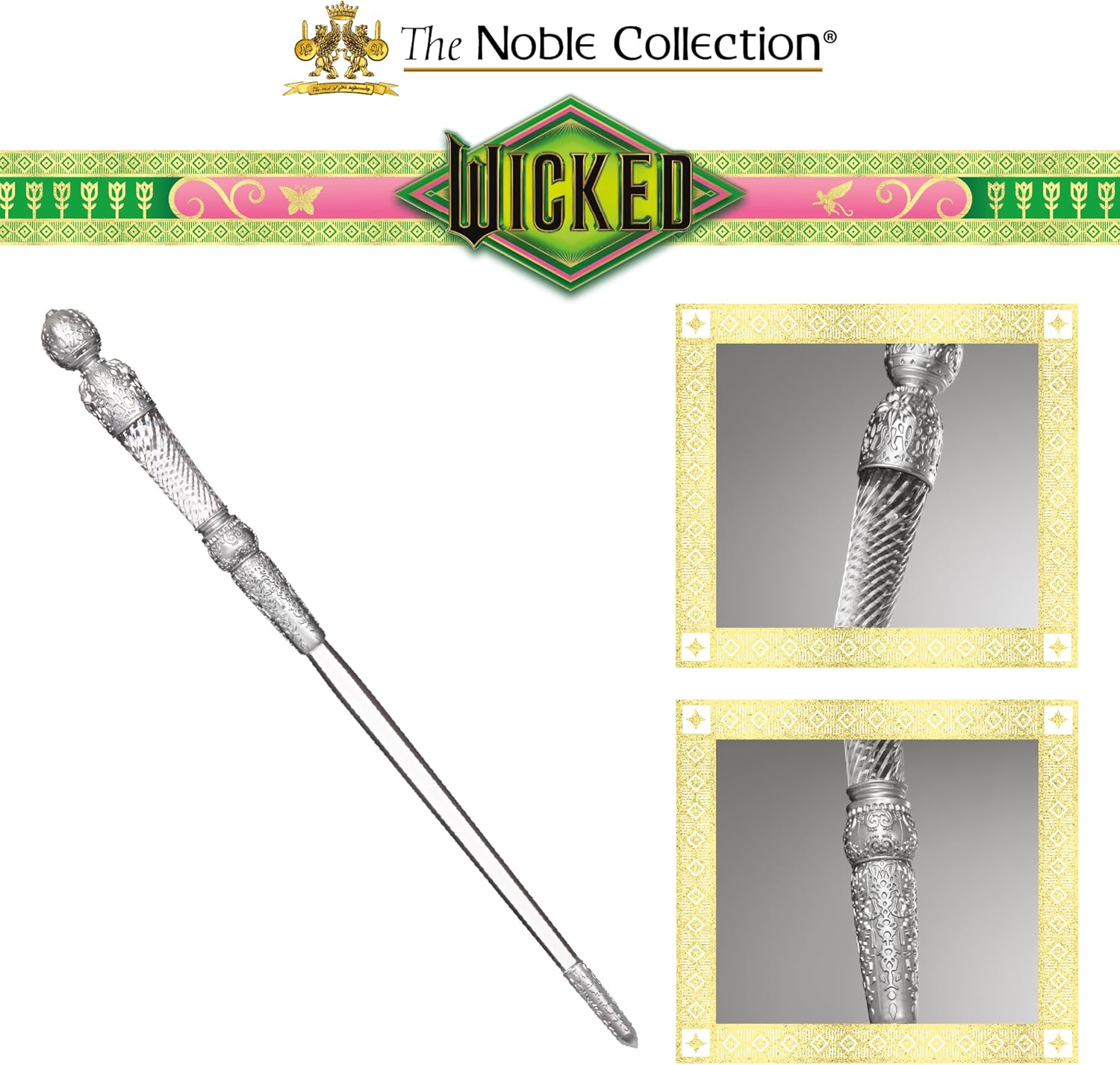 Portare il mondo di Oz home con questa replica autentica di Glinda's Training Wand, come seen in the new Wicked movie Intricate details from handle to tip highlight the care and craftsmanship involved in making this wand Raccogli tutti i nostri articoli di roleplay Glinda, inclusi la sua corona di bolle, Bubble Tiara, Bubble Wand, e altro ancora! Misure approssimative 14" lungo Raccomandato per i fan Wicked età 5+