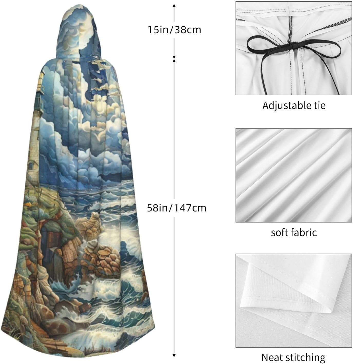 Il design senza cerniera, abbinato a un grande mantello con cappuccio e cravatta al collo, migliora il tuo mistero mantenendoti comodo con il suo tessuto non prurito. Con una lunghezza di 147 cm, larghezza di 154 cm e un'altezza del cappuccio di 38 cm, il nostro mantello con cappuccio con stampa The Seaside Lighthouse offre una copertura completa, assicurandoti di distinguerti in ogni occasione. Vari eventi come Halloween, cosplay, costumi da palcoscenico, feste a tema, balli, convegni di fumetti e molto altro ancora, il nostro mantello è versatile e conveniente. Facile da mantenere e di lunga durata, il nostro mantello con cappuccio con stampa The Seaside Lighthouse è lavabile in lavatrice e lavabile a mano. Con un design neutro, il nostro mantello è perfetto per uomini e donne.