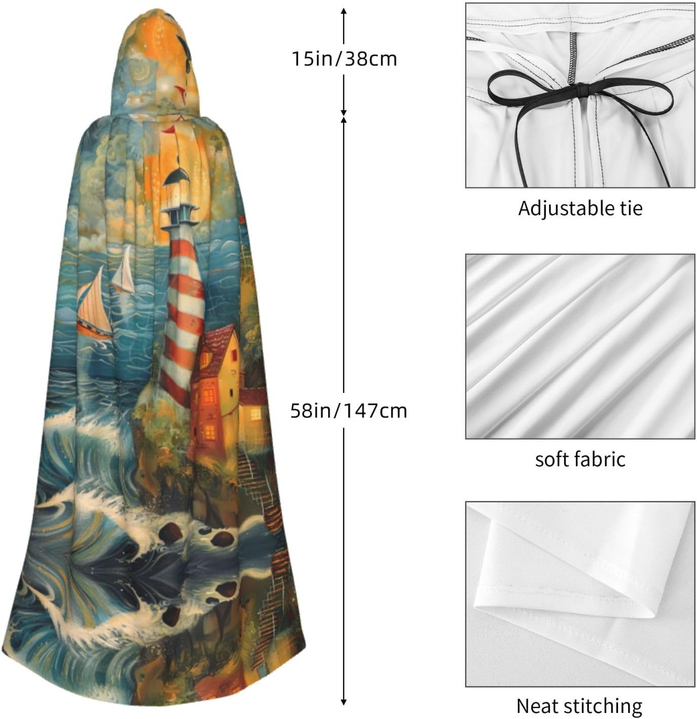 Il design senza cerniera, abbinato a un grande mantello con cappuccio e cravatta al collo, migliora il tuo mistero mantenendoti comodo con il suo tessuto non prurito. Con una lunghezza di 147 cm, larghezza di 154 cm e un'altezza del cappuccio di 38 cm, il nostro mantello con cappuccio con stampa The Seaside Lighthouse offre una copertura completa, assicurandoti di distinguerti in ogni occasione. Vari eventi come Halloween, cosplay, costumi da palcoscenico, feste a tema, balli, convegni di fumetti e molto altro ancora, il nostro mantello è versatile e conveniente. Facile da mantenere e di lunga durata, il nostro mantello con cappuccio con stampa The Seaside Lighthouse è lavabile in lavatrice e lavabile a mano. Con un design neutro, il nostro mantello è perfetto per uomini e donne.