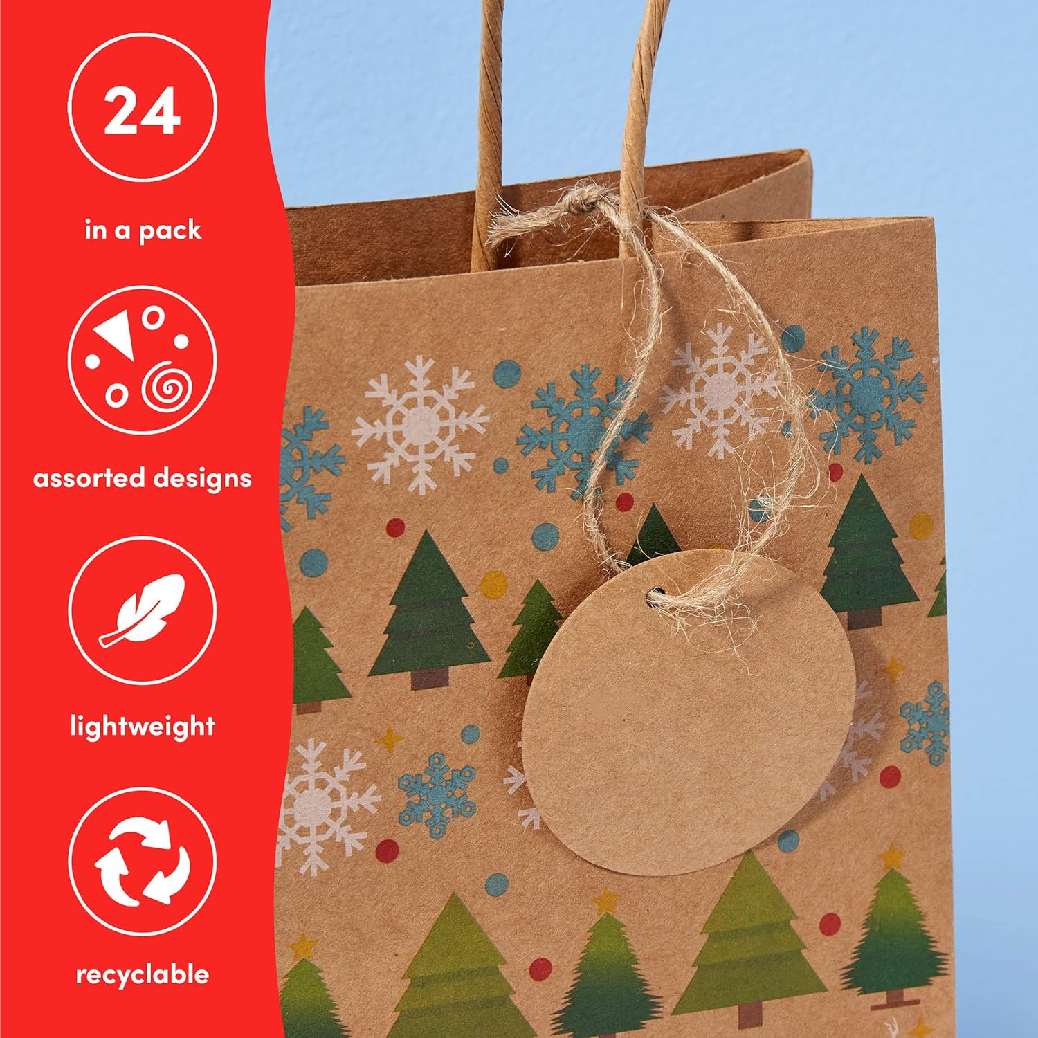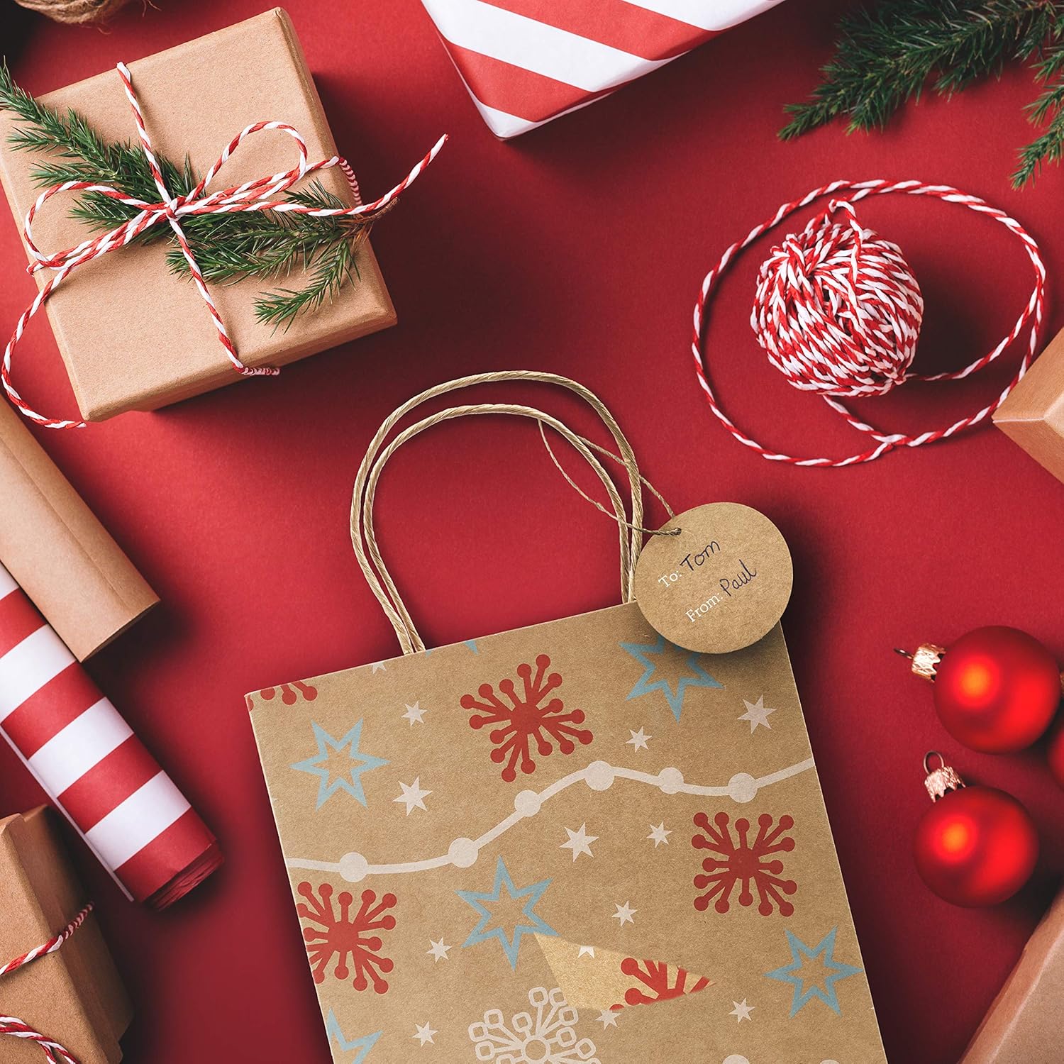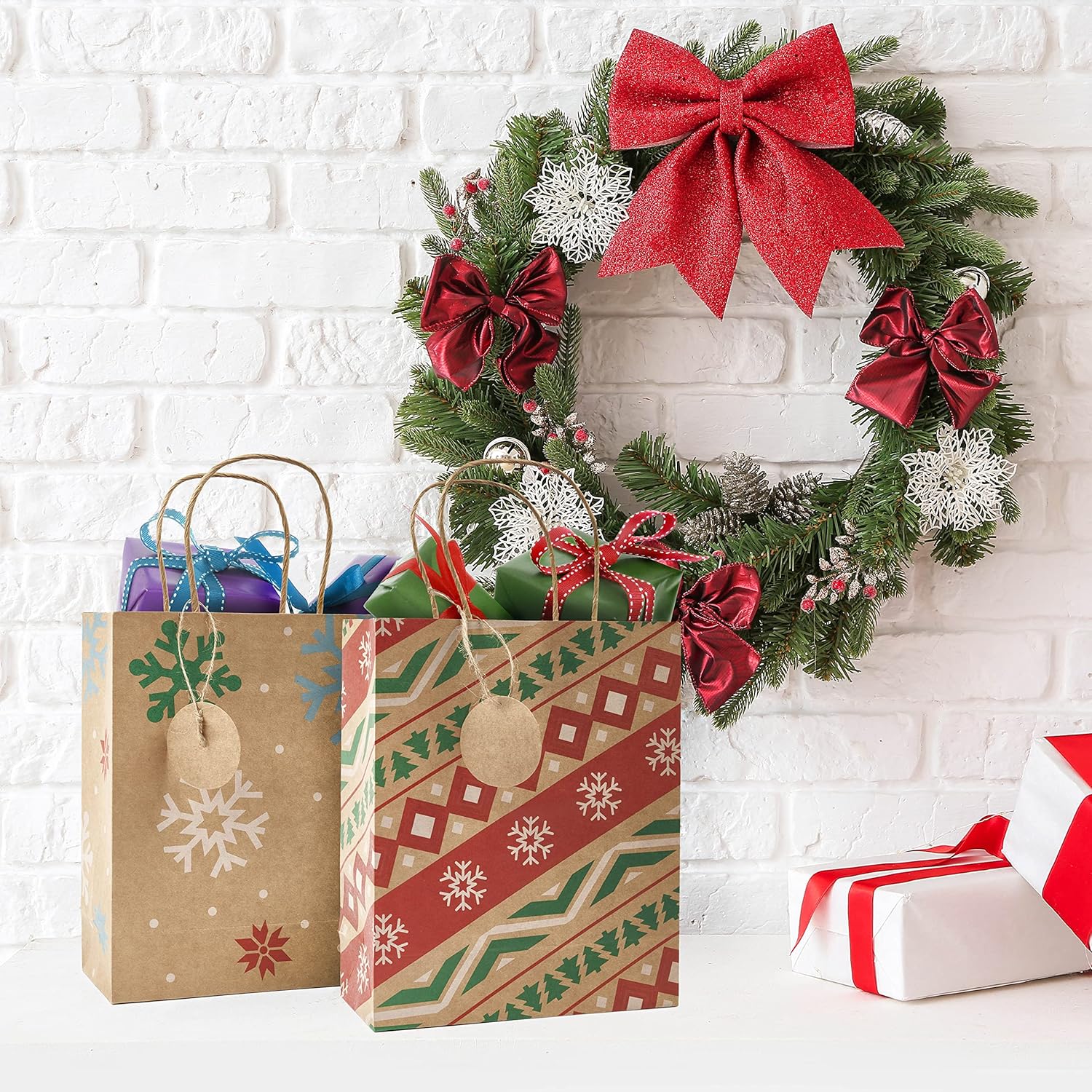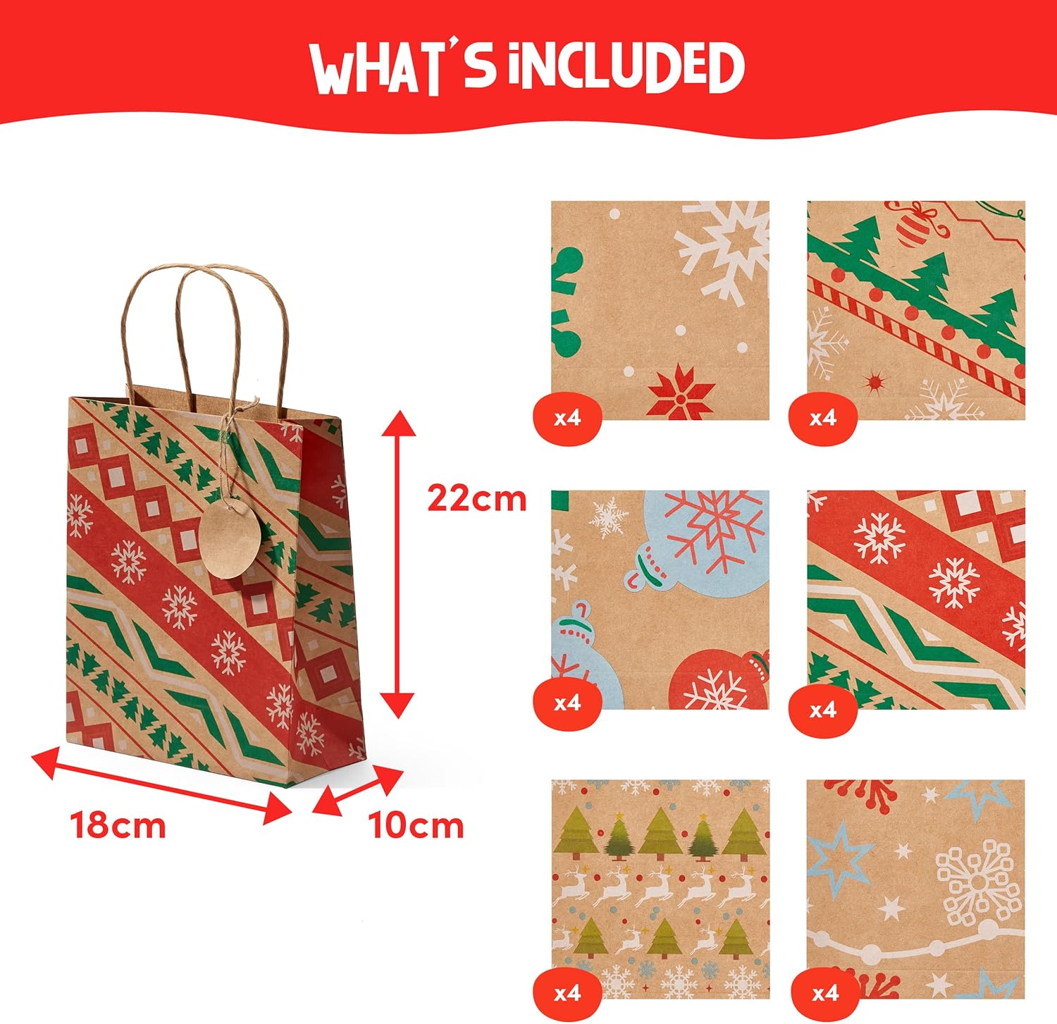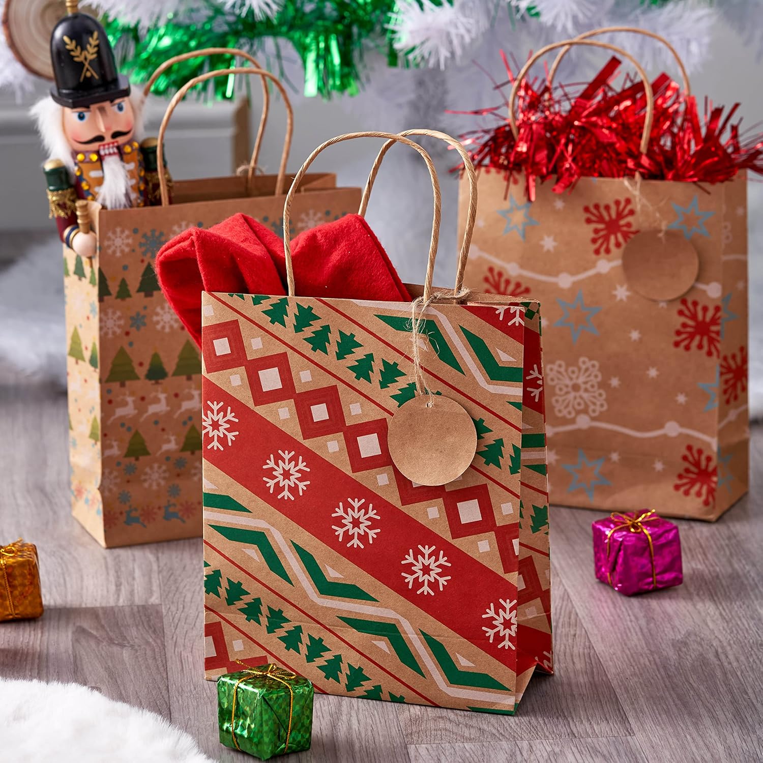 MINIMALISTA - Questi sacchetti di carta kraft hanno un fantastico look minimalista e festoso e sono perfetti per chi preferisce un approccio più semplice/elegante al Natale. ECOLOGICI - Sono un'ottima alternativa alla carta da imballaggio che viene strappata e gettata via e alcuni sono addirittura rivestiti con materiali non riciclabili. Le borse Kraft sono riutilizzabili e molto più rispettose dell'ambiente. CONFEZIONE REGALO FACILE - Confezionare regali non è per tutti. Risparmia tempo e frustrazione confezionando tutti i tuoi regali in un bellissimo sacchetto di carta kraft. Problema risolto! VOCE FESTIVA - Entra nello spirito natalizio e sorprendi i tuoi cari, i vicini e/o i colleghi di lavoro con un grazioso sacchetto regalo pieno di gadget. GRANDI DIMENSIONI - Le nostre borse natalizie fatte a mano misurano 22 x 18 x 10 cm, la dimensione perfetta per regali e dolcetti di tutte le forme e dimensioni.