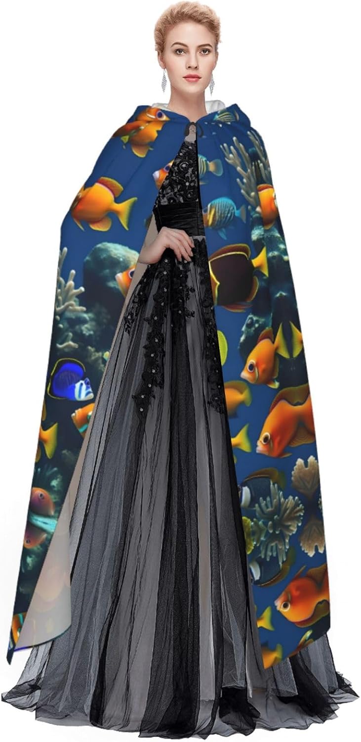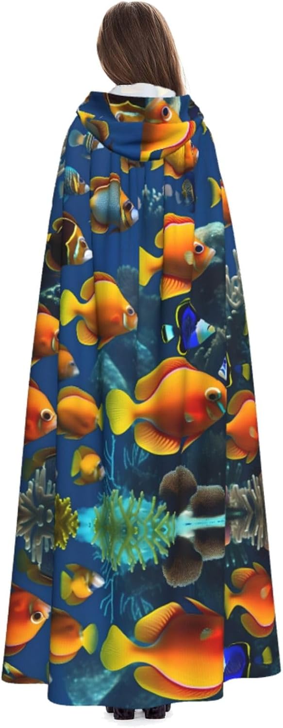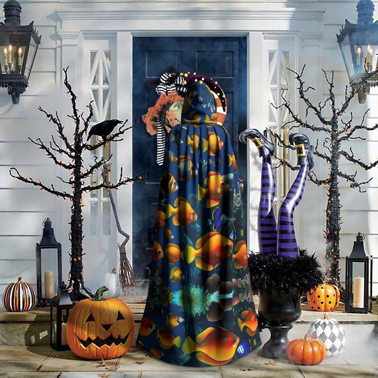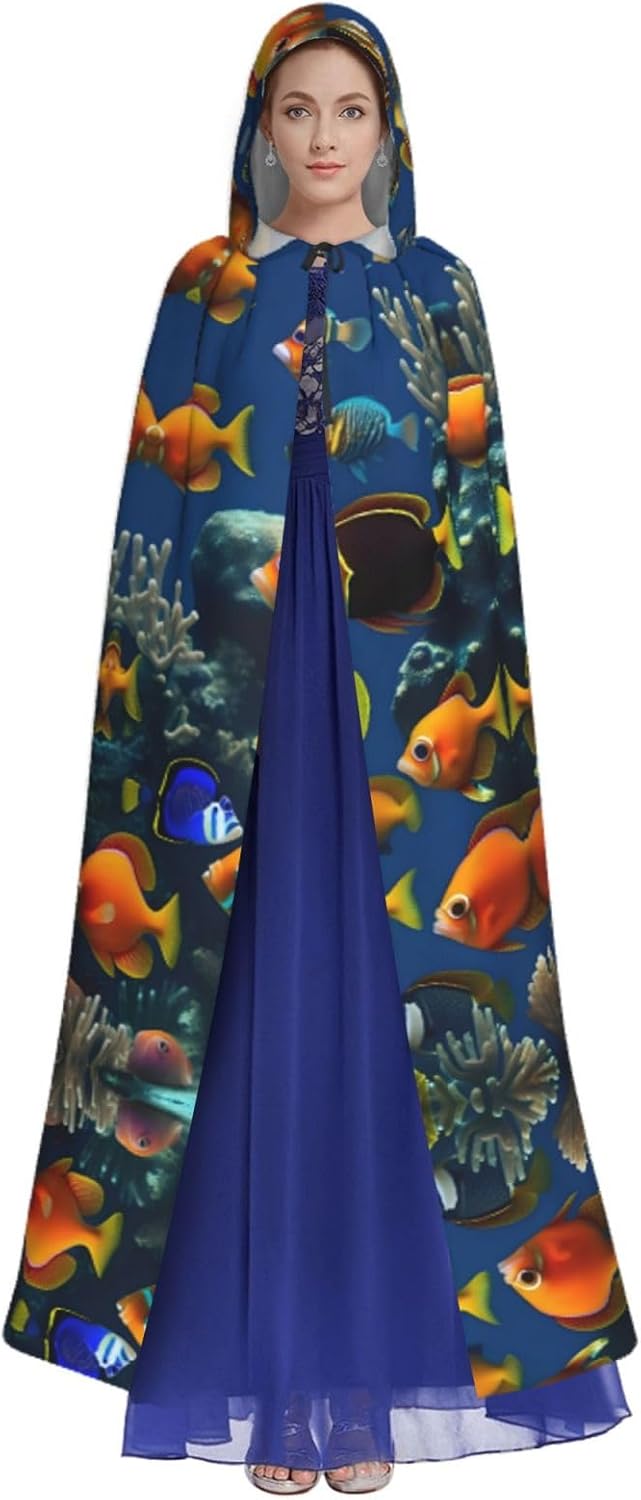 Il mantello con cappuccio per Halloween è realizzato con tessuto in poliestere morbido anche sulla pelle, prevenendo qualsiasi irritazione. Il mantello presenta un ampio cappuccio e uno stile annodato senza cerniere per un design sofisticato ed elegante. Con la sua dimensione universale, offre una copertura completa, adatta a tutti, assicurandoti di distinguerti tra la folla. Questo mantello con stampa di pesci tropicali del mondo sottomarino non è solo per Halloween; è abbastanza versatile per cosplay, spettacoli teatrali, balli in maschera, feste a tema e molto altro ancora.