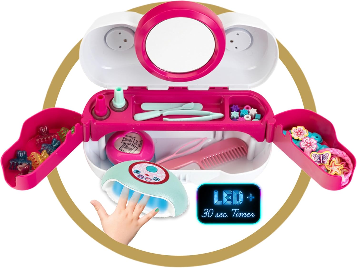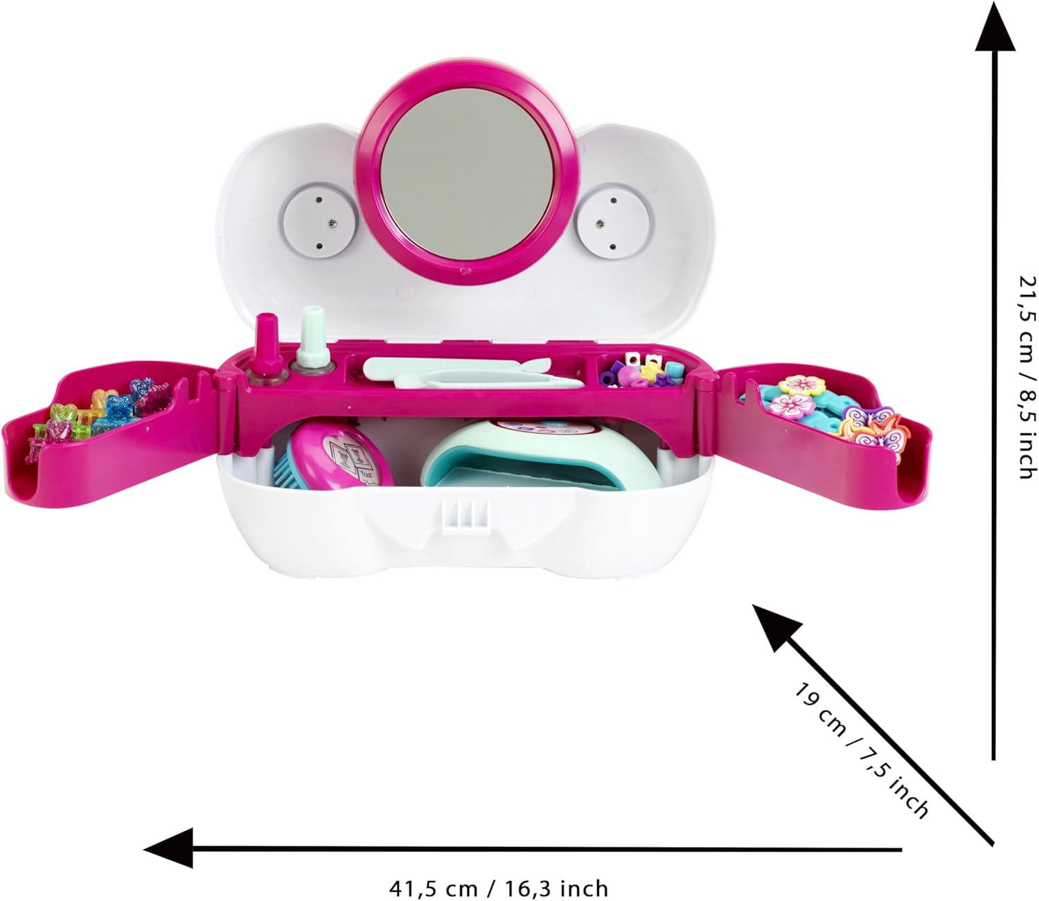 Questo beauty case è adatto da portare ovunque e contiene tutto ciò che fa battere il cuore dei nostri giovani amanti dello stile Con colorati adesivi per unghie, è possibile creare meravigliose decorazioni per le unghie, mentre fermagli e perline permettono di realizzare pettinature fantasiose Un punto forte è l'asciugatore per unghie alimentato a batterie con luce LED e timer di 30 secondi, che rende il momento dell'asciugatura un vero divertimento Fissare fermagli per capelli e applicare adesivi colorati sulle piccole unghie non solo sviluppa le abilità motorie, ma anche la creatività dei bambini Adatto per bambini dai 3 anni Batterie necessarie: 2 x R03-AAA, non incluse nella dotazione