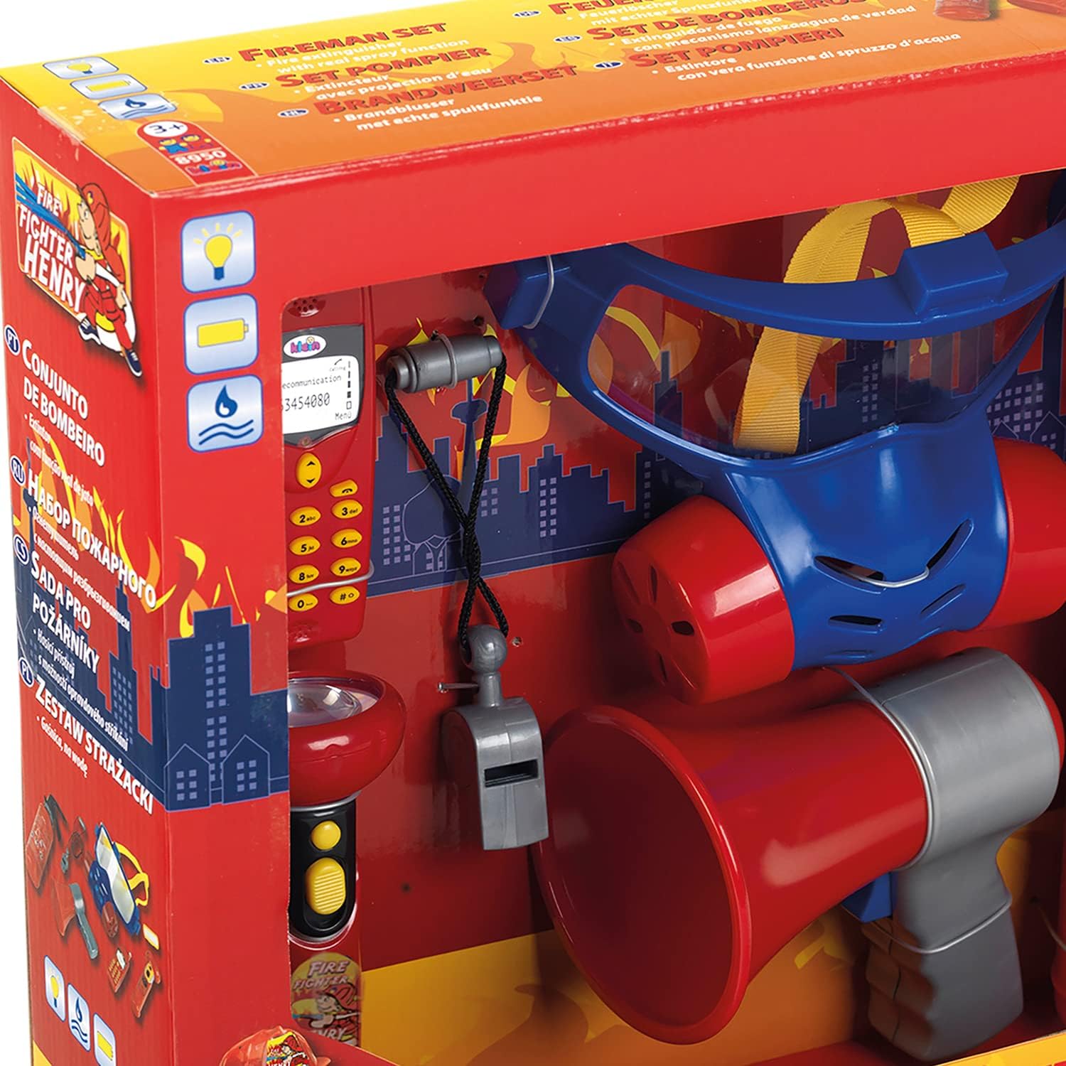 Con questo set di alta qualità, piccoli eroi sono ben equipaggiati per sentirsi dei veri pompieri l'estintore è particolarmente apprezzato, con una capacità di 0,5 litri e funzione spruzzo, rinfresca le menti fervide oltre agli incendi che accendono la loro immaginazione La torcia che funziona, il bel megafono e il respiratore possono anche essere usati dai piccoli operatori di soccorso durante le loro missioni Molti bambini amano giochi di ruolo e imitare loro eroi e modelli ciò allena la loro fantasia così come le abilità comunicative e l'empatia Adatto a bambini dai 3 anni in su Batterie richieste: 2x R6-AA non incluse