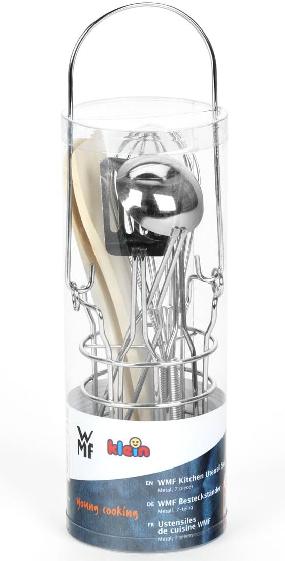 Prodotto su licenza WMF Il supporto per posate in metallo è composto da supporto, cucchiaio per la pasta, mestolo e cucchiaio per mescolare Il complemento perfetto per la cucina di Theo Klein Gioco di imitazione per bambini da 3 anni in su