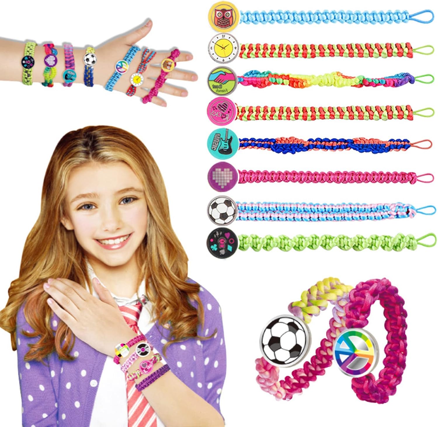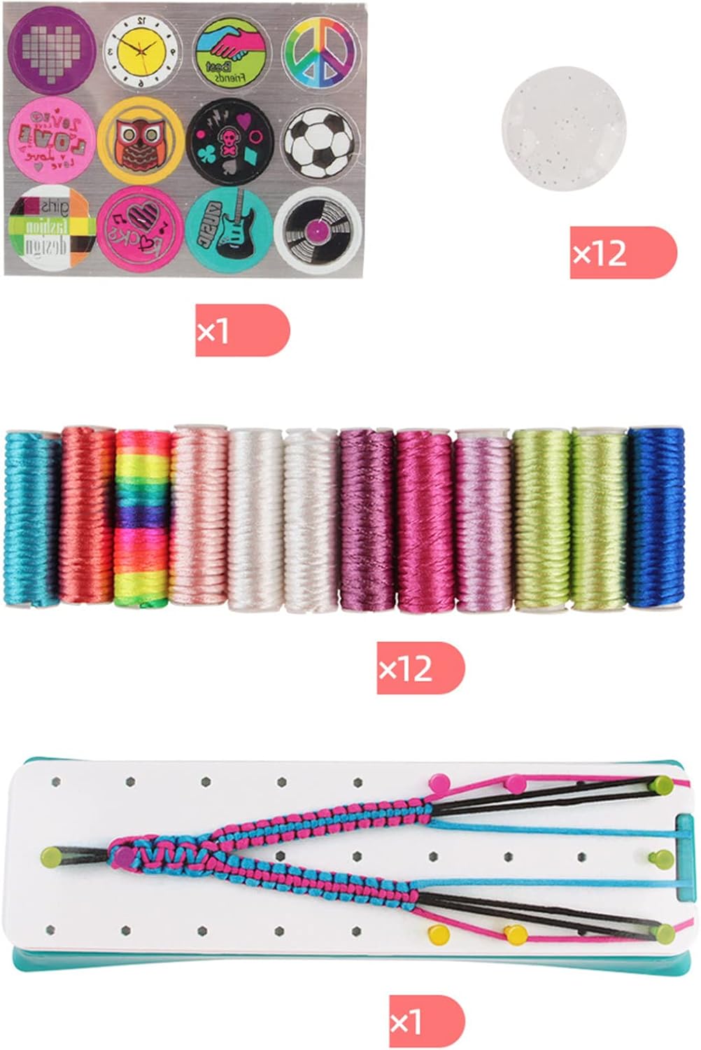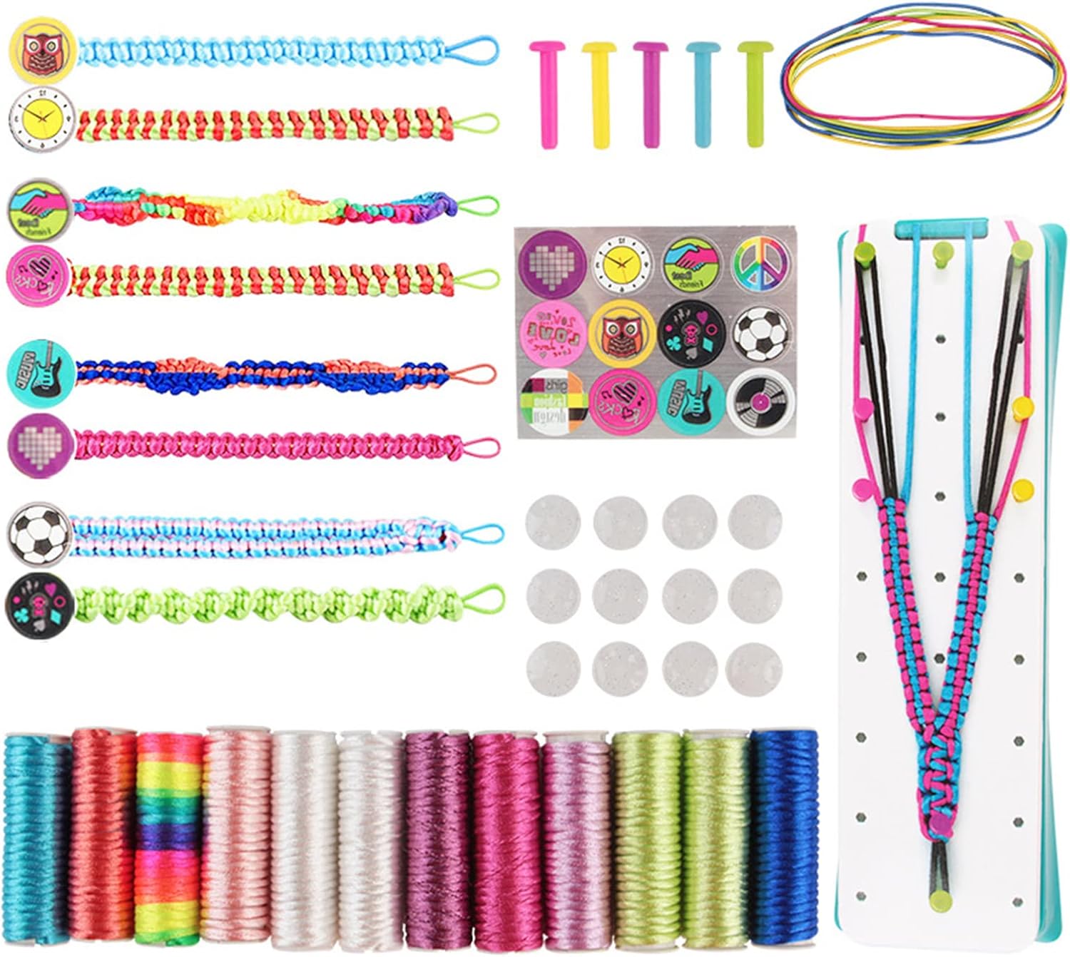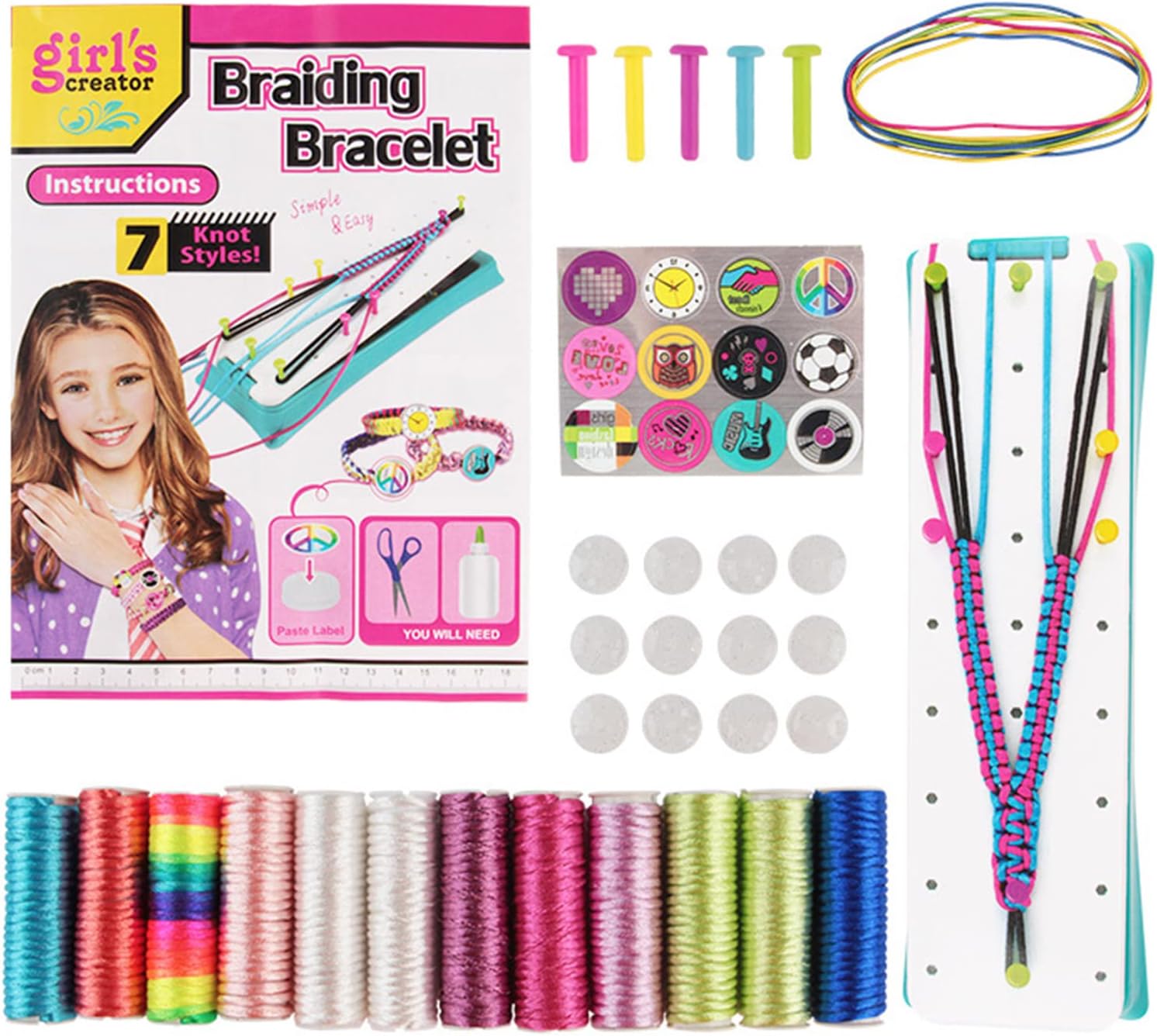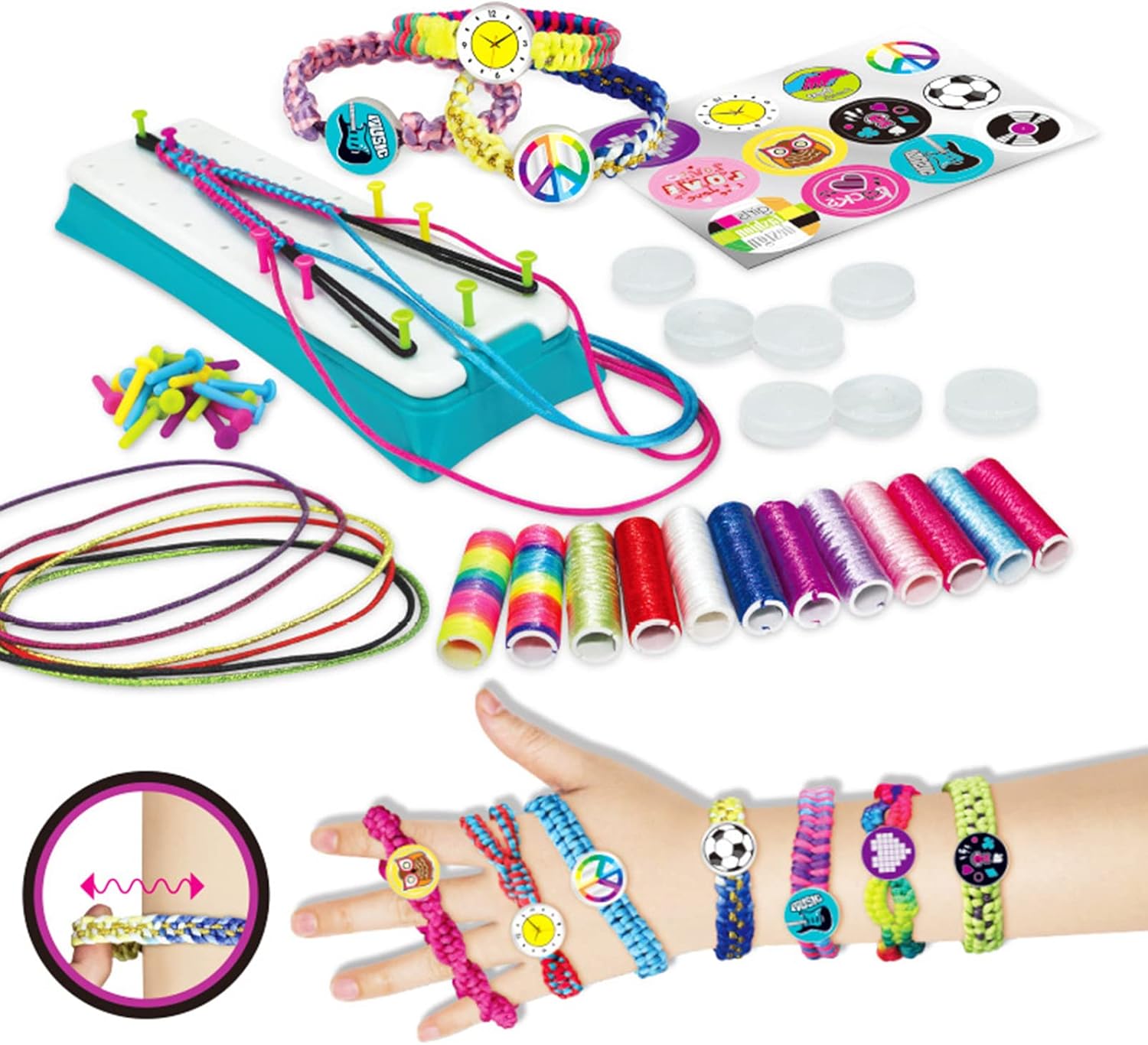 Craft rende più facile per i bambini creare meravigliosi braccialetti. Inviali a familiari o amici quando hai finito. Gli adolescenti preferiscono creare e vivaci moda per esprimere le loro personalità. Regalo ideale per compleanni, vacanze, giochi di famiglia, feste, attività di viaggio, ecc. Uno strumento funzionale per gioielli con perni mobili per mantenere il bracciale in posizione e mantenere i fili separati e organizzati. Questo è un buon regalo che può sviluppare la creatività dei bambini e abilità pratiche. Il cuscinetto intrecciato per corda dispone di perni mobili per tenere i fili per l'artigianato. Il design eccellente mantiene tutti i fili separati, organizzati e migliori. Facile da usare per adolescenti e ragazze adolescenti.