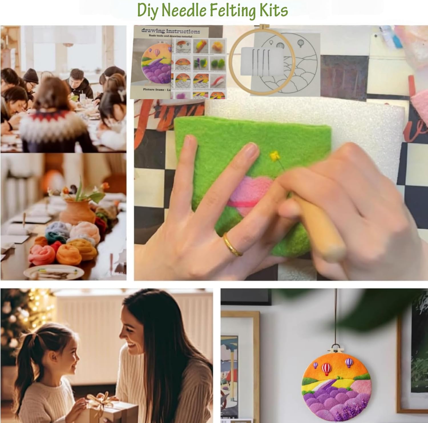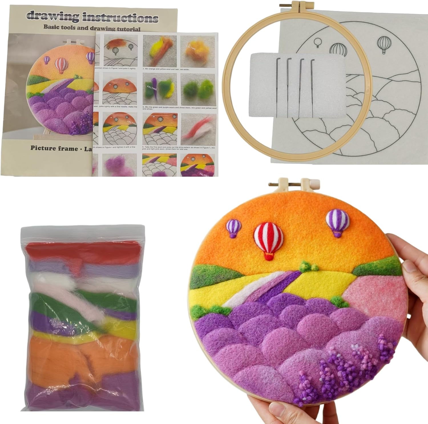 Set completo per lavori fai da te: questo kit di pittura in feltro ad ago include tutto ciò di cui hai bisogno, con 1 sacchetto di lana, 1 istruzioni, 1 cornice, 1 cuscinetto in schiuma, 3 aghi per infeltrimento e molto altro ancora Lana di alta qualità: realizzato in lana di alta qualità e priva di inquinamento, questo kit garantisce una lavorazione sicura senza odori sgradevoli o impurità, perfetto per creare bellissimi progetti in feltro ad ago Facile guida passo-passo: il manuale in inglese incluso fornisce istruzioni chiare e passaggi di produzione dettagliati, rendendo semplice per i principianti imparare e godersi l'arte dell'infeltrimento della lana Splendido pezzo decorativo: una volta finito, la tua opera d'arte in feltro di lana può essere posizionata nella cornice rotonda, trasformandola in una squisita decorazione per la tua casa o l'ufficio Un regalo premuroso e creativo: che tu stia regalando a una persona cara o ti stai trattando, questo kit fai da te per infeltrimento ad ago ispira creatività. È un modo meraviglioso per celebrare la bellezza della natura e godere della soddisfazione dell'arte fatta a mano