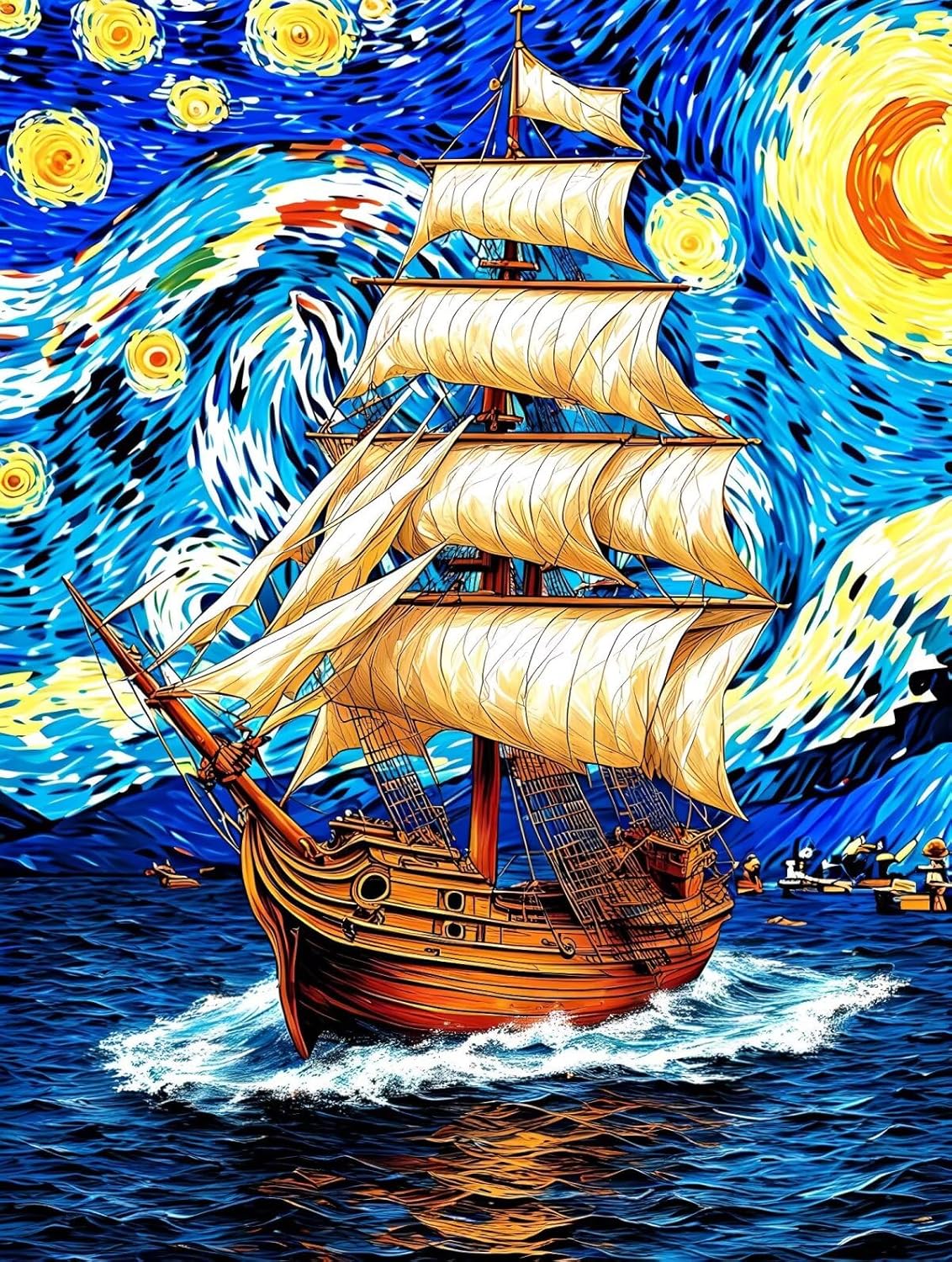 THISIT Kit di pittura con i numeri con pennelli e vernici, Barca, acqua, legno-16 * 20 pollici senza cornice