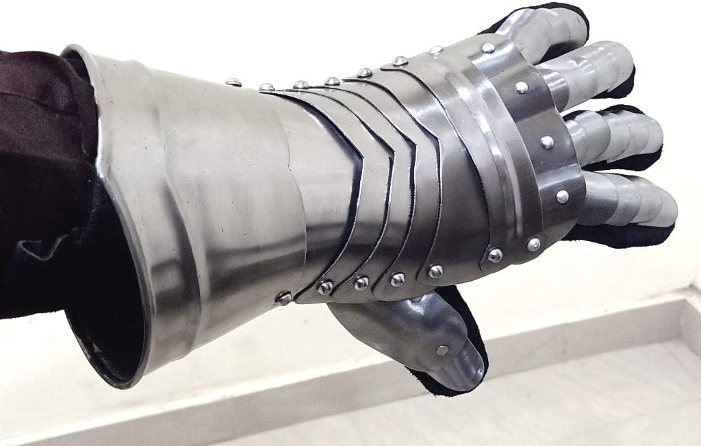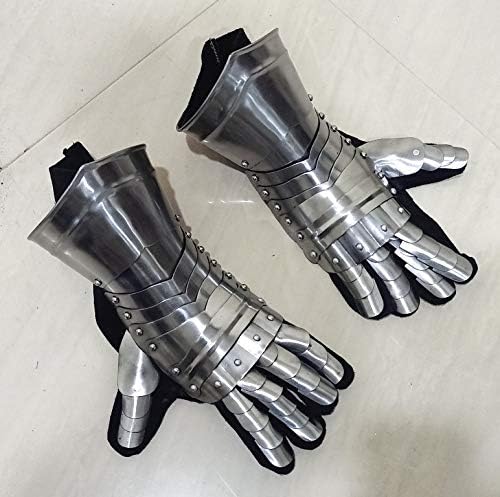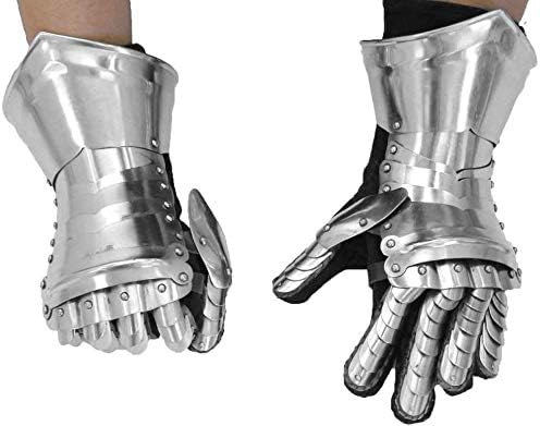 THOR INSTRUMENT Cavaliere medievale Costume di Halloween Guanti d'arme Armatura Guanti in acciaio Rustico Vintage Decorazioni per la casa Regali Argento Adulto