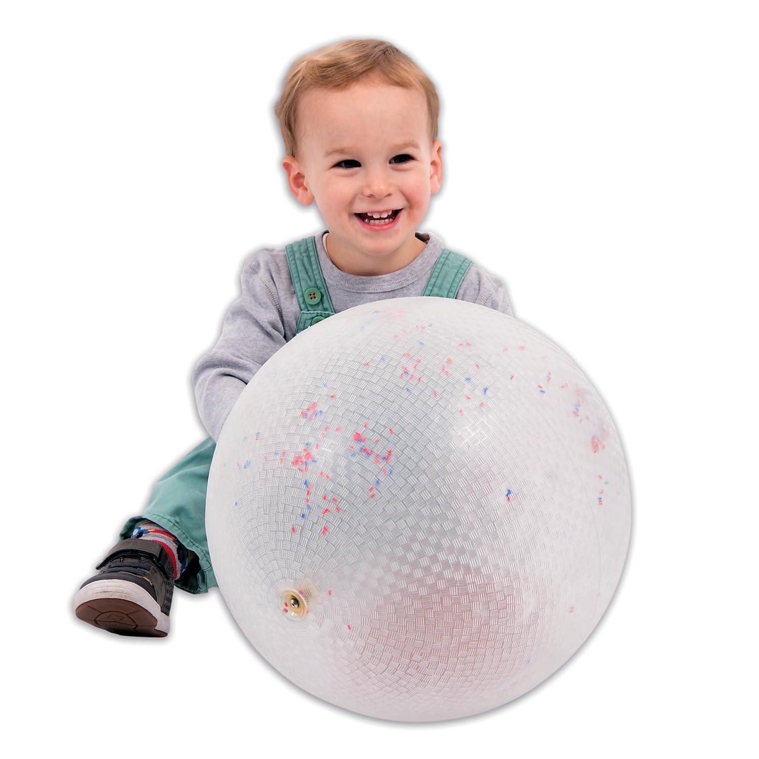Una grande palla gonfiabile con una superficie sottile strutturata contenente migliaia di piccole perline colorate. Una grande risorsa sensoriale come questo contenuto della palla costellazione sonaglio e danza mentre la palla viene arrotolata. Il bambino può essere intrattenuto da questi movimenti unici. Richiede gonfiaggio. circa Diametro: 310 mm.