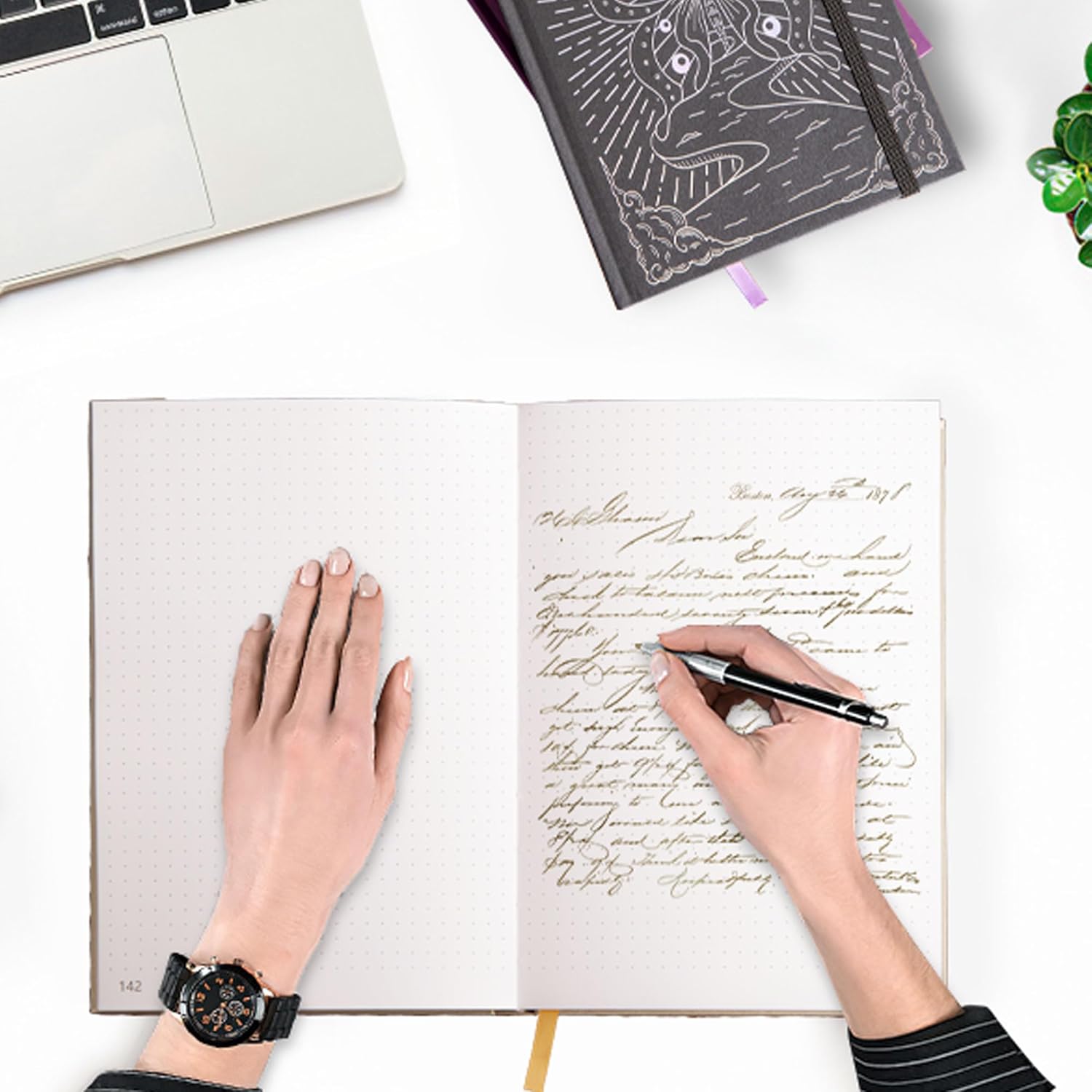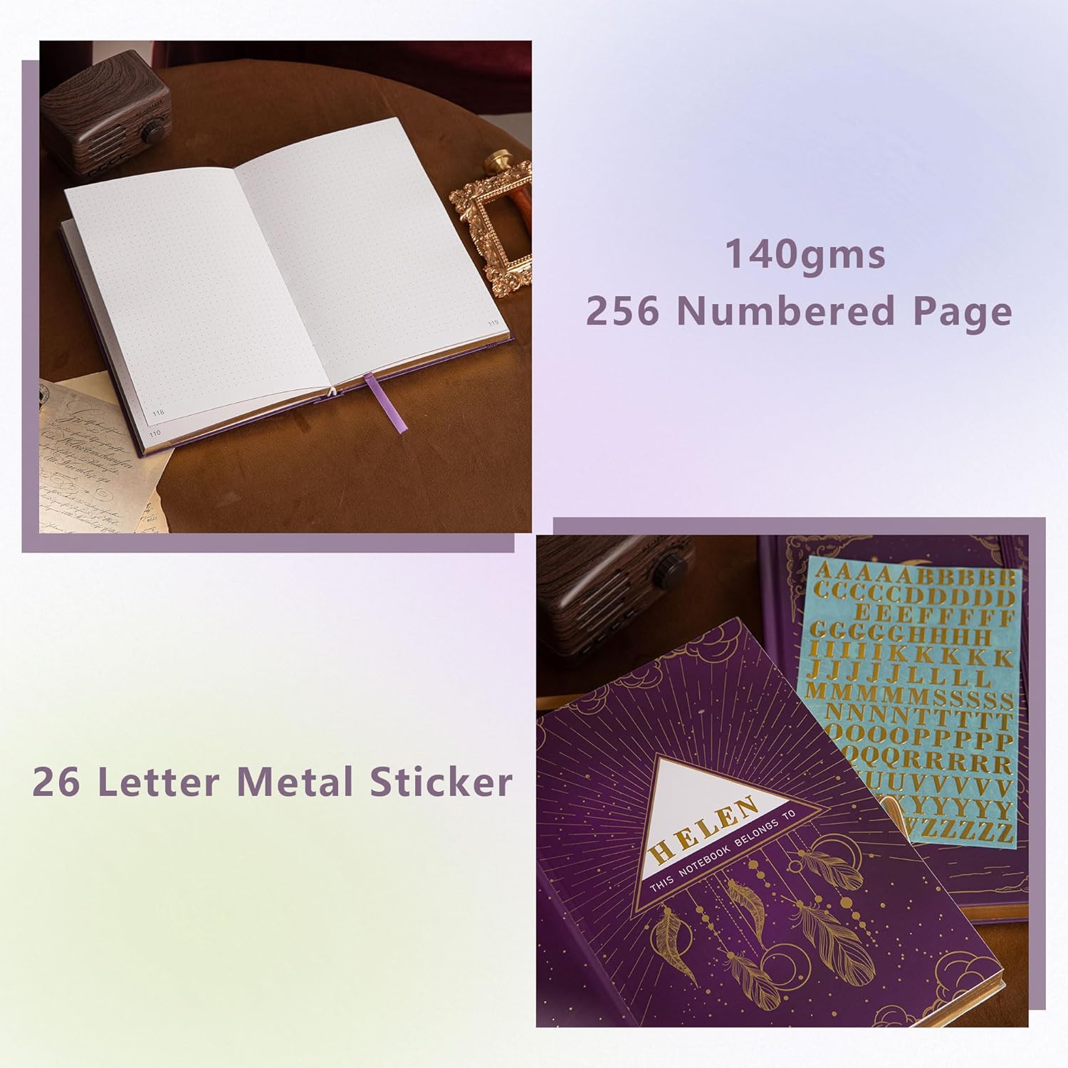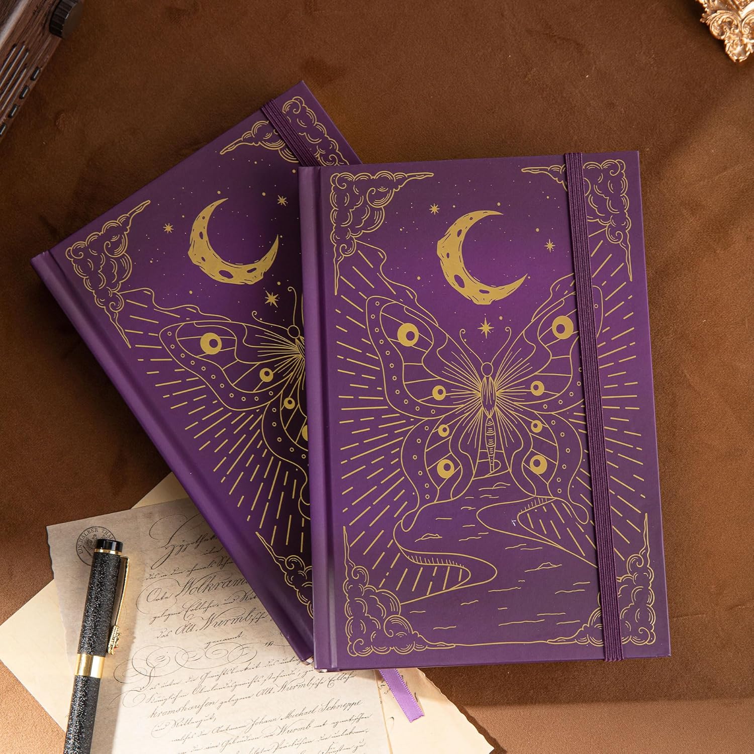 DIARIO PREMIUM DA 140 GMS: Immergiti nel mondo della scrittura con il nostro diario a farfalla con copertina rigida realizzato in carta spessa da 140 g/m². Le pagine punteggiate offrono ampio spazio affinché le tue idee creative possano fluire liberamente. Non preoccuparti, la carta da 140 g è progettata per non perdere, garantendo un'esperienza di scrittura fluida. SCATOLA PER NOME TRIANGOLARE PERSONALIZZATA: Abbraccia un tocco di personalizzazione con il nostro design unico della scatola per nome triangolare. Il diario viene fornito con un set di adesivi in metallo da 26 lettere, per un totale di 130 lettere per scrivere il tuo nome. Incolla il tuo nome sull'apposita casella per rendere questo diario davvero tuo ed evitare che si perda tra le tue cose. BEN NUMERATO E ORGANIZZATO: rimani organizzato senza sforzo con il nostro diario cartaceo numerato da 256. Il taccuino intuitivo è dotato di numeri di pagina, segnalibri a nastro e cinghie elastiche, che consentono di individuare rapidamente note e pensieri importanti. Con 256 pagine, questo taccuino offre ampio spazio per documentare il tuo viaggio tutto l'anno. Squisito design a forma di luna e farfalla: decorato con un incantevole design a forma di luna e farfalla sul davanti e sul retro, il nostro diario con copertina rigida presenta una delicata stampa a caldo. Il taccuino presenta inoltre bordi spruzzati oro sul frontespizio e sulle pagine laterali interne, aggiungendo un tocco di eleganza in più alla tua esperienza di scrittura. REGALO PERFETTO PER GLI AMANTI DEI DIARIO: Formato A5 (21,4 × 14,5 cm), il nostro diario vintage a farfalla è perfetto per gli zaini. Che tu lo regali a qualcuno che ama leggere e prendere appunti o che lo usi per sviluppare la tua abitudine di scrittura quotidiana, questo bellissimo diario sicuramente delizierà e ispirerà. Ideale per prendere appunti in classe, disegnare, scrivere a mano, registrare piccole storie e catturare i tuoi pensieri più preziosi.