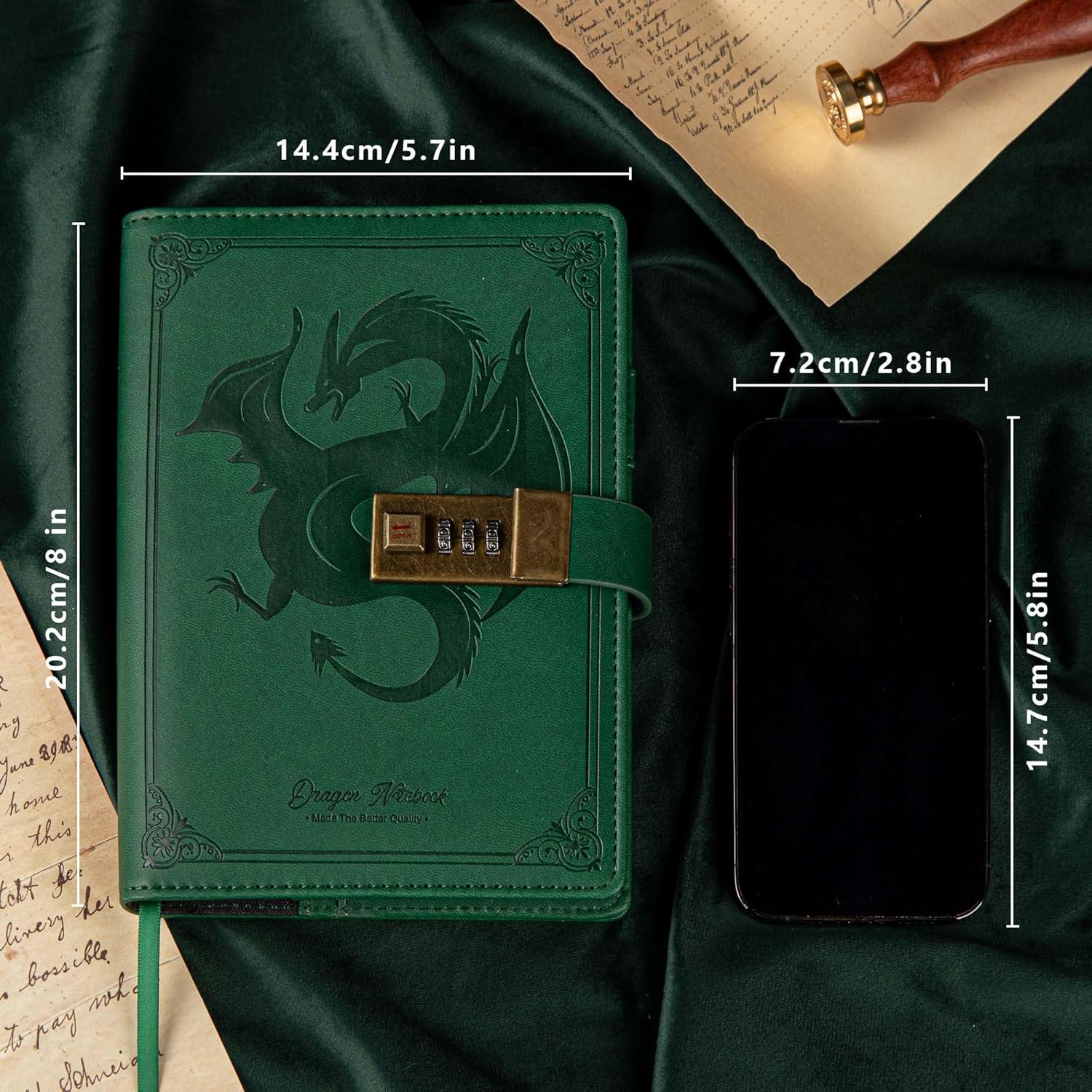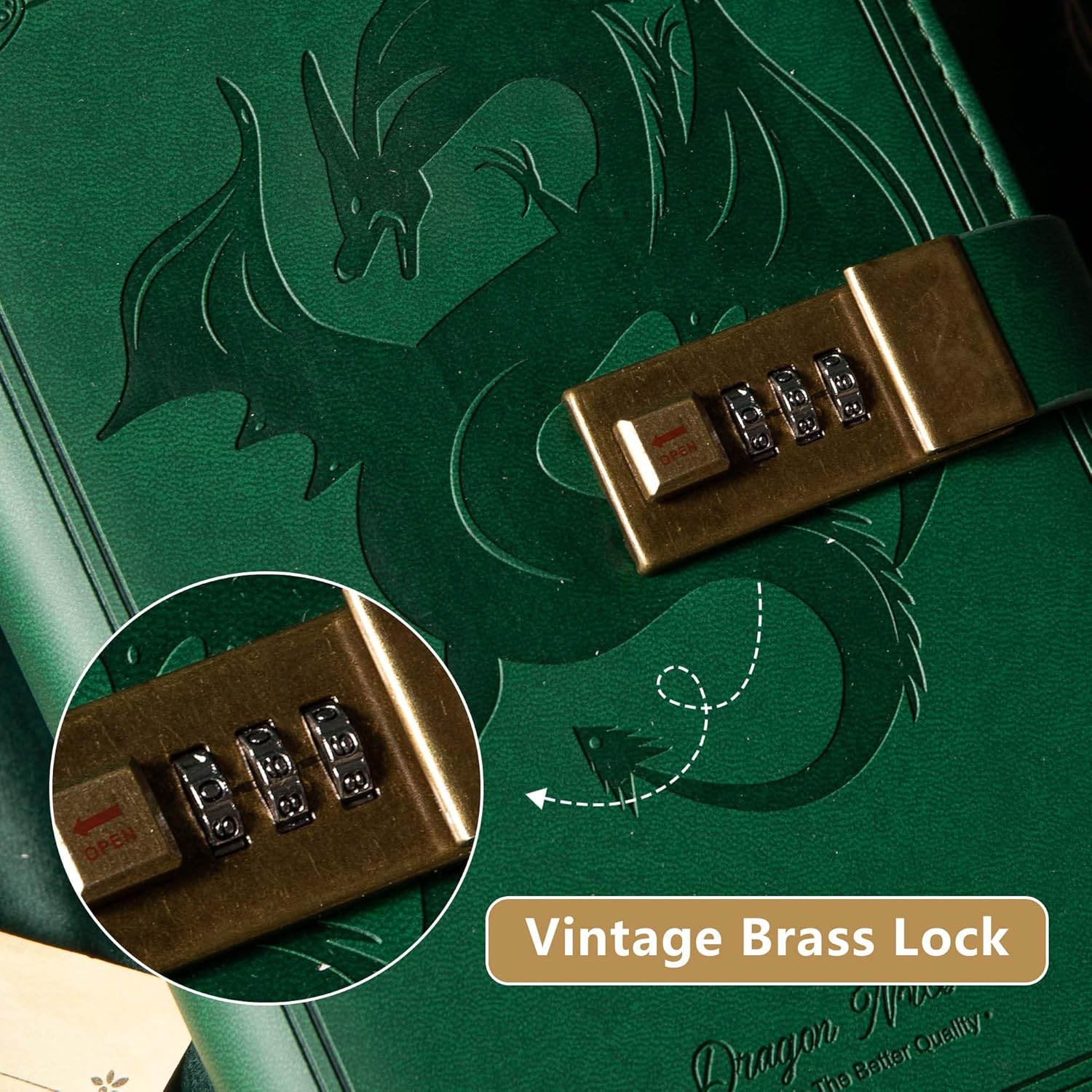 Diario del drago: pelle PU di alta qualità, sensazione lucida nelle mani, motivi tridimensionali del drago in rilievo, migliorano l'aspetto del diario, cuciture pulite per garantire che il diario sia robusto e durevole. Blocco registro: blocco password in metallo antico, una combinazione di tre numeri da 0 a 9, mille combinazioni di password. Mantieni i tuoi segreti e i pensieri più intimi sotto chiave. Taccuino ricaricabile: 112 fogli/224 pagine di carta da lettere da 100 g/m² priva di acidi, protegge gli occhi dai danni, 79 fogli a righe (a righe), 32 fogli di carta bianca (senza righe), nessuna infiltrazione di inchiostro, liscia come la seta, la carta interna può essere facilmente ricaricata, la copertina in pelle può essere riutilizzata. Diario versatile: il design interno di slot per schede, slot per foto, portapenne, corda per segnare per soddisfare le tue diverse esigenze, eccellente taccuino da viaggio, diario aziendale/dirigente/d'ufficio, quaderno scolastico, diario di ricette, ecc. Regalo ideale: un diario è il tuo compagno ideale perché ti consente di esprimere i tuoi pensieri e sentimenti, fissare obiettivi e compiti mantenendo i tuoi pensieri privati. Perfetto per regali di Natale, Capodanno o compleanno. Ogni pianificatore viene fornito con le istruzioni. Se non apri o dimentichi il passcode, non esitare a contattarci, possiamo aiutarti a risolvere il problema.