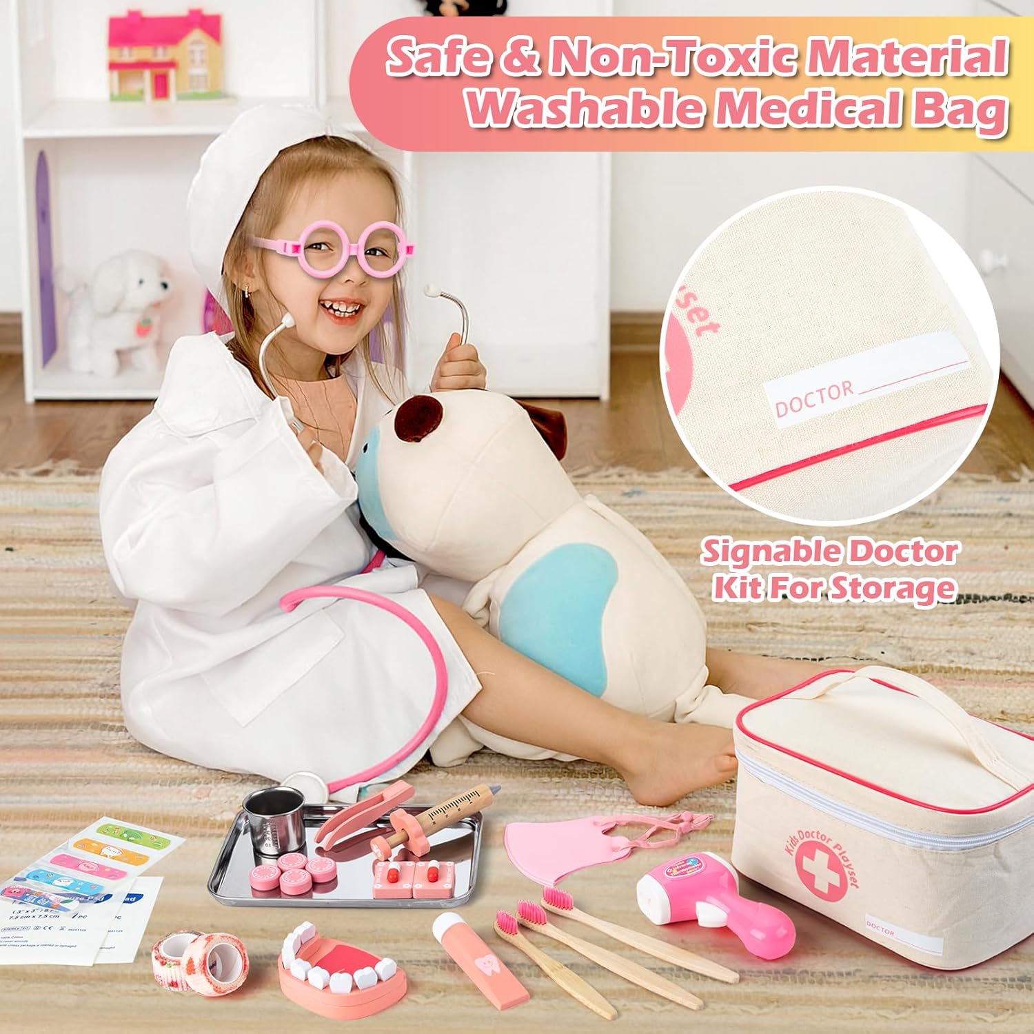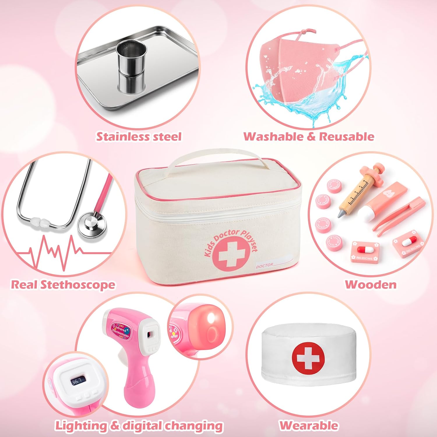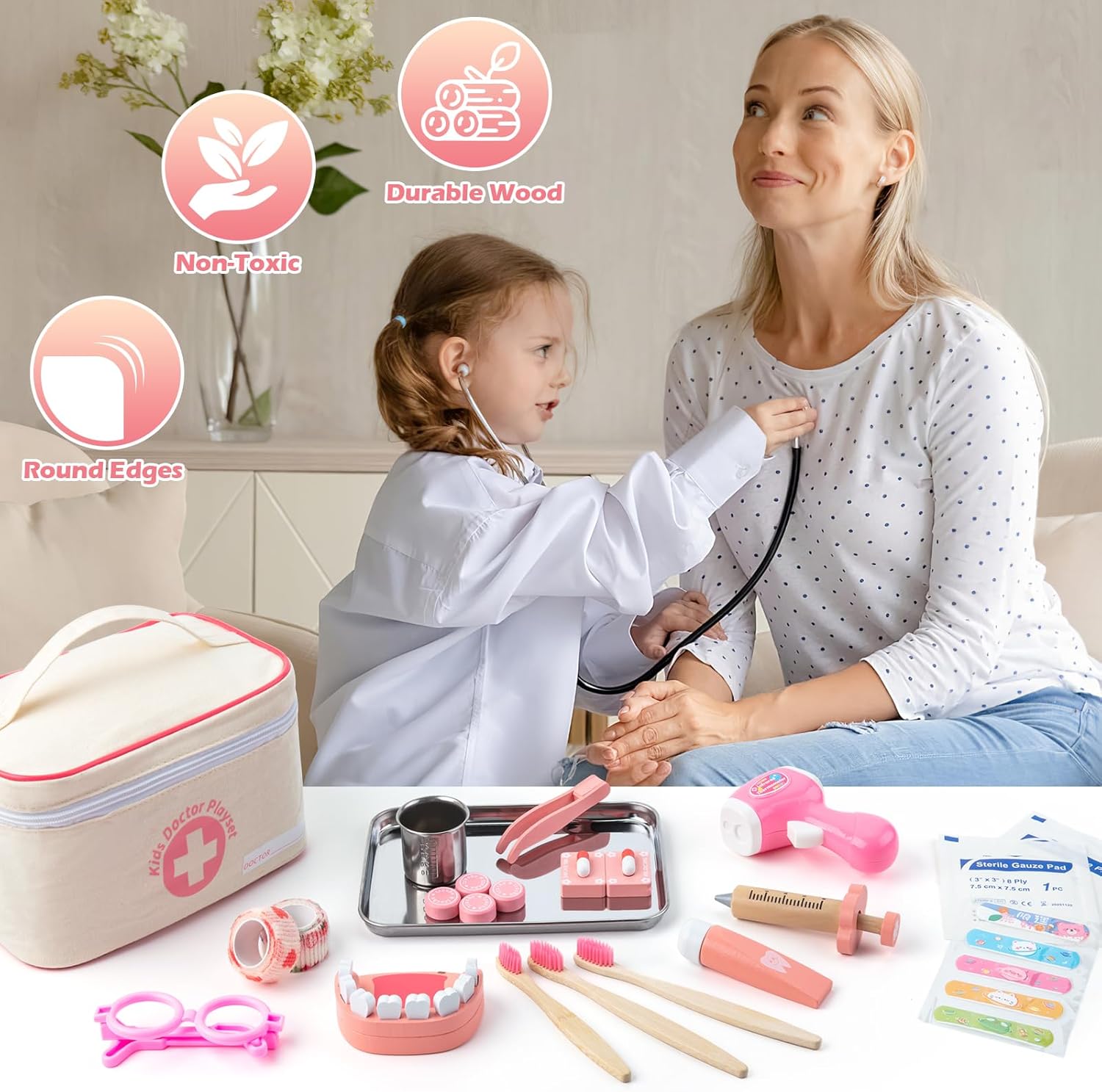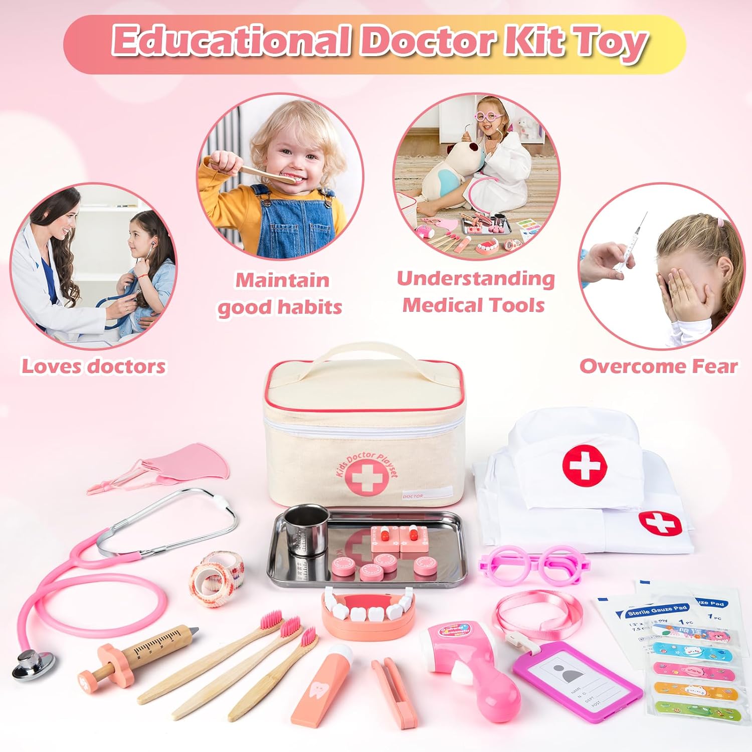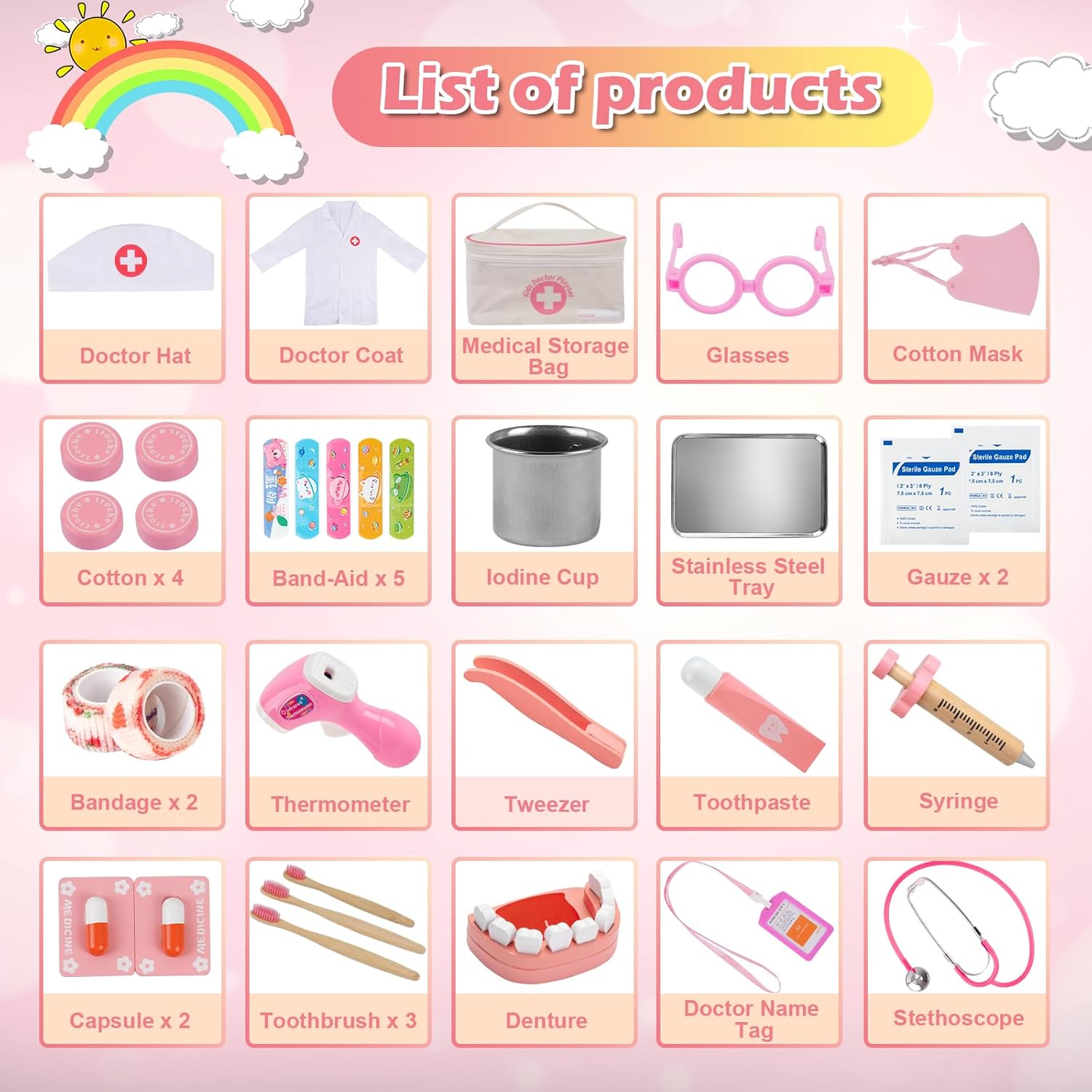 Design robusto e adatto ai bambini - la valigetta giocattolo Tigerhu è realizzata a partire da un materiale ABS sicuro e atossico, rispettoso dell'ambiente e sostenibile. Il cappotto e il cappello unici in puro cotone, più morbido per la pelle e molto morbido, comodo da indossare per i bambini. Godetevi il piacere del gioco, la mamma è più sicura. Vassoio in acciaio inox– La progettazione dei bordi ricci non fa male alle mani del medico e questo simula bene la scena della sala operatoria. I nostri giocattoli ispirano un mondo di scoperte e di apprendimento pratico. Valigetta medico con strumento medico – Il kit di medico comprende un assortimento di 32 strumenti e gadget medici che bastano ai vostri bambini per imparare conoscenze mediche preliminari come l'iniezione, prendere la temperatura ecc. Facile da riporre e trasportare - i 32 pezzi possono essere riposti in un kit di strumenti medici, che può aiutare i bambini a sviluppare la abitudine di imballare i giocattoli e mantenere la casa ben ordinata e priva di detriti. Questo incoraggia anche il bambino a tenere i giocattoli del medico organizzati e lontano dalla televisione. Grande idea regalo - il kit del medico è adatto per una festa, un gioco di simulazione, un gioco di ruolo, una sala di classe, dei regali di giocattoli per le vacanze, dei regali di Natale ecc. Il set di giocattoli Tigerhu dottor permetterà ai vostri bambini di diventare un medico.