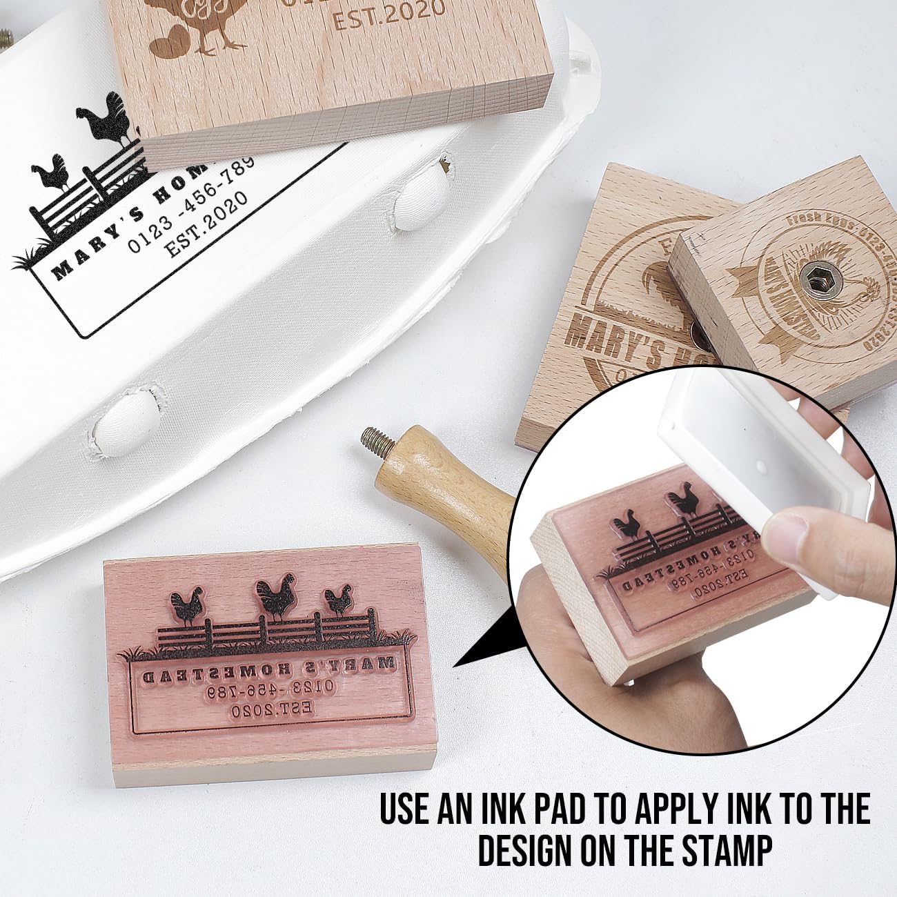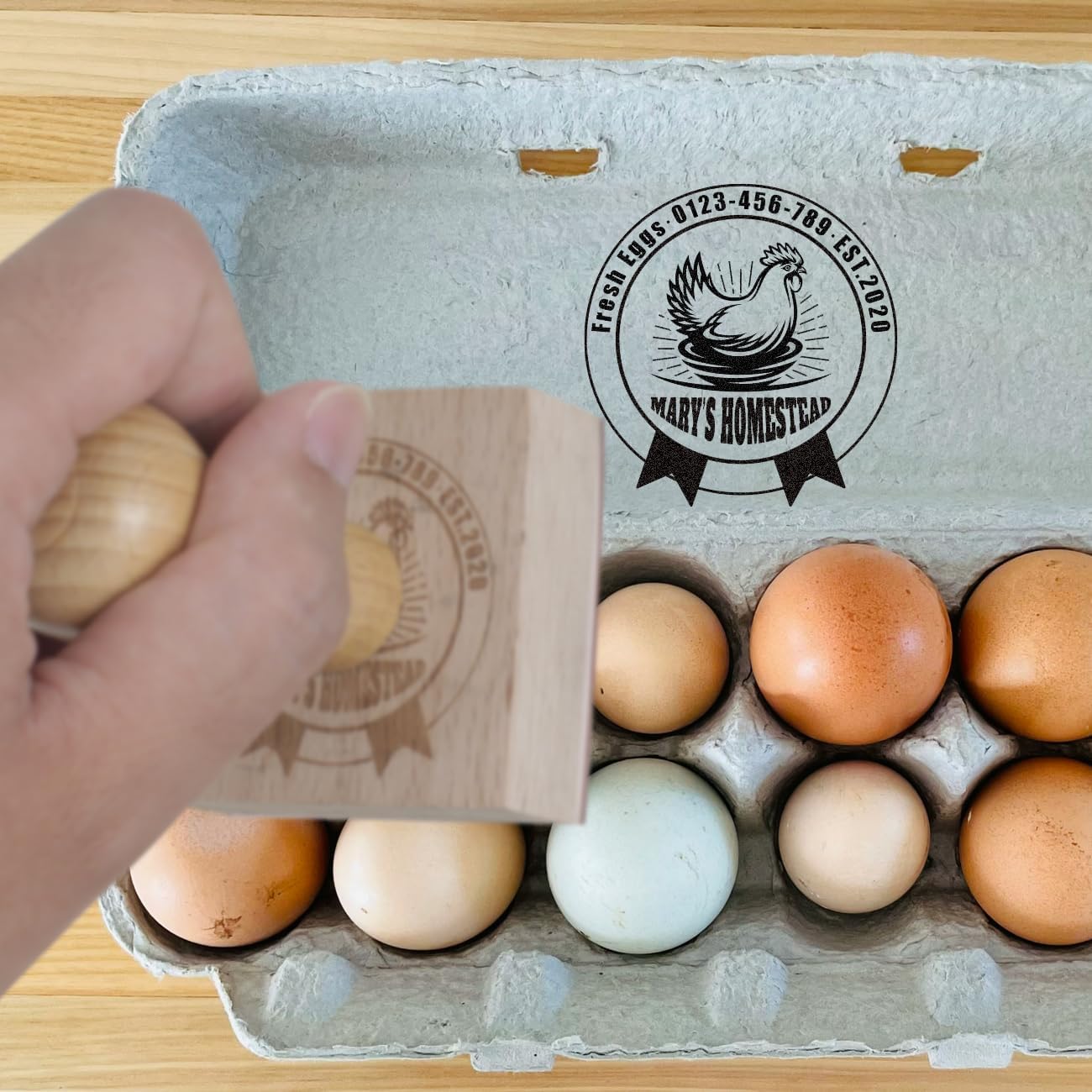Branding fattoria senza sforzo in pochi minuti: personalizza facilmente i cartoni delle uova utilizzando i nostri modelli a tema fattoria: aggiungi semplicemente il nome della tua fattoria, il logo o le informazioni di contatto. Non sono richieste competenze progettualiCrea uno splendido timbro professionale che aggiunge fascino rustico e riconoscimento immediato del marchio a ogni scatola Soluzione per l'imballaggio agricolo che fa risparmiare tempo: Semplifica il tuo flusso di lavoro con il nostro timbro personalizzato per cartoni: segna più cartoni di uova in pochi secondi, sostituendo la noiosa etichettatura manuale o l'applicazione di adesivi. Risparmia tempo e fatica aggiungendo un tocco professionale e coeso del marchio che fa risaltare la tua fattoria Artigianato di alta qualità per impressioni durature: i nostri timbri a forma di pollo personalizzati offrono impronte nitide e chiare ogni volta. Le caratteristiche includono un manico in legno resistente per una presa comoda, gomma incisa al laser per immagini nitide, incisione superiore facile da identificare Timbro multiuso Farm Fresh: ideale per cartoni di uova, carta, adesivi, cartone e altro ancora, questo timbro versatile si adatta a proprietari di polli nel cortile, fattorie e piccole fattorie. Perfetto come regalo unico anche per i proprietari di pollai Dimensioni e manutenzione: misurare i cartoni per una corretta vestibilità, timbrare su superfici piane per chiarezza e pulire con un panno umido dopo l'uso per mantenere la qualità del timbro delle uova