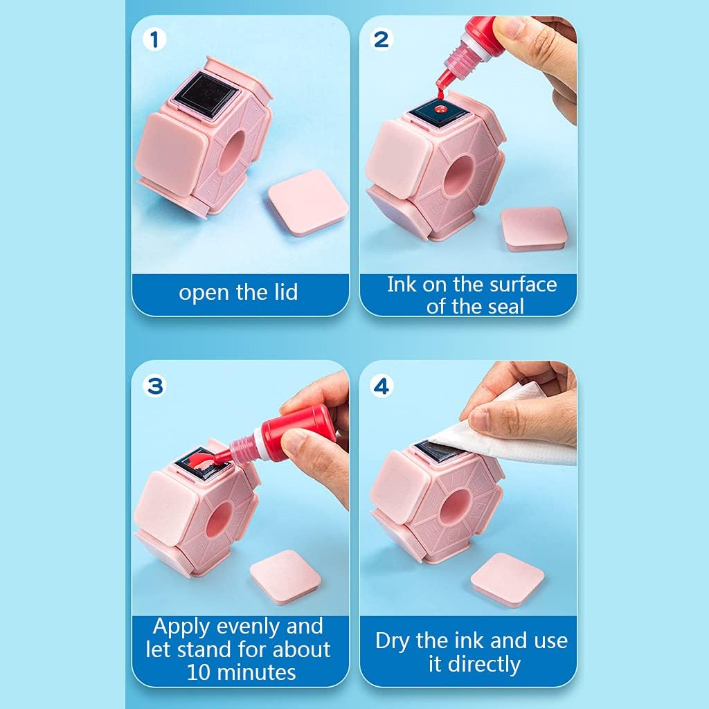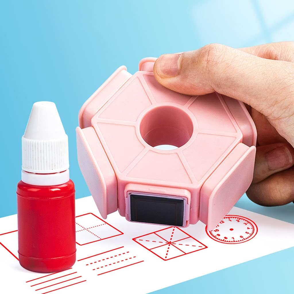 Sigillo di apprendimento portatile su 6 lati, 3 colori tenui, 6 modelli squisiti, compatti e pratici, per soddisfare le tue esigenze. Tecnologia fotosensibile, standard attento. Le linee orizzontali non sono spostate e i numeri dell'orologio sono chiari. La marcatura non penetra. Viene stampato immediatamente dopo l'apertura e non viene invertito. È necessario regolare la posizione e la marcatura deve corrispondere a quella della marcatura da attorcigliare. Solubile in acqua, facile da pulire, il posto sbagliato può essere corretto, può essere lavato. Apri il coperchio, puoi aggiungerlo al tampone, applicarlo uniformemente e lasciarlo riposare per circa 10 minuti, asciugare il tampone, quindi usarlo direttamente. Può essere riutilizzato per risparmiare denaro.