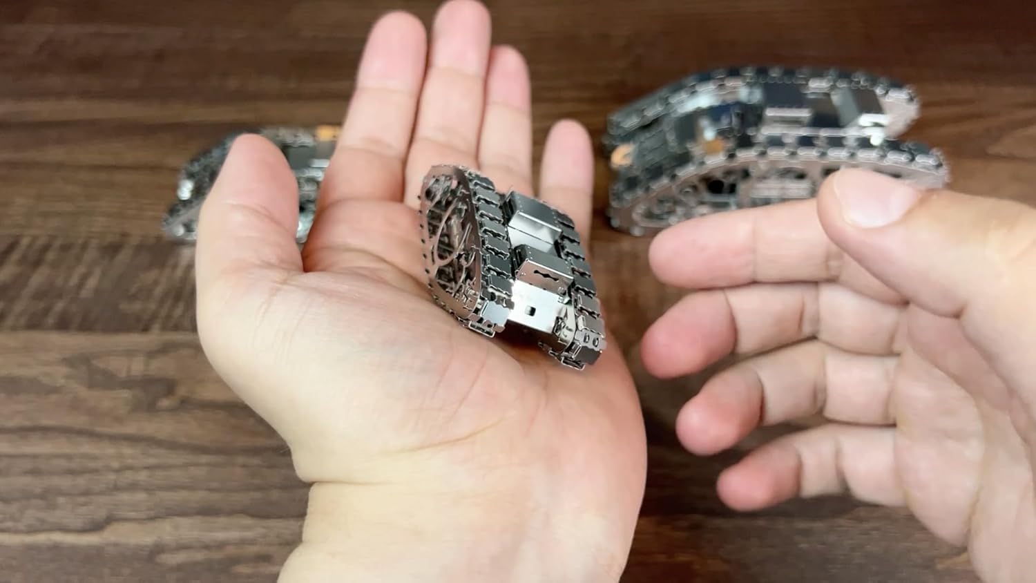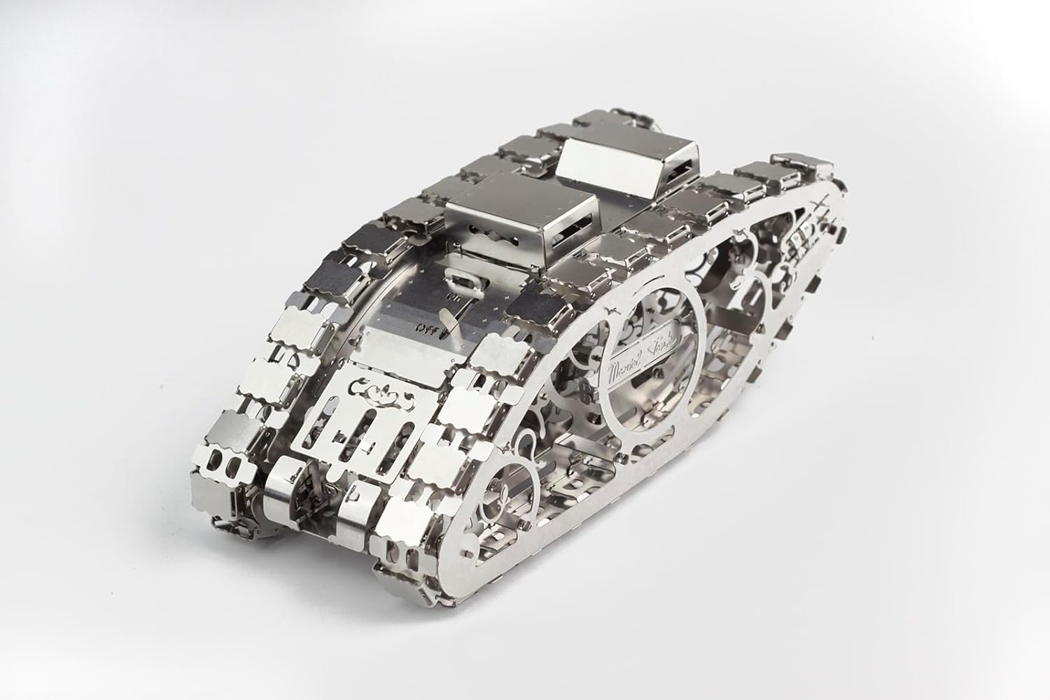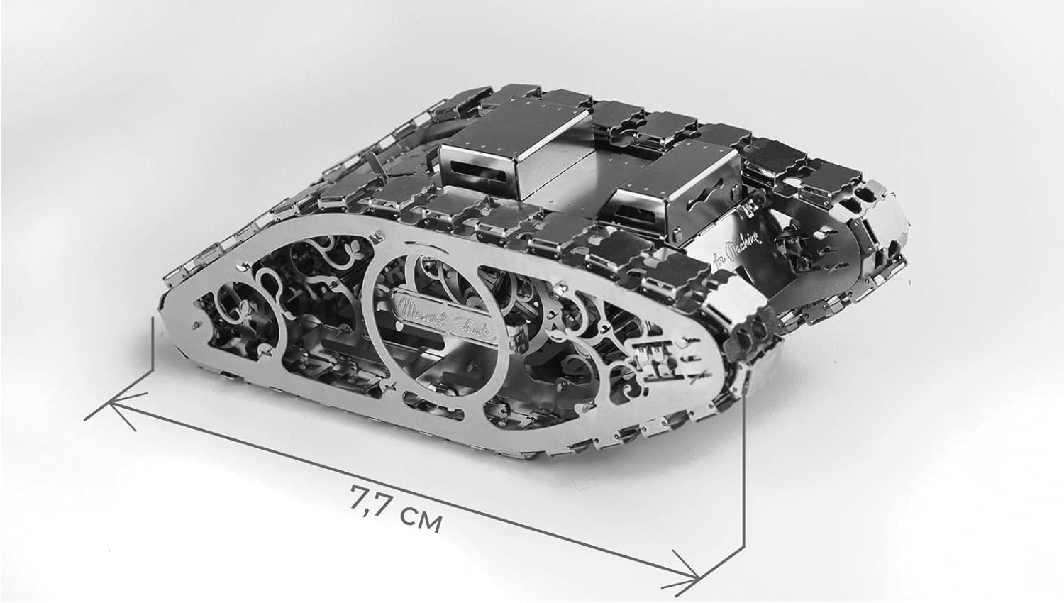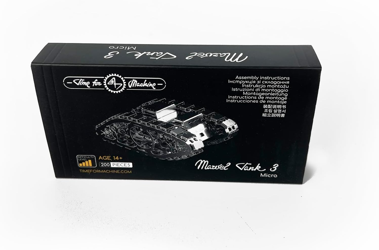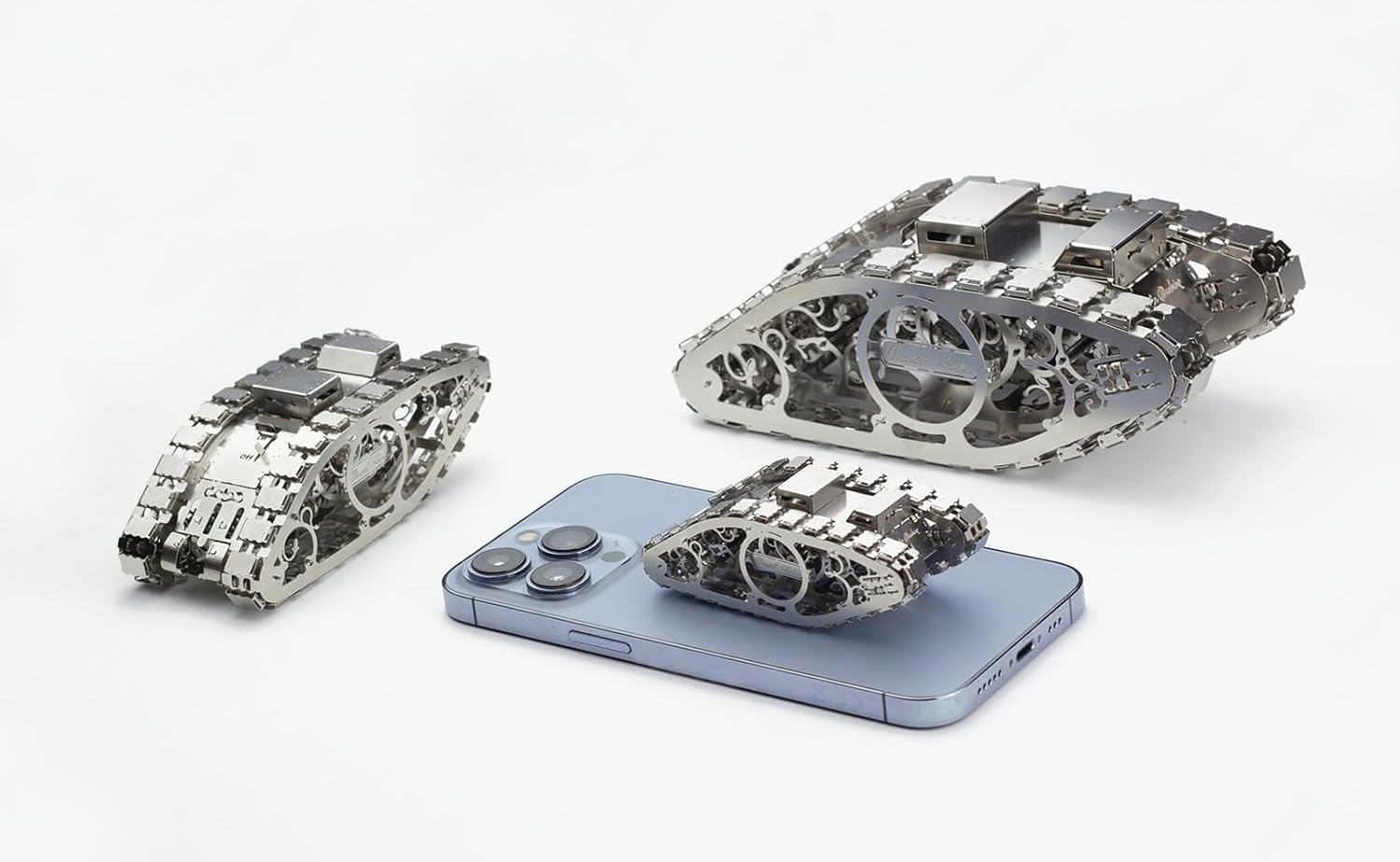 Il modello rinnovato porta il nome Marvel Tank 3 e viene presentato in tre dimensioni. Il nuovo carro armato Marvel è molto più facile da montare e funziona in modo affidabile. Inoltre, questa macchina da combattimento ora ha un cuore affascinante che brilla sul parabrezza. Le versioni differiscono solo per la dimensione e lo spessore delle parti. Assemblare la versione mini è davvero divertente. Marvel Tank Mini è lungo 100 mm, il che lo rende due terzi più corto rispetto alla versione standard, che è lunga 153 mm. E la versione micro è semplicemente fantastica. Questo è il nostro modello più piccolo completamente meccanico. Nonostante le sue dimensioni, è abbastanza facile da montare. I nostri designer hanno voluto rendere questo modello non solo brutale, ma anche bello, in modo che ora assomigli a un cavaliere dall'armatura scintillante. Questo modello ha tutto: bella forma e contenuto minaccioso. Se il suo aspetto potesse uccidere, tutti i suoi nemici a quest'ora sarebbero morti. Questo modello è il nostro messaggio d'amore all'inizio del XX secolo. Se ami la storia tanto quanto noi, unisciti al lato oscuro e incontra questo eroe militare.