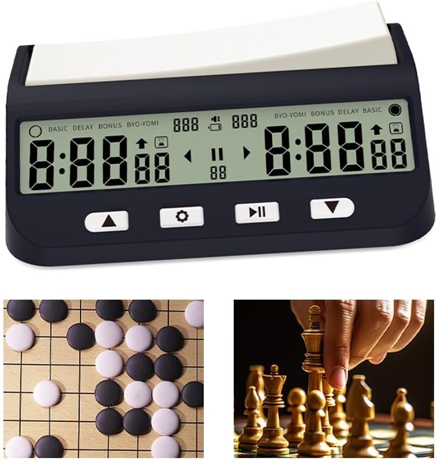 [ALTAMENTE MATERIALE] Realizzato in plastica robusta, questo timer digitale per scacchi garantisce prestazioni affidabili e longevità in ogni gioco che giochi. [Opzioni di temporizzazione multiple] Offre una gamma di modalità di temporizzazione come BASIC, DELAY, BONUS e BYO YOMI per soddisfare diversi stili e strategie di gioco. [SCHERMO DI FACILE DA LEGGERE] L'ampio display trasparente garantisce visibilità da lontano, mentre i pulsanti grandi migliorano l'usabilità per una rapida regolazione del tempo durante il gioco competitivo. [Design a risparmio batteria] Dotato di un innovativo meccanismo di risparmio energetico che conserva la carica della batteria; funziona con 2 batterie AAA (non incluse) per prestazioni sostenute. [Compagno di gioco] Ideale per giocatori di scacchi cinesi, scacchi tradizionali, andare e altro ancora; migliora l'esperienza di gioco attraverso vari giochi da tavolo.