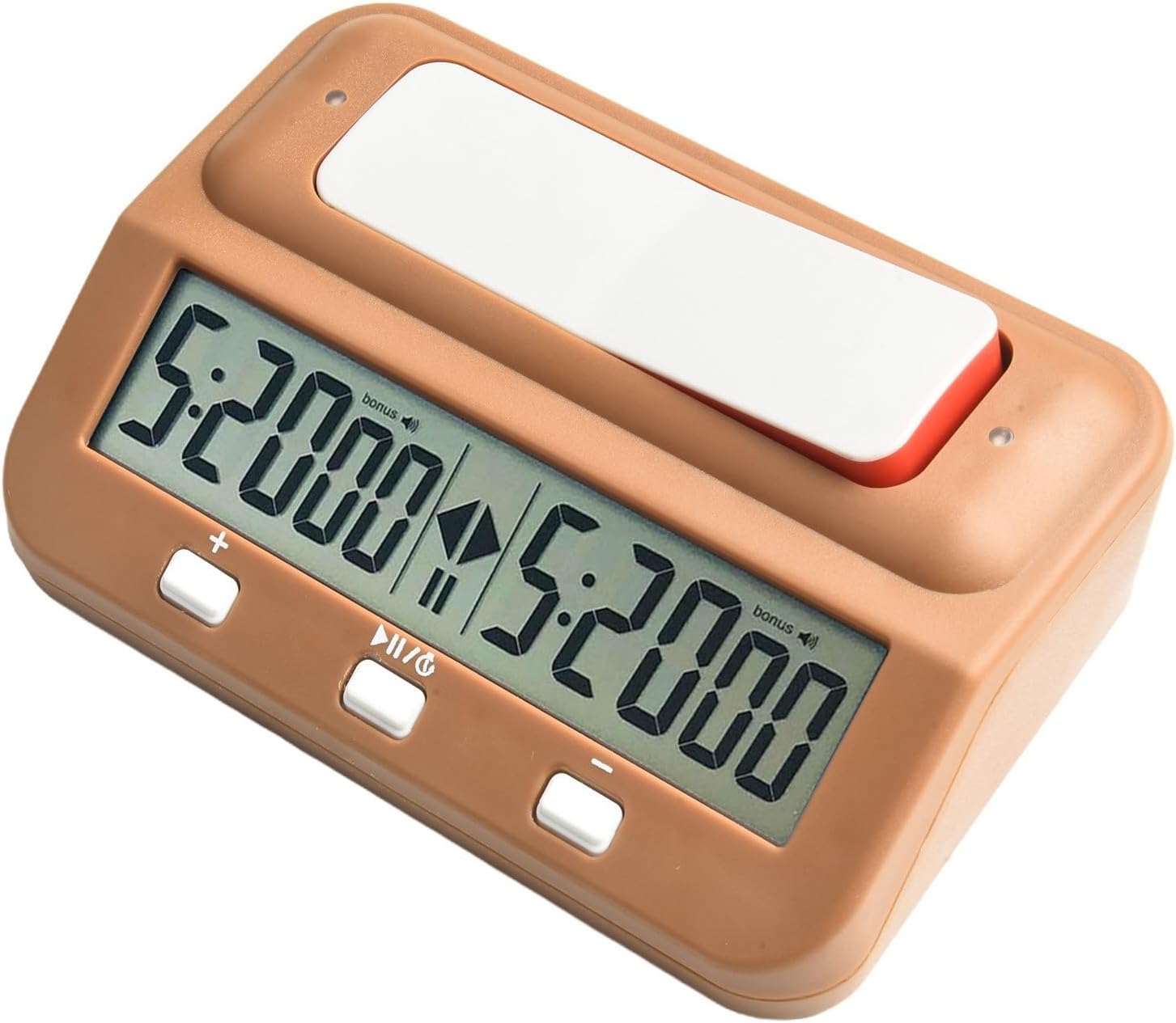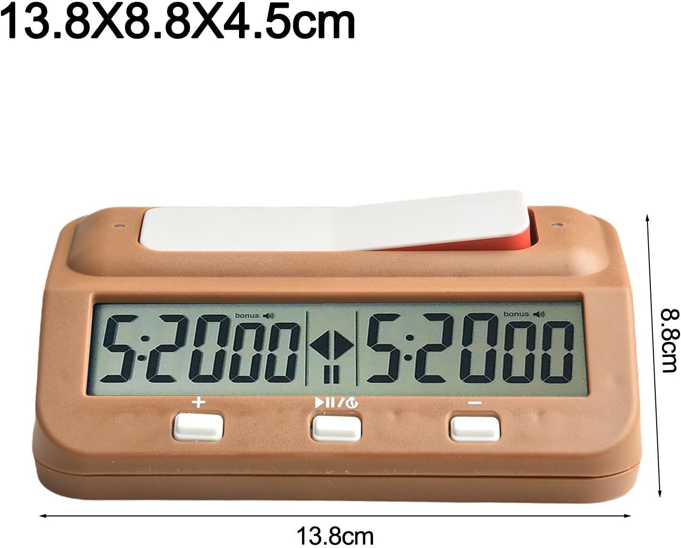 Timer digitale a scacchi multiuso, cronometro professionale per scacchi 【E funzionale】 Il timer a scacchi dispone di un guscio in plastica, durata e funzionalità. Grande pulsante flessibile: il timer è dotato di grandi pulsanti flessibili che offrono una migliore sensazione di pressione. Funzioni: applicabile a vari giochi di scacchi, tra cui scacchi cinesi, scacchi, Go e altro ancora. Molteplici modalità di temporizzazione: con timing positivo, conto alla rovescia, funzione ricompensa, funzione ritardo e funzione di allarme. 【Funzioni pratiche】Funzione memoria, luce di richiesta, promemoria della capacità della batteria e funzione pedometro per gare di scacchi regolari. Specifiche del prodotto: materiale: plastica + metallo; dimensioni: circa 8 x 8,8 x 4,5 cm. Colore: nero, blu, marrone. Peso: circa 160 g. Contenuto della confezione: 1 timer digitale per scacchi