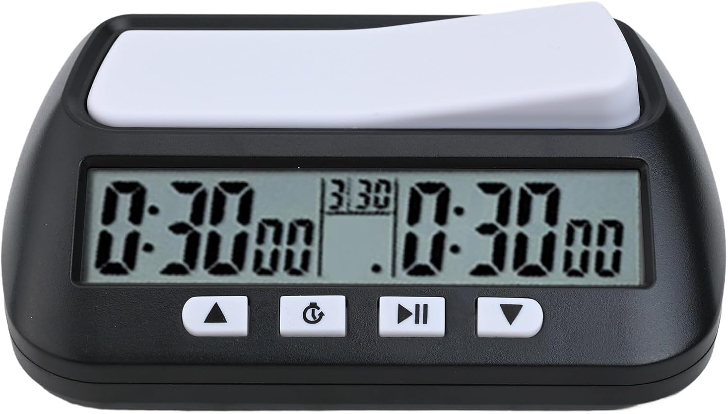 Timer per scacchi: questo orologio multifunzione 3 in 1 funziona come un timer digitale, rendendolo adatto per varie partite di scacchi e tornei. Esperienza utente migliorata: dotato di pulsanti grandi e flessibili, questo timer per scacchi offre una migliore sensazione di pressione e una migliore usabilità. Design portatile: realizzato in materiale plastico ABS, questo orologio a scacchi è progettato per resistere a un uso rigoroso. Le sue dimensioni portatili lo rendono comodo da trasportare e utilizzare ovunque. Modalità bonus e ritardo: con modalità bonus e ritardo, questo timer di scacchi consente ai giocatori di impostare il tempo base e il tempo bonus, migliorando l'eccitazione e la competitività del gioco. Funzione a risparmio energetico: il design a risparmio energetico di questo orologio a scacchi assicura che massimizzi la durata della batteria, utilizzando solo 2 batterie AAA per un uso duraturo.