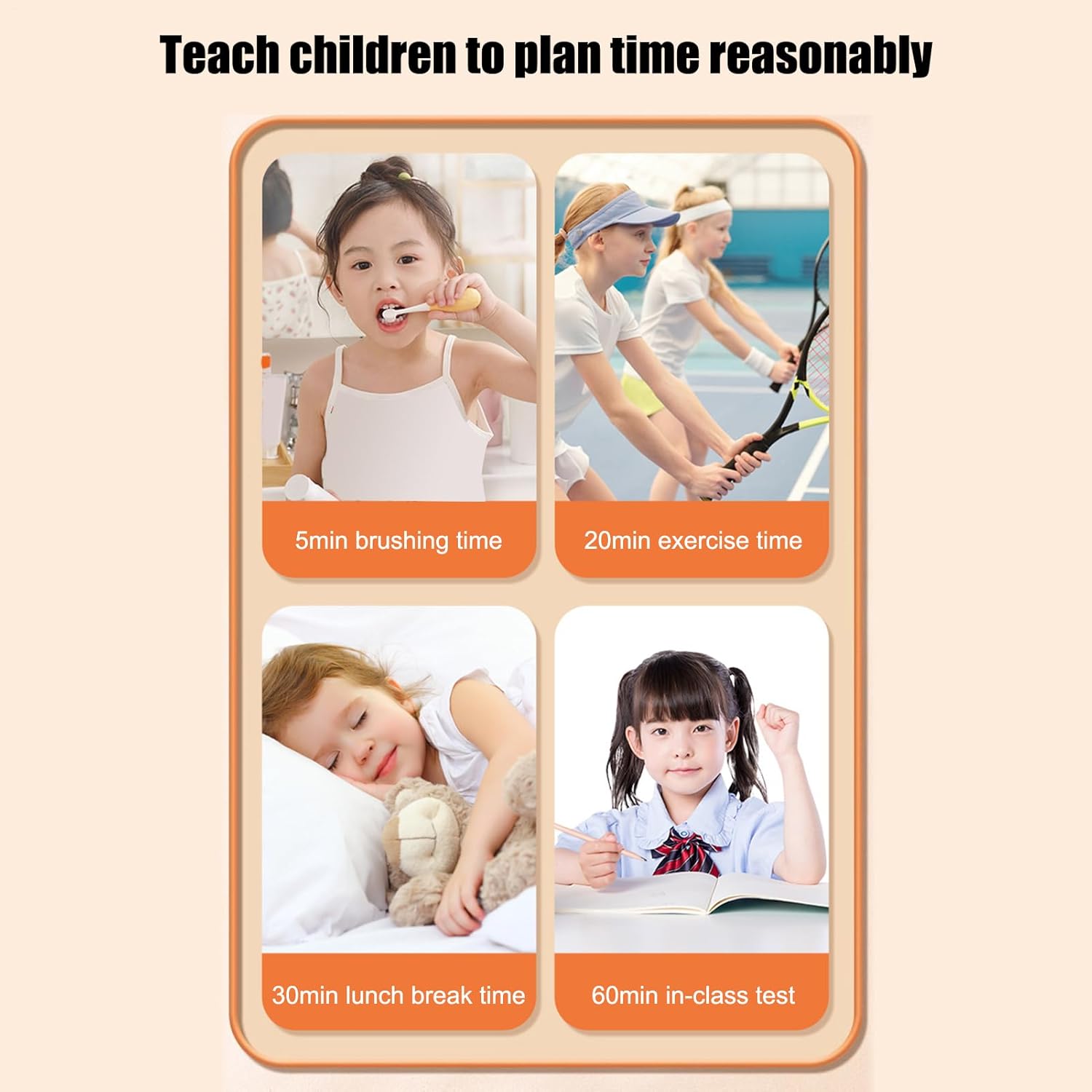 Sistema basato sui colori: il semplice sistema di codifica dei colori su un display quadrato supporta la gestione giocosa del tempo durante la cottura, i compiti o i giochi di apprendimento attraverso cambiamenti graduali di colore. Wide range of applications: Enables seamless transitions between baking, homework and training thanks to the practical click mode change. La doppia modalità integrata semplifica i processi di cottura e le attività di apprendimento attraverso opzioni di impostazione basate sulle esigenze per le diverse esigenze quotidiane Registrazione discreta del tempo: la tecnologia di smorzamento del suono appositamente sviluppata consente un funzionamento quasi silenzioso, particolarmente adatto per sessioni terapeutiche o ambienti di lavoro ad alta concentrazione con elevati standard di rumore Utile pedagogicamente: apprendimento giocoso della gestione del tempo attraverso display visivo e controlli tattili - sviluppato appositamente per un uso a misura di bambino con uso ricorrente durante il giorno Ottimizzato per lo spazio: progettato appositamente per spazi ristretti - richiede solo 15x15 cm di ingombro. The traffic light-like color coding is easily visible from a distance of 3 meters.