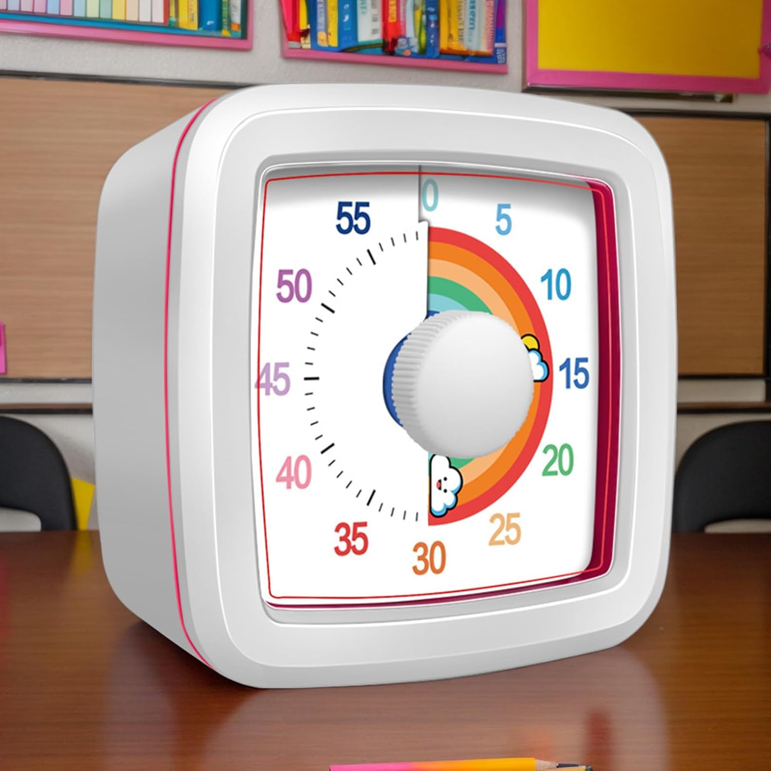 Imparare attraverso la visibilità: con il suo vibrante anello di avanzamento e il display digitale intuitivo, questo timer visivo evidenzia efficacemente il passare del tempo. Facilita l'istruzione indipendente, migliora la capacità di concentrazione sui compiti e rafforza la comprensione pratica del tempo. Gestione immediata: meccanismo ingegnoso con rotella touch e pulsanti con simboli per un controllo intuitivo dello stato (on/off): grazie alla sua semplicità non è necessaria alcuna assistenza regolare da parte dei genitori. Adatto per: Progettato con adorabili personaggi animali per suscitare l'interesse delle persone, incoraggiare la loro partecipazione attiva e ispirare la comprensione dei concetti di gestione del tempo Compagno di apprendimento silenzioso: Elimina completamente il rumore udibile grazie al meccanismo a 0 decibel, adatto per attività di apprendimento che richiedono la massima concentrazione per una migliore attenzione del bambino Versatilità: Ideale per i compiti e la lettura con conto alla rovescia visivo e avvisi acustici motivanti. Rafforza la gestione del tempo e rende i giochi più strutturati con segnali divertenti.