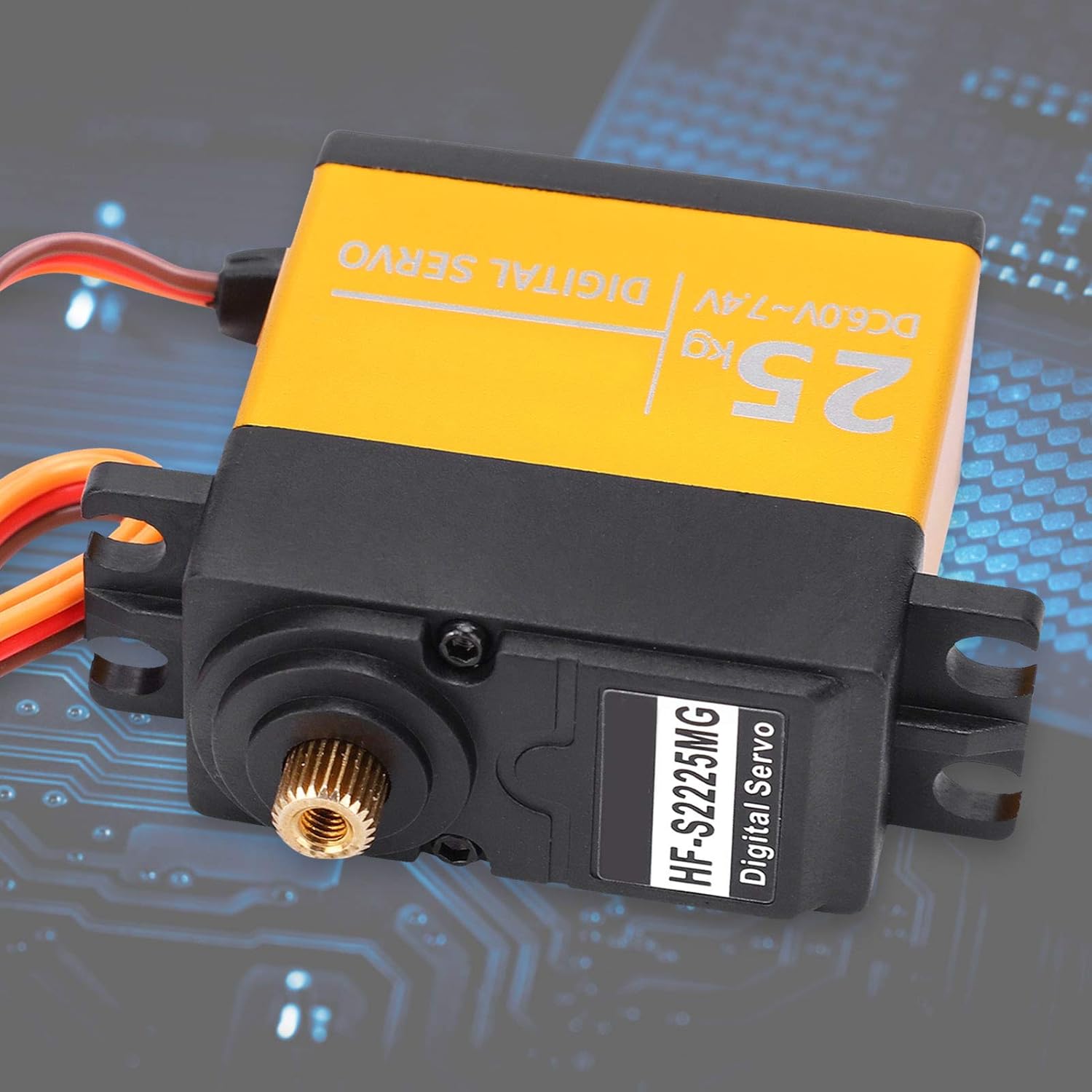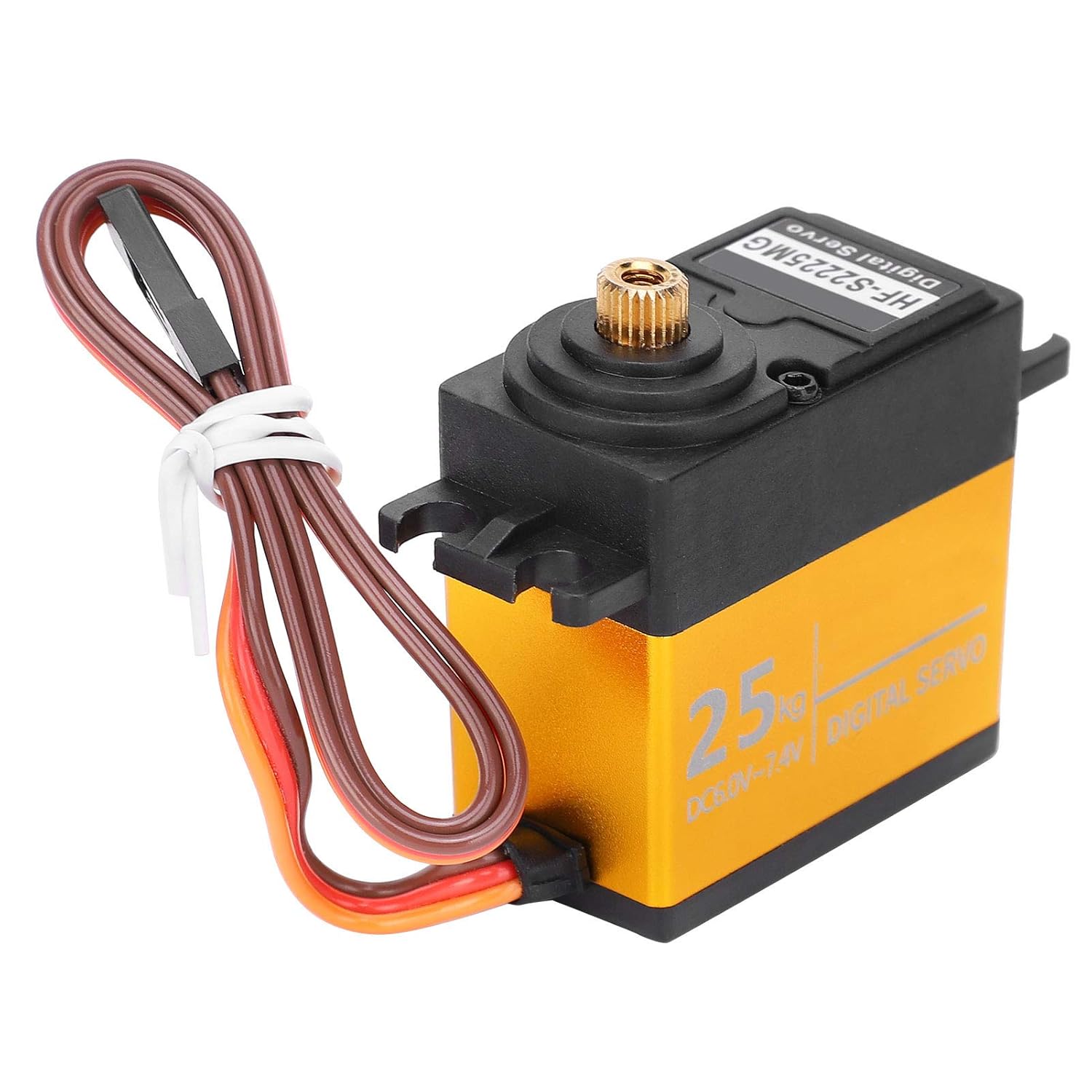 【Resistenza e Precisione】--- Questo servo metallico CNC da 25kg offre coppia elevata fino a 25kg/cm (7.4V) con movimento ultra-rapido (0.13s/60°). Gli ingranaggi in metallo temprato garantiscono precisione millimetrica e lunga durata per operazioni intensive. Design impermeabile ideale per modelli radiocomandati esposti ad ambienti umidi o polverosi. 【Design Ottimizzato】--- Scocca centrale in alluminio CNC migliora la dissipazione termica durante l'uso prolungato. Peso contenuto (87g) e dimensioni compatte lo rendono facilmente integrabile in auto/barche RC 1/8. La finitura dorata previene l'ossidazione mantenendo prestazioni stabili. 【Multifunzionalità】--- Compatibile con robotica, bracci meccanici e giocattoli RC grazie al controllo digitale ad alta frequenza. Regolazione precisa dell'angolo di sterzata (60° step) attraverso segnali PWM. Alimentazione 4.8-6.8V per flessibilità di installazione su diversi modelli. 【Facile Installazione】--- Kit completo con leva di servizio, viti e accessori per montaggio immediato. Interfaccia standardizzata si adatta alla maggior parte dei ricevitori 2.4GHz. La struttura modulare semplifica la manutenzione e sostituzione componenti. 【Sicurezza Garantita】--- Certificato CE/RoHS con protezione anti-cortocircuito integrata. Testato per 10,000 cicli operativi a pieno carico. Adatto a principianti ed esperti nel modellismo dinamico, garantendo risposta istantanea anche su terreni accidentati.