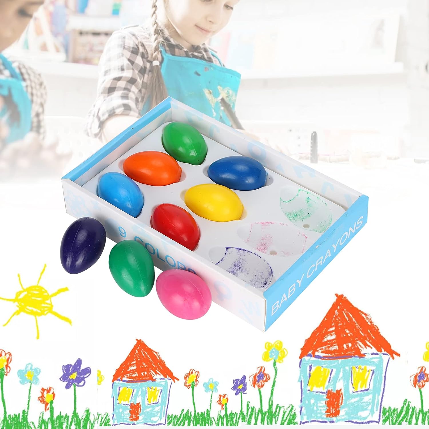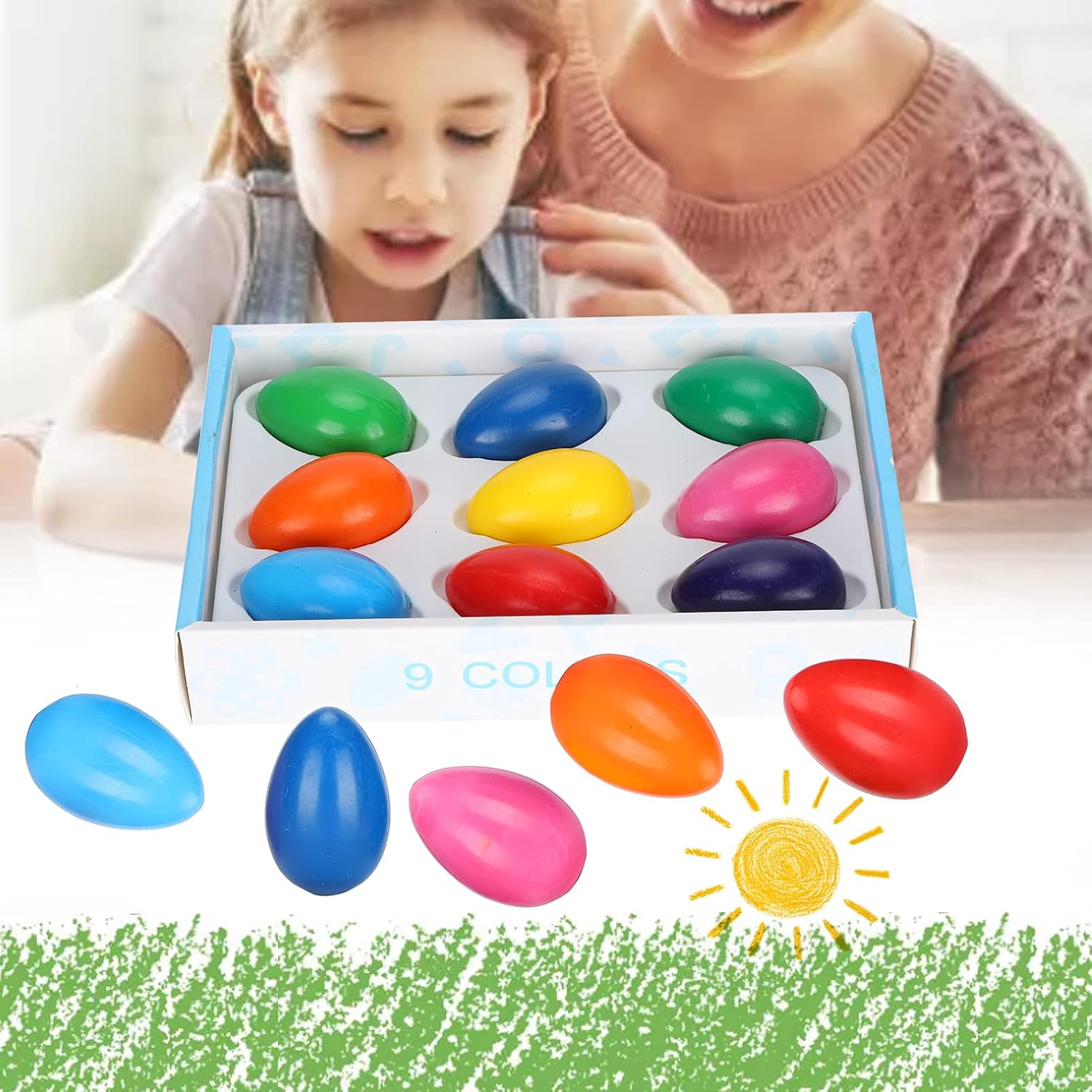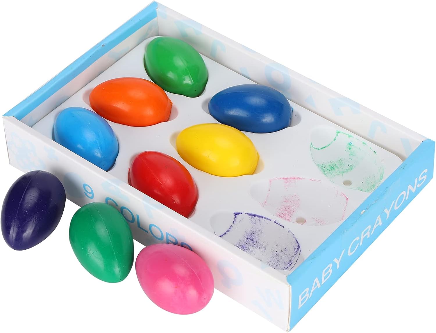 Design a forma di per mani piccole: questi pastelli a forma di (9 pezzi/scatola, per bambini di età superiore a 3 anni) presentano una dimensione carina a forma di . Sono progettati appositamente per le piccole mani dei bambini, facilitando la presa e il controllo dei più piccoli mentre dipingono, riducendo l'affaticamento della mano durante il gioco creativo. 9 colori vivaci per stimolare la creatività: il set comprende 9 colori vivaci e accattivanti.È ideale per aiutare i bambini a esplorare diverse tonalità, sviluppare capacità di riconoscimento dei colori e liberare la propria creatività attraverso la pittura e i graffiti, per progetti artistici a casa o a scuola. Lavabili e sicuri per i bambini: questi pastelli sono lavabili;eventuali segni su mani, vestiti o superfici possono essere facilmente puliti con acqua e sapone.Le dita non rimarranno macchiate, mantenendo i bambini puliti e i genitori preoccupati: sicuri per l'uso quotidiano da parte dei bambini piccoli. Vassoio incluso per riporlo facilmente: il set viene fornito con un vassoio per riporre tutti i 9 pastelli. Mantiene i pastelli organizzati, prevenendone la perdita o lo smarrimento quando non vengono utilizzati. Inoltre, rende facile per i bambini trasportare il set agli appuntamenti di gioco o alle lezioni d'arte. Versatile per pittura e graffiti: adatto a varie attività creative come pittura, disegno e graffiti.Funziona su carta, libri da colorare e altre superfici adatte ai bambini, offrendo ore di divertimento e aiutando i bambini a sviluppare capacità motorie complesse, ottimo per i bambini di età superiore a 3 anni.