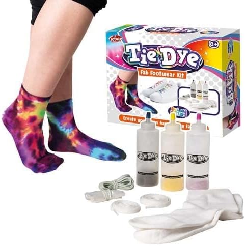 Set di attività tie dye per creare calzature funky e alla moda Include tutto il necessario per legare un paio di calzini e un set di lacci per scarpe Istruzioni facili da seguire che consentono a chiunque di completare questo progetto Include 3 flaconi di tintura da 120 ml, fasce elastiche, guanti, paio di calzini e un set di lacci per scarpe Tutti i prodotti TOBAR sono rigorosamente testati e certificati sicuri secondo i più alti standard UE e Regno Unito