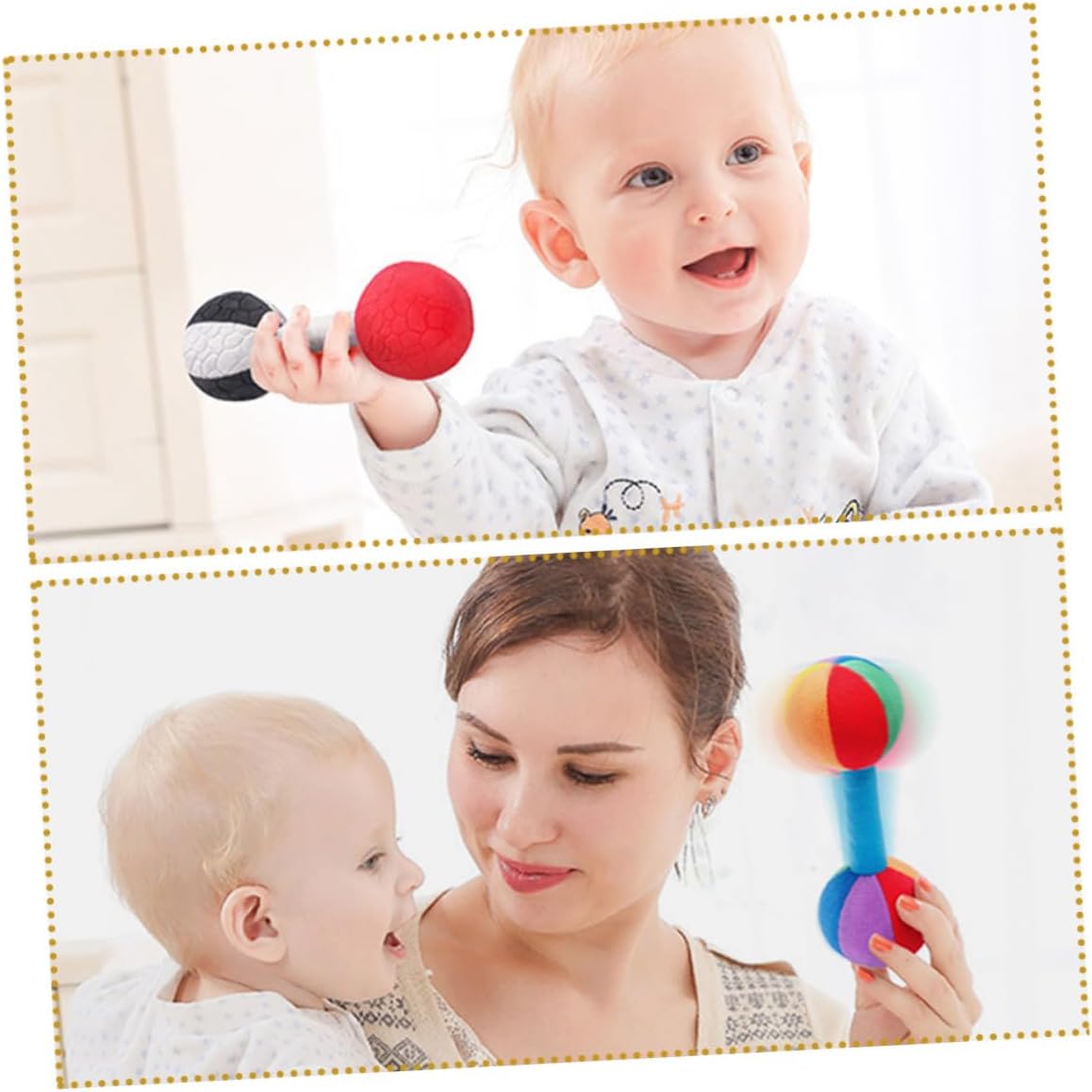 Giocattolo per bambini piccoli: il manico è abbastanza morbido, comodo da impugnare e non danneggia la pelle delicata del bambino, manubrio per bambini versatile: può essere utilizzato come , manubrio e bilanciere per diversi esercizi, manubrio per bambini, rilassante con manubrio Giocattolo morbido per neonati: offre ore di divertimento e intrattenimento per i bambini, mantenendoli impegnati e felici, giocattolo per dormire. Giocattolo da presa per bambini: realizzato in tessuto leggero, con lavorazione squisita, giocattolo per bambini. Giocattolo da presa per bambini: sicuro e comodo da usare, non facile da rompere o deformare, riutilizzabile e può essere utilizzato a lungo, giocattoli per neonati da 3 a 6 mesi