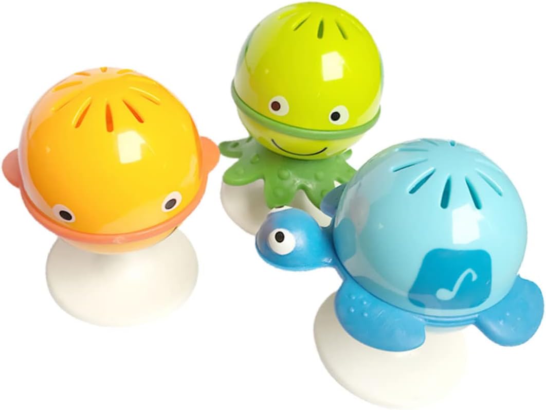 Sonaglio con ventosa: realizzato in materiale abs, sicuro per neonati, bambini piccoli e bambini che giocano, sonaglio con ventose per l'alimentazione dei bambini: perfetto per far giocare i bambini mentre mangiano, molto divertente e interessante, leggero, per bambini per neonati: aiuterà il bambino a coltivare la coordinazione occhio-mano e a sviluppare l'intelligenza dei bambini, lucidatura fine, liscio, musicale per bambini: sviluppa gli organi sensoriali del bambino, ottimo per la comunicazione genitore-figlio, rumoroso. Sonaglio della serie ocean: adatto per il gioco dei bambini e per migliorare la loro percezione visiva e uditiva, molto interessante e adorabile, sonaglio per bambini