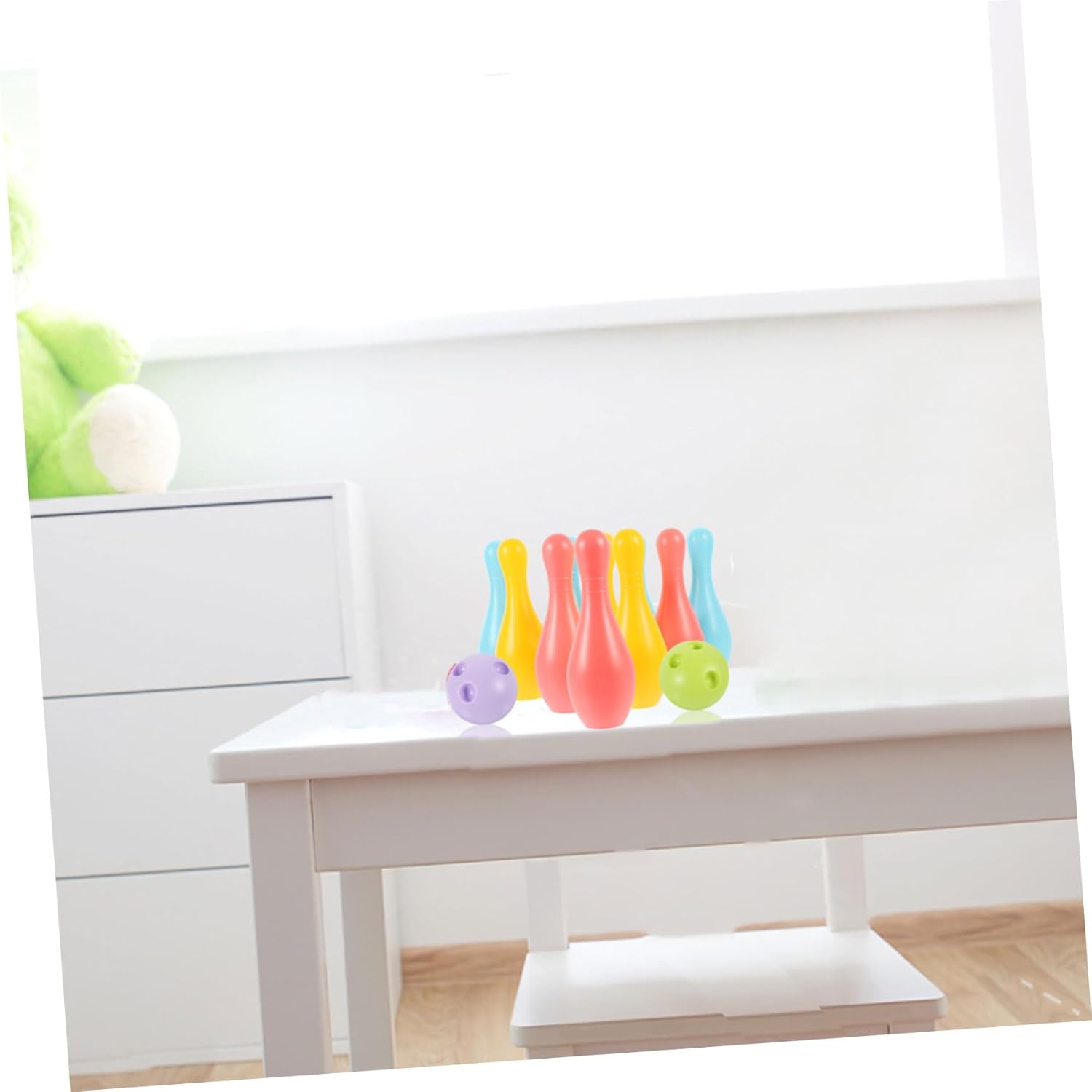 Giochi di bowling: con buoni dettagli di processo, il prodotto è lucidato uniformemente, senza sbavature e non fa male alle mani, bowling per bambini Bowling per bambini: con bordi lisci e senza sbavature, è più sicuro da usare e regala ai tuoi bambini un giocattolo per bambini. Giocattoli da bowling per bambini: questo set di giocattoli è perfetto per l'uso all'asilo o nelle attività ricreative. Giocattolo da bowling simulato: questo giocattolo da bowling può aiutare i bambini ad apprendere le regole del bowling e ad allenare le loro abilità sportive, giocattoli da bowling Articoli da bowling per bambini: superficie liscia e leggera, non devi preoccuparti di graffiare la mano delicata del tuo adorabile bambino, giocattoli per bambini