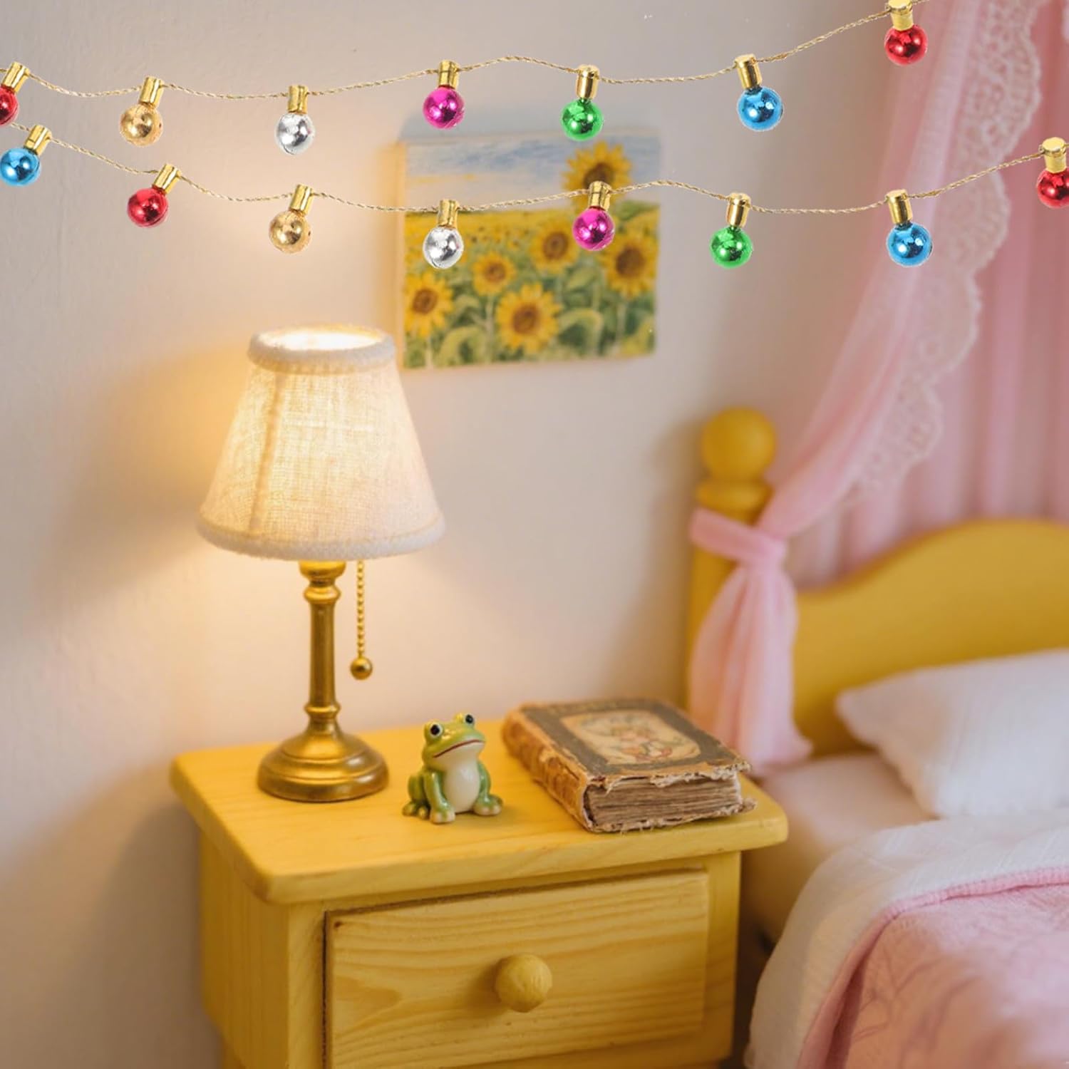 Design dettagliato: le a stringa in miniatura per casa delle bambole vantano un design dettagliato che aggiunge un tocco festoso alla tua casa delle bambole, rendendola più vivace e divertente Colori vivaci: con colorate in miniatura, queste sono perfette per varie scene di case delle bambole, creando un'atmosfera sognante e accogliente Proporzione perfetta: le della casa delle bambole in miniatura sono progettate in dimensioni ridotte per adattarsi perfettamente alla scala della tua casa delle bambole, aggiungendo dettagli realistici alla tua decorazione Gioco creativo: come di luce in miniatura, ispira creatività e immaginazione, ideale per i bambini che per gli adulti appassionati del fai da te per godersi il divertimento dell'assemblaggio finte per casa delle bambole: queste in miniatura per casa delle bambole aggiungono un tocco di luminosità, illuminando ogni in miniatura con fascino