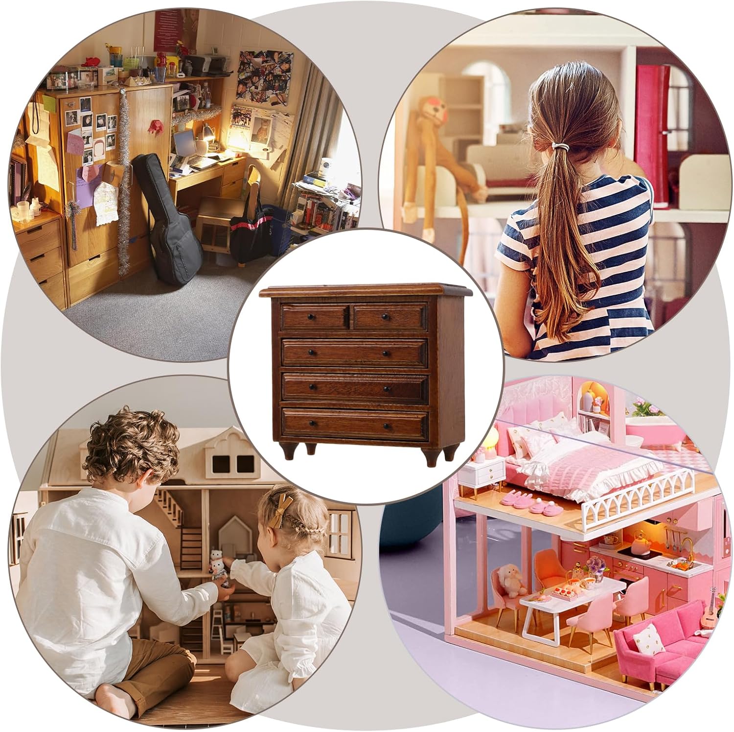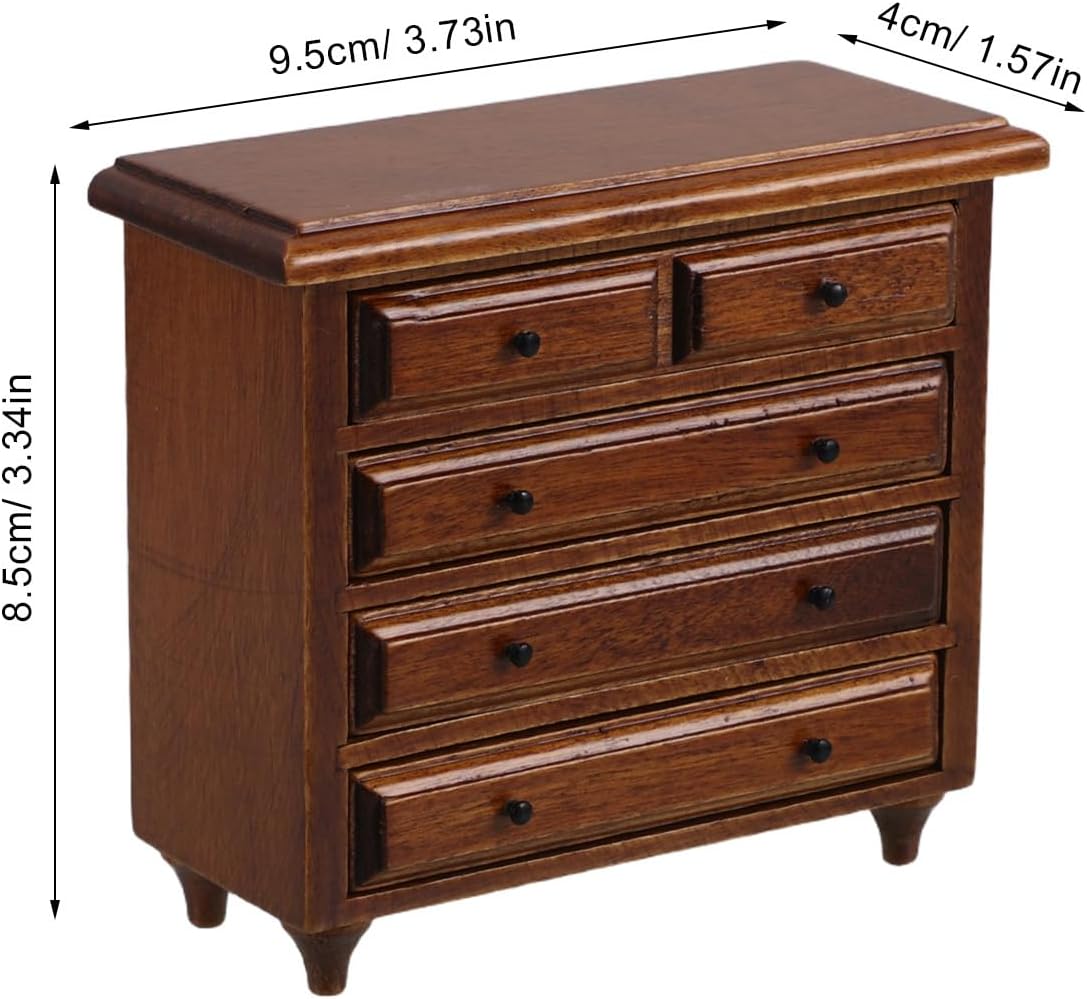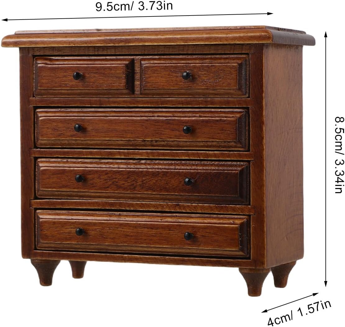 Design in miniatura realistico: questo mobile da cucina in miniatura per casa delle bambole è realizzato per replicare mobili veri, fornendo un'aggiunta realistica alla configurazione della scrivania in miniatura vintage della tua casa delle bambole Materiale solido: realizzato con materiale robusto, questo mobile per casa delle bambole in miniatura consente un uso duraturo mantenendo un aspetto realistico e artistico Stile vintage senza tempo: il design dei mobili in stile retrò con una finitura delicata aggiunge un tocco di ai mobili della camera da letto della casa delle bambole, migliorando l'aspetto estetico generale Soluzione pratica per riporre gli oggetti: dotato di cassetti, questo mobiletto per riporre gli oggetti della casa delle bambole offre un pratico spazio per riporre gli accessori della casa delle bambole in miniatura, mantenendo la casa delle bambole ordinata e organizzata Perfetto per i collezionisti: questo di mobiletto in miniatura è ideale per collezionisti e appassionati, offrendo un pezzo realistico e artistico per l'esposizione di mobili in miniatura per case delle bambole