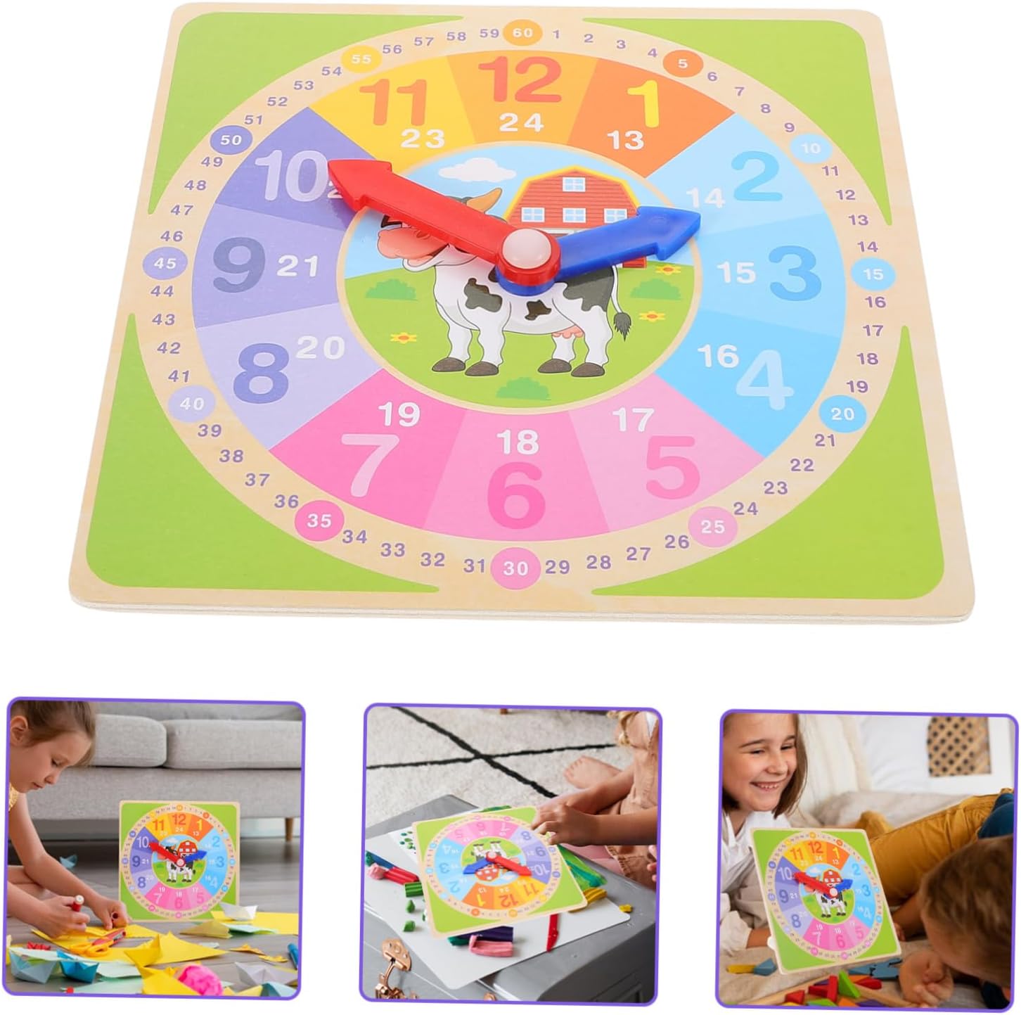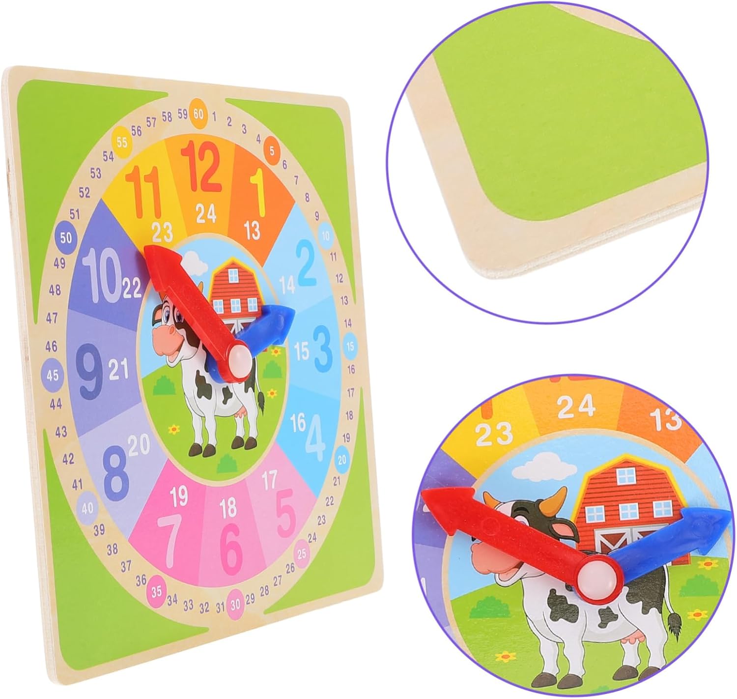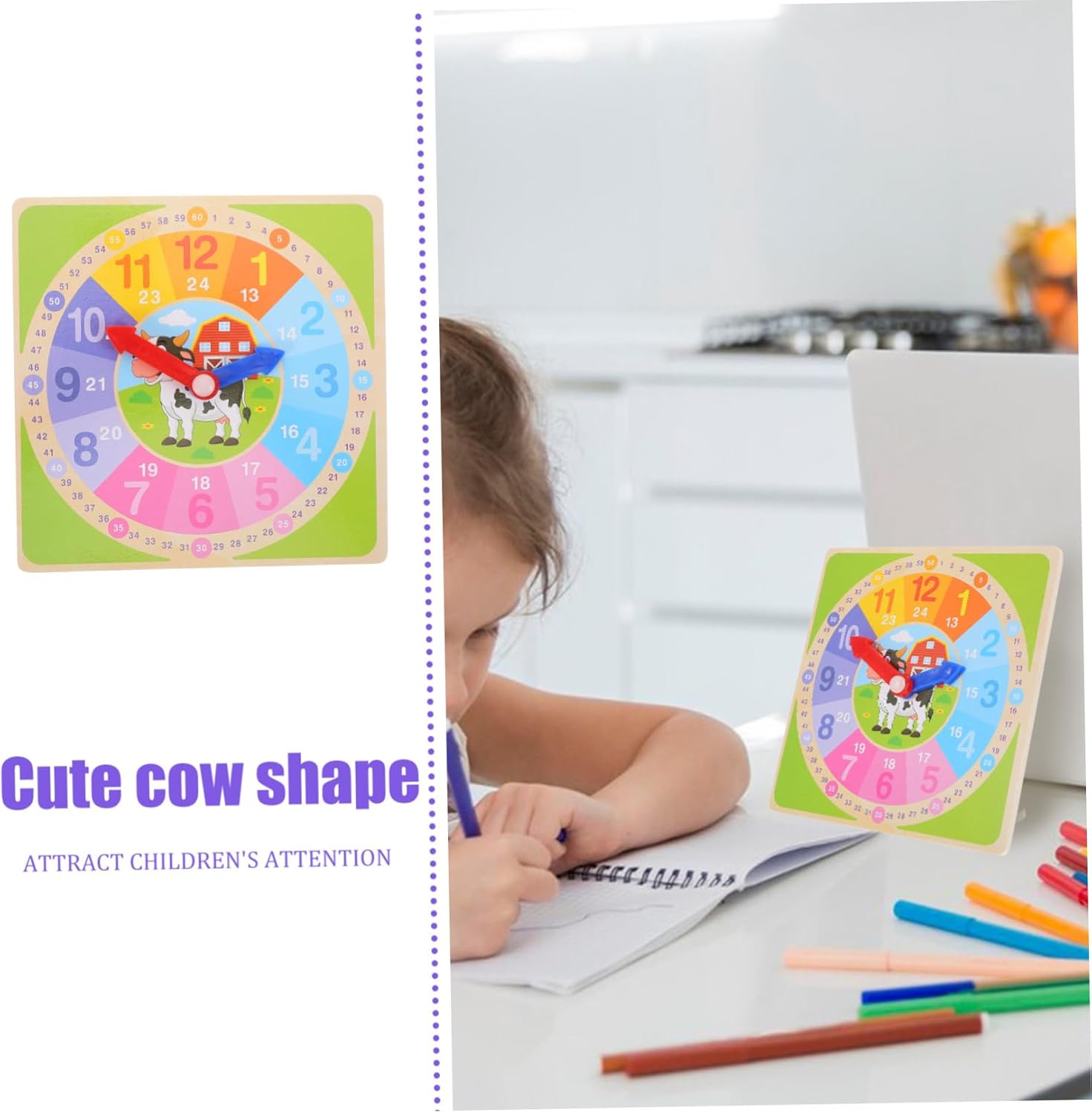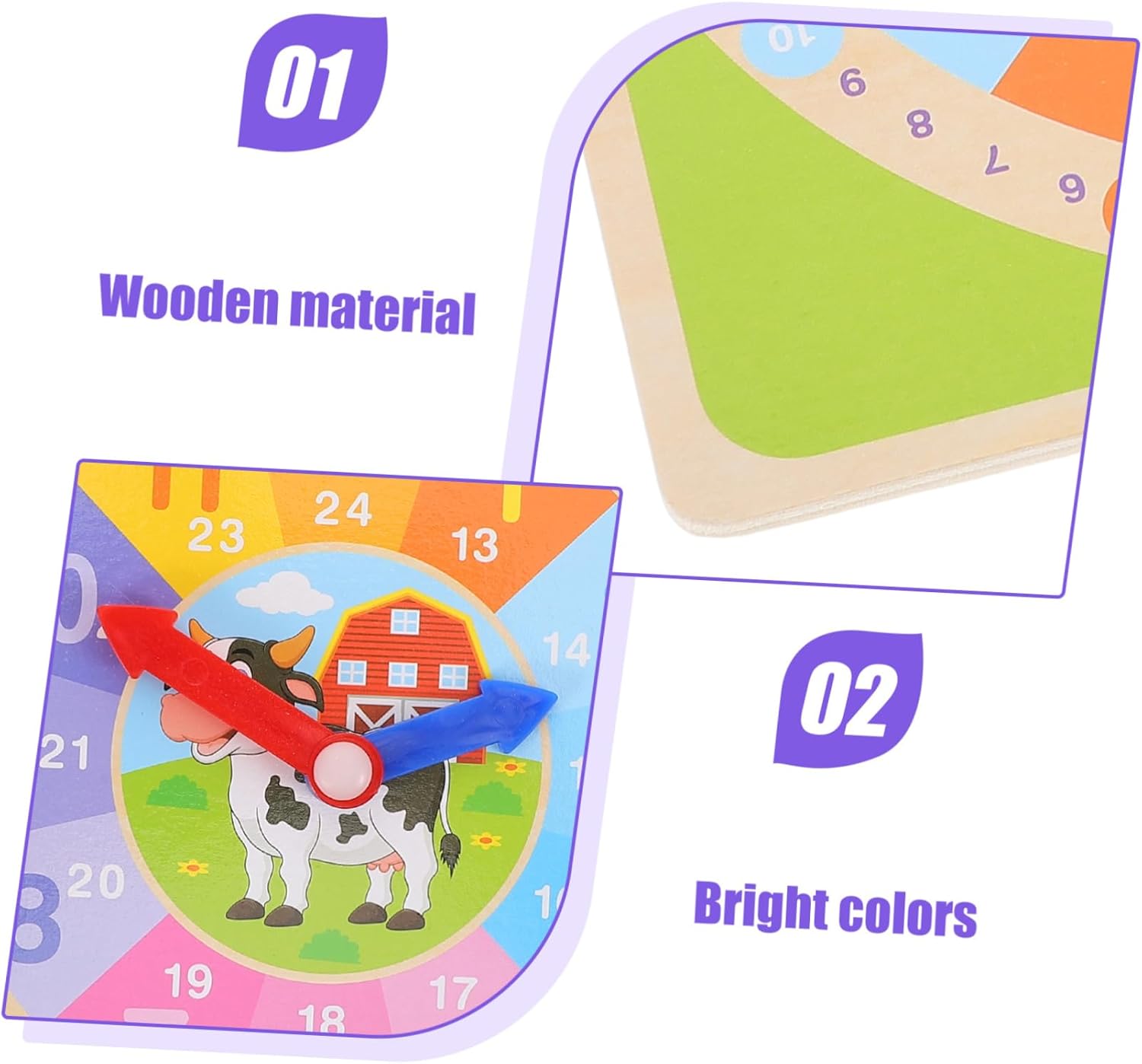 Orologi didattici per bambini: il materiale in legno è più sicuro e adatto al gioco dei bambini. È comodo e pratico ed è un giocattolo in legno per il riconoscimento del tempo. Orologi puzzle in legno: un orologio giocattolo perfetto per i bambini come scelta, darà ai tuoi bambini una buona impressione e insegnerà loro a imparare gli orologi. Giocattolo didattico cognitivo per bambini: questo giocattolo in legno è ampiamente utilizzato nelle lezioni della scuola materna e può dare ai bambini il divertimento di comprendere il tempo, un giocattolo per l'orologio per bambini Aiuto didattico: il materiale è sicuro e leggero, resistente all'usura e pratico per un uso a lungo termine, piccolo orologio in legno Modello di orologio per bambini: i quadranti aiutano i bambini a leggere l'ora e a comprendere il significato del tempo in giovane età. orologio didattico