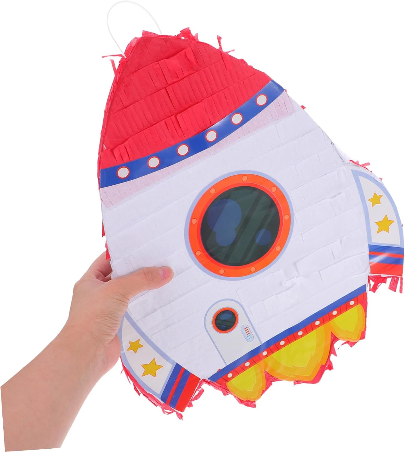 Per appenderlo facilmente: dotato di un robusto anello per appenderlo facilmente, che lo rende adatto a soffitti, pareti o finestre, piñata, ornamento di razzi Decorazione versatile: per feste di compleanno, eventi scolastici o feste a tema e può anche essere utilizzato come elemento decorativo o supporto fotografico, piñata spaziale, decorazione di compleanno di razzi Ampia applicazione: adatto per feste di compleanno, eventi scolastici o celebrazioni a tema e può anche servire come elemento decorativo o accessorio fotografico, bastone di piñata, piñata appesa Riempimento: dispone di un'apertura di riempimento con un adesivo, in modo da poterlo appendere riempire il contenuto con dolcetti, o coriandoli, piñata di carta o forniture per feste fiesta Materiale durevole: realizzato in cartone e decorato con carta crespa, garantisce durata e aspetto vibrante con un uso ripetuto, regali per feste fiesta, decorazioni di compleanno astronauta